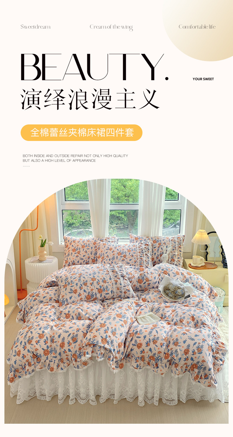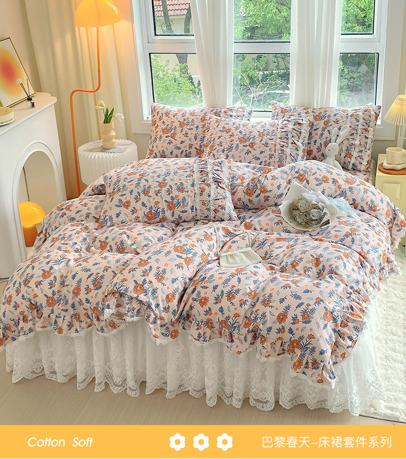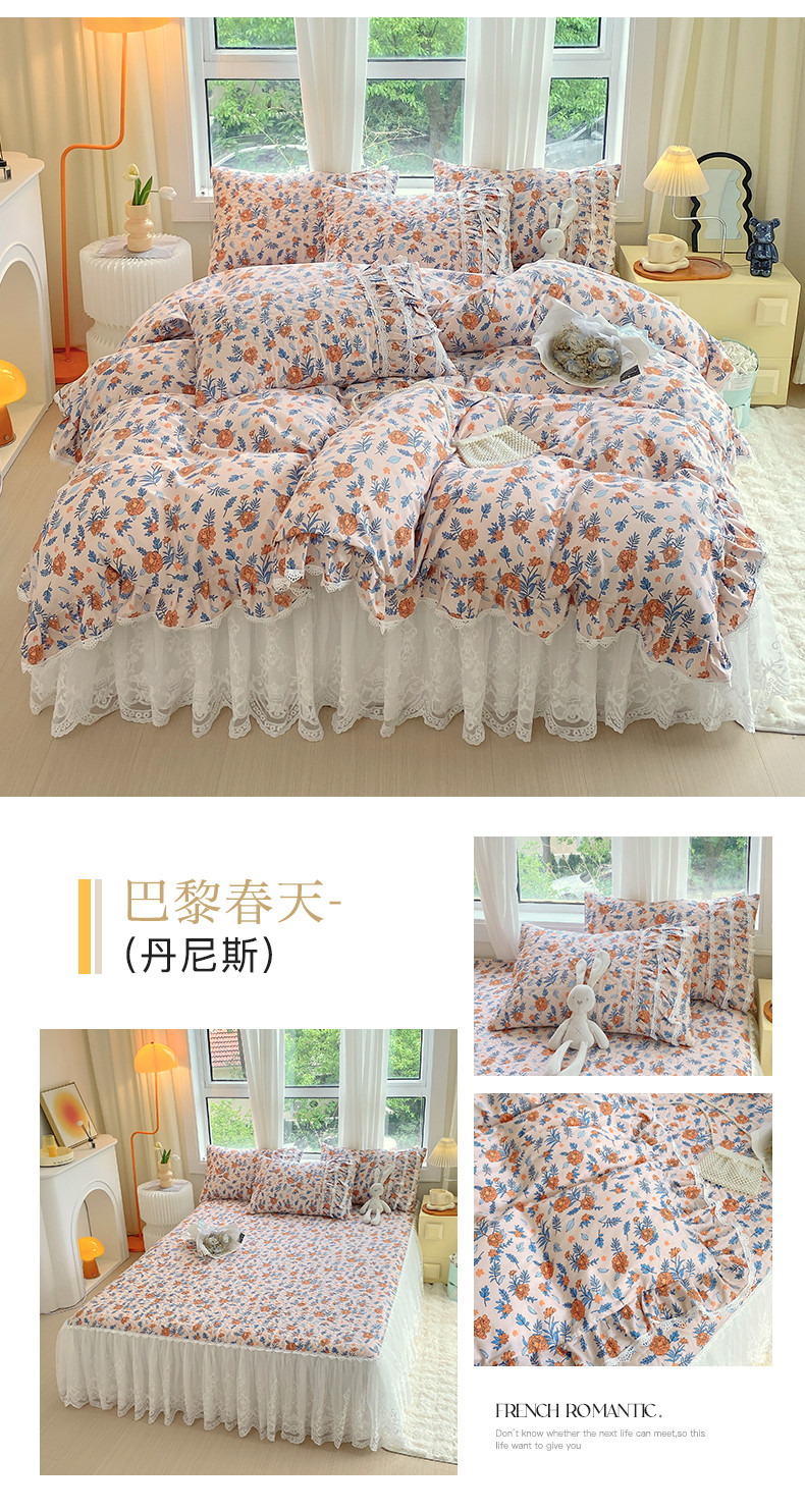 当前位置: 91家纺网 > 商品网购 > 床品套件 > 四件套 > 全棉普通四件套 > 罗艺轩 2024新款全棉蕾丝夹棉床裙巴黎春天系列四件套 丹尼斯
