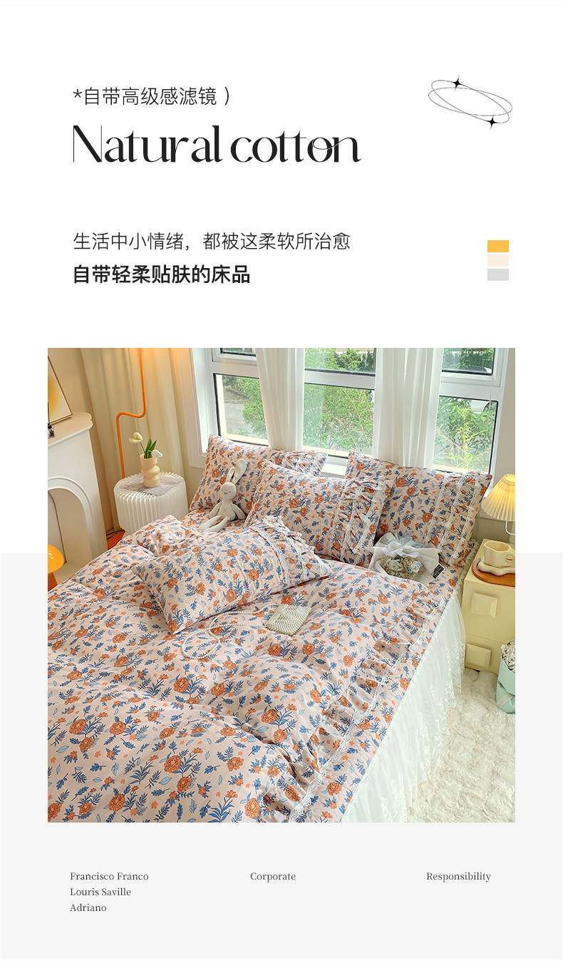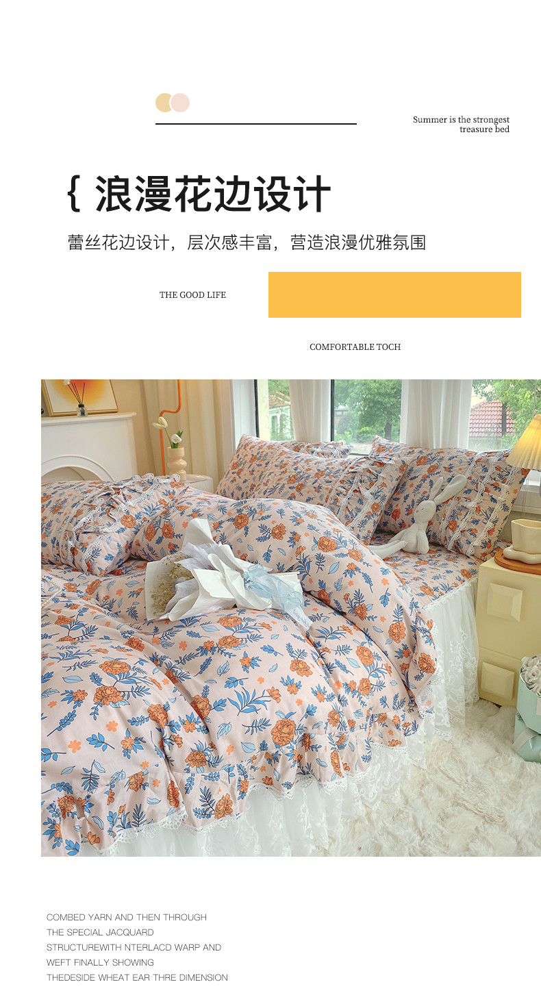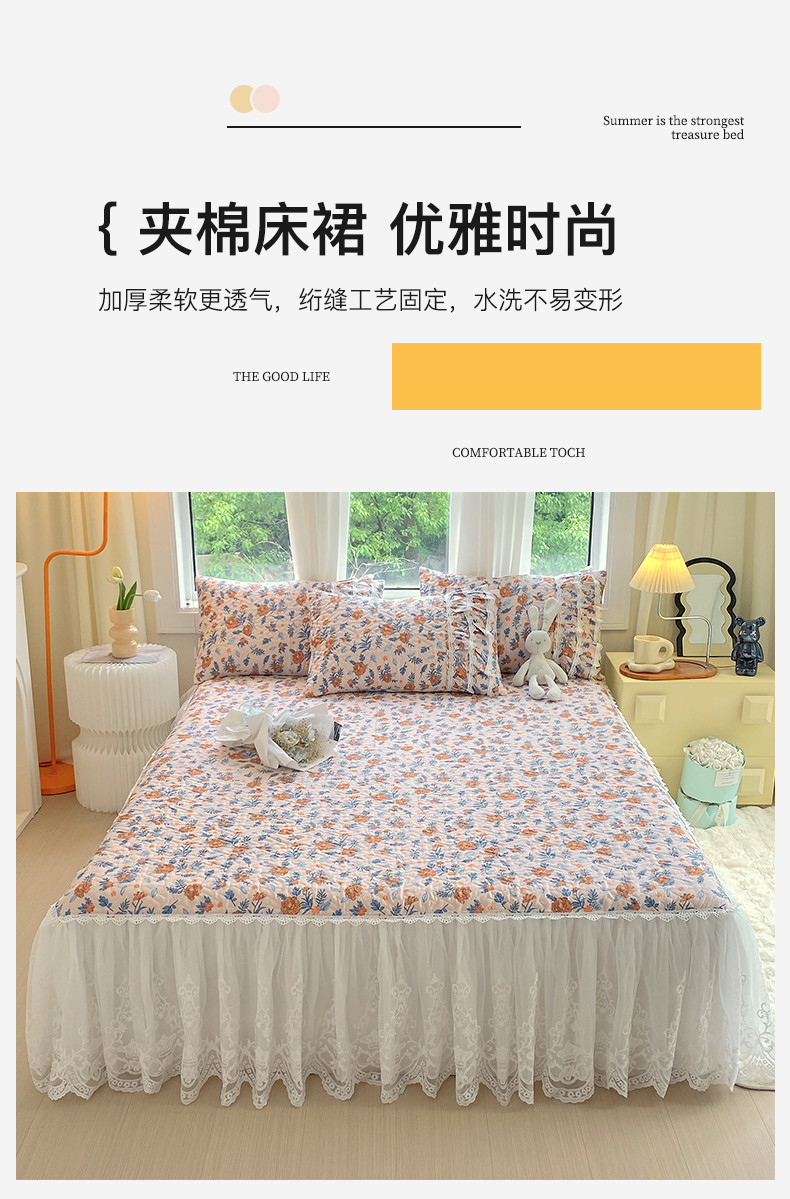 当前位置: 91家纺网 > 商品网购 > 床品套件 > 四件套 > 全棉普通四件套 > 罗艺轩 2024新款全棉蕾丝夹棉床裙巴黎春天系列四件套 丹尼斯