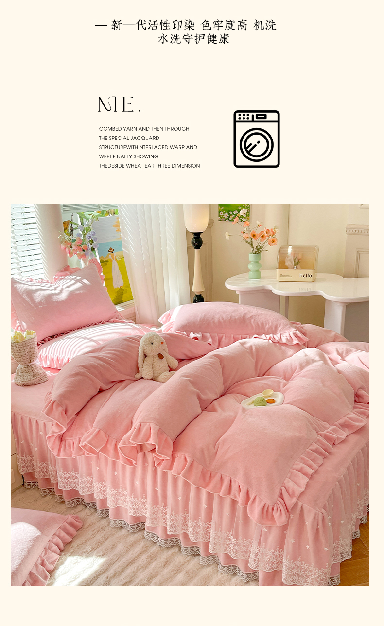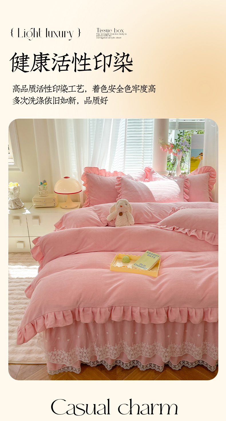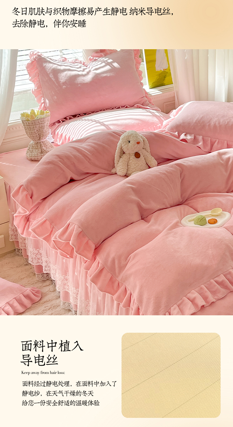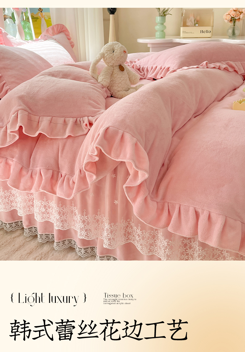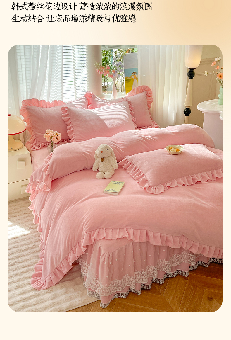 商品名称:【8斤重】2025新款秋冬加厚牛奶绒床裙款四件套法式浪漫蕾丝花边工艺-遇见系列 遇见-玉色