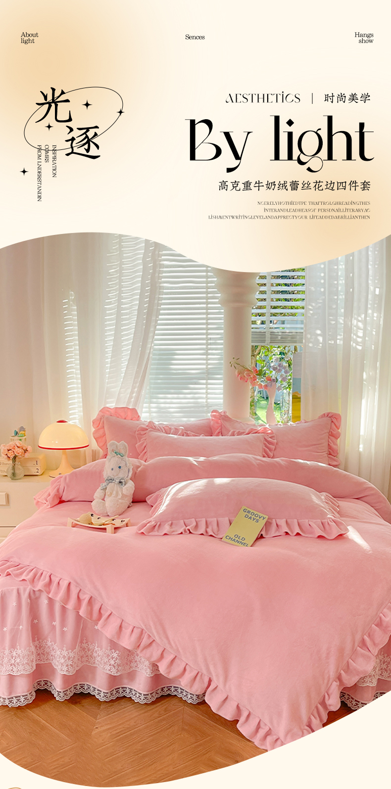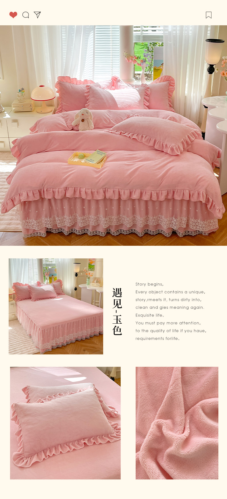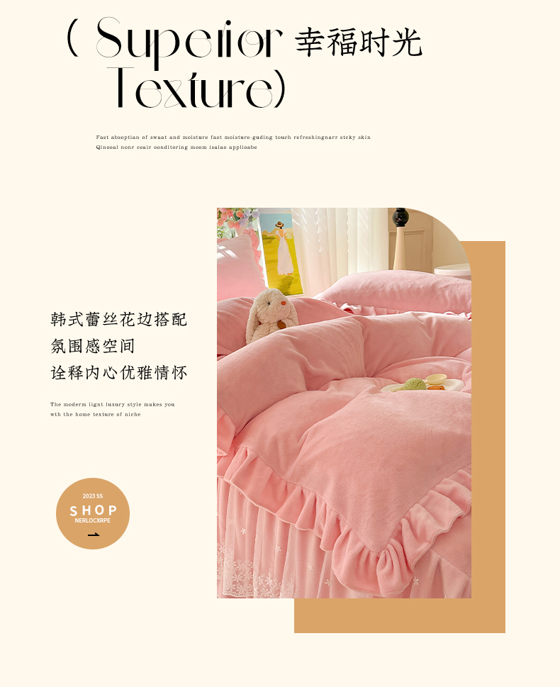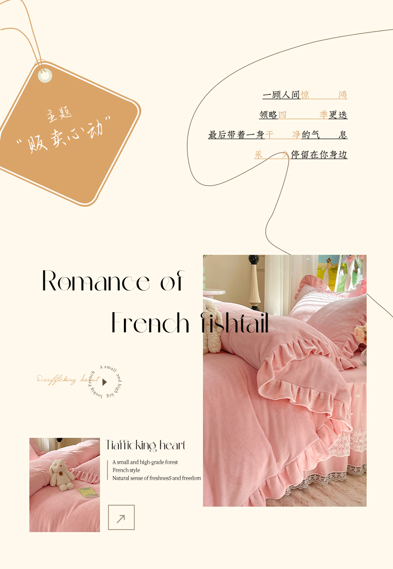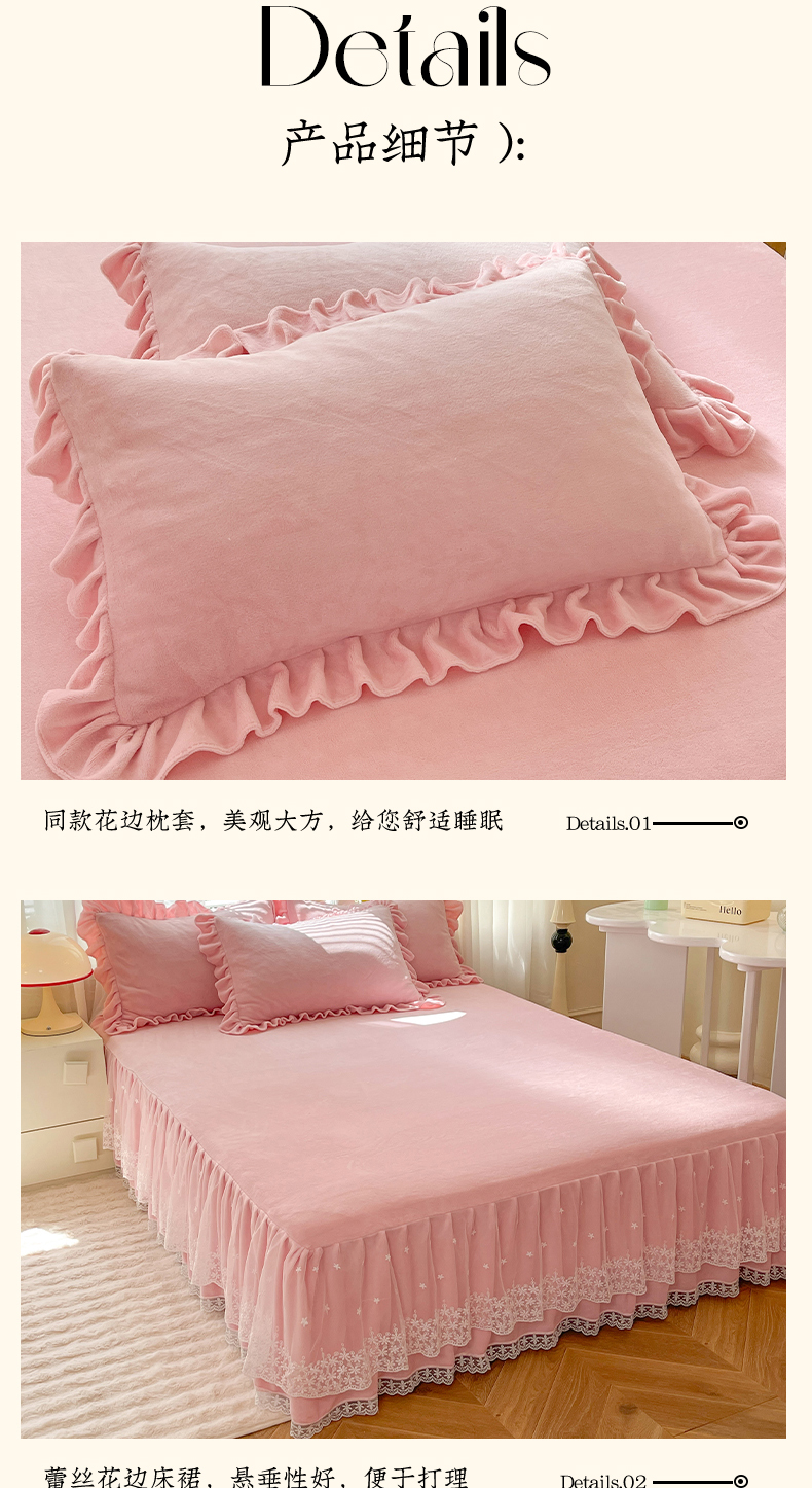 商品名称:【8斤重】2025新款秋冬加厚牛奶绒床裙款四件套法式浪漫蕾丝花边工艺-遇见系列 遇见-玉色