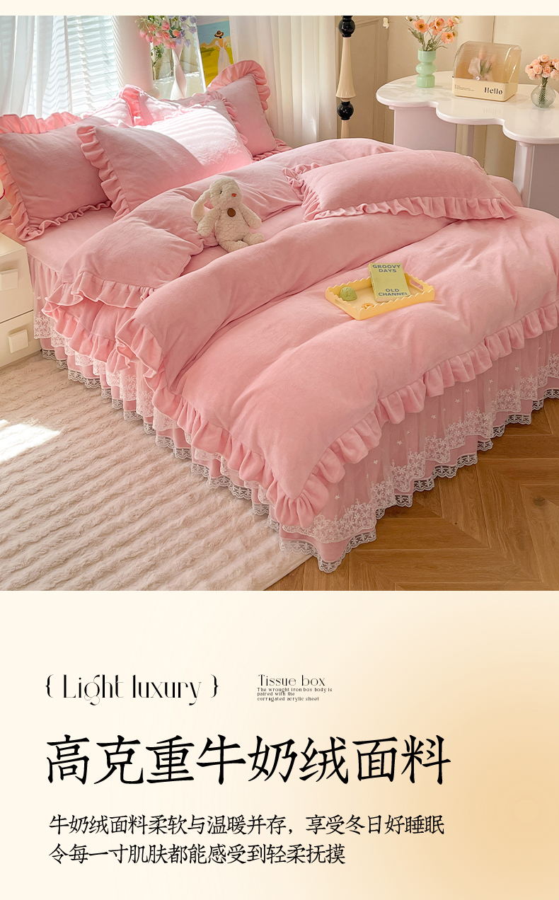 【8斤重】2025新款秋冬加厚牛奶绒床裙款四件套法式浪漫蕾丝花边工艺-遇见系列 遇见-玉色