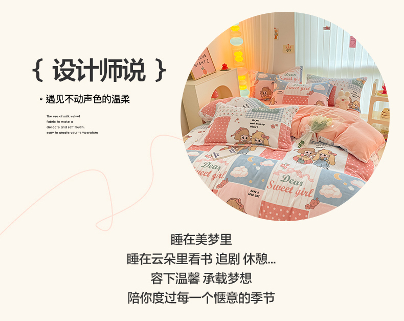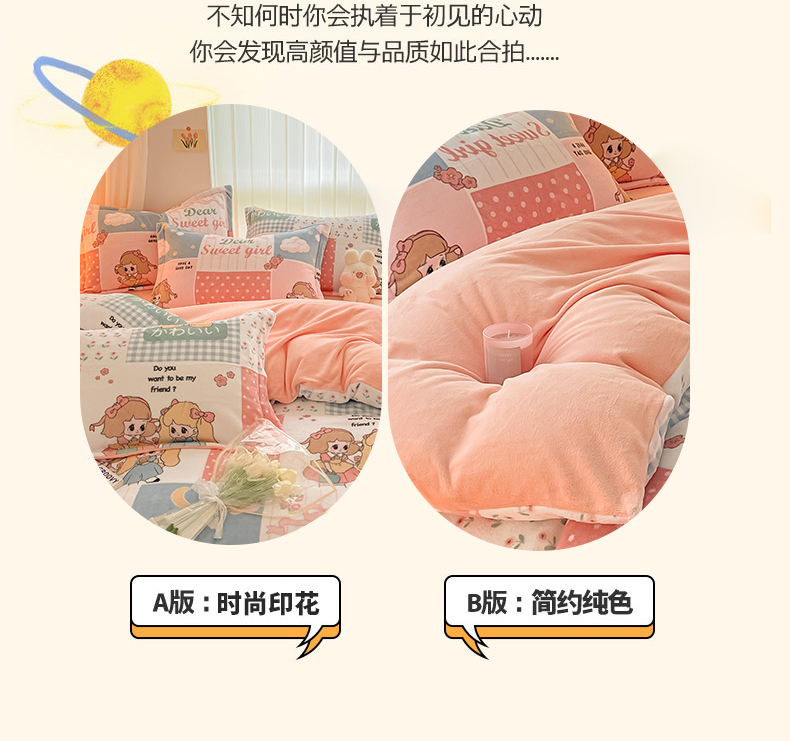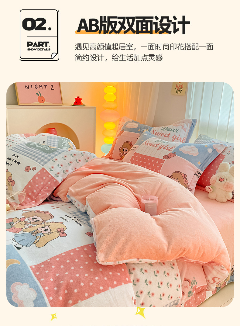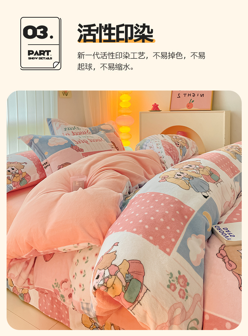 (总)呗旺鹿 2025新款A版全棉B版牛奶绒四件套,冰岛小马,萌星,糖果小马,小狗笔记,费尔岛小熊