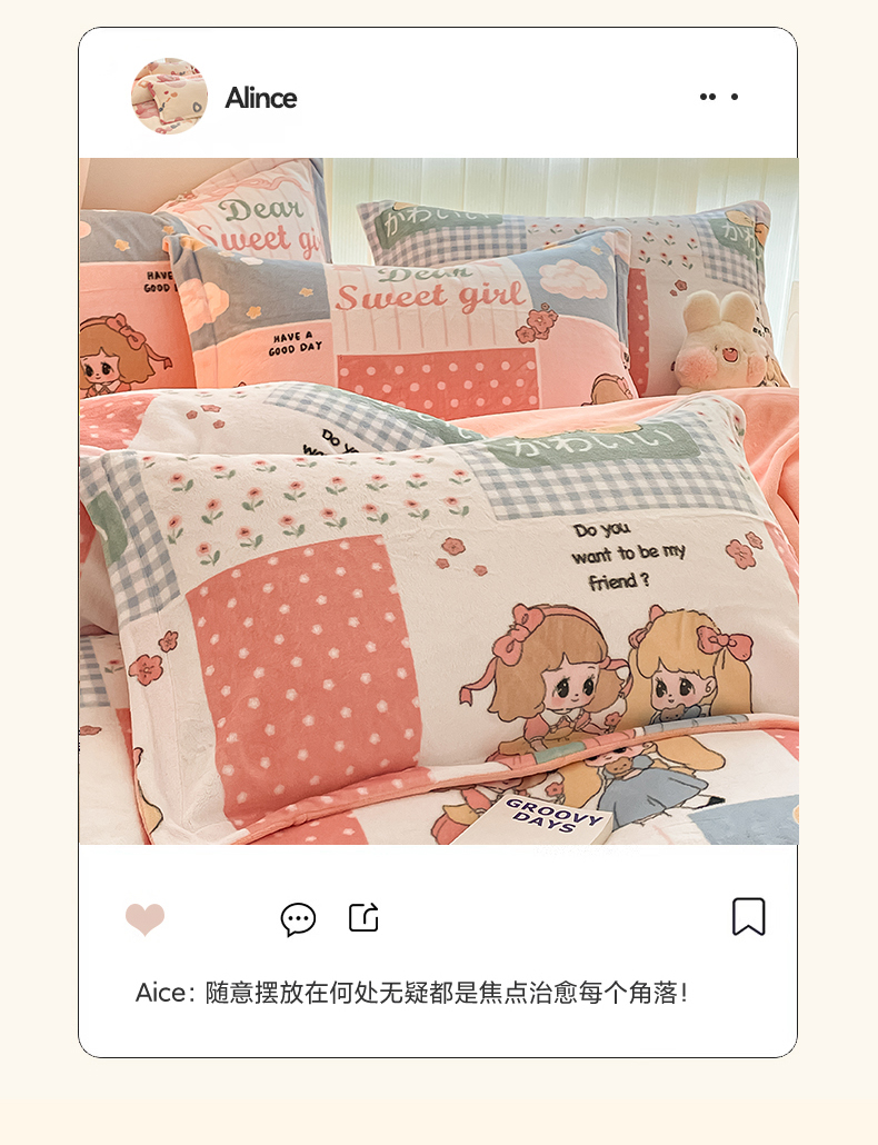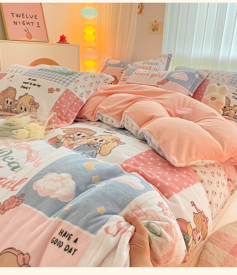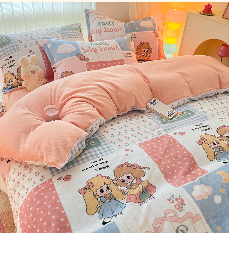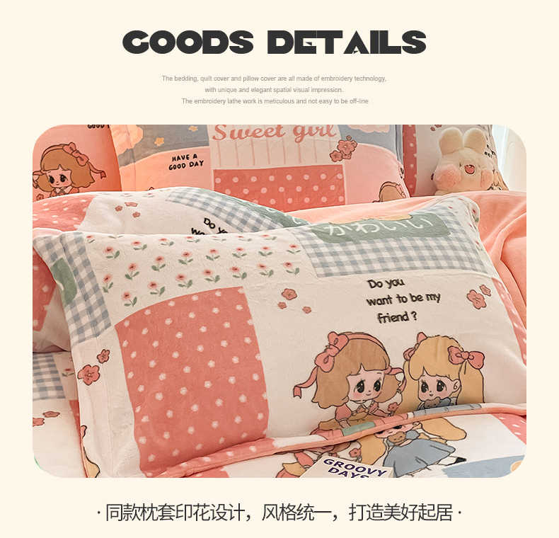 呗旺鹿 2023新款加厚高克重印花牛奶绒四件套直播爆款 童话里