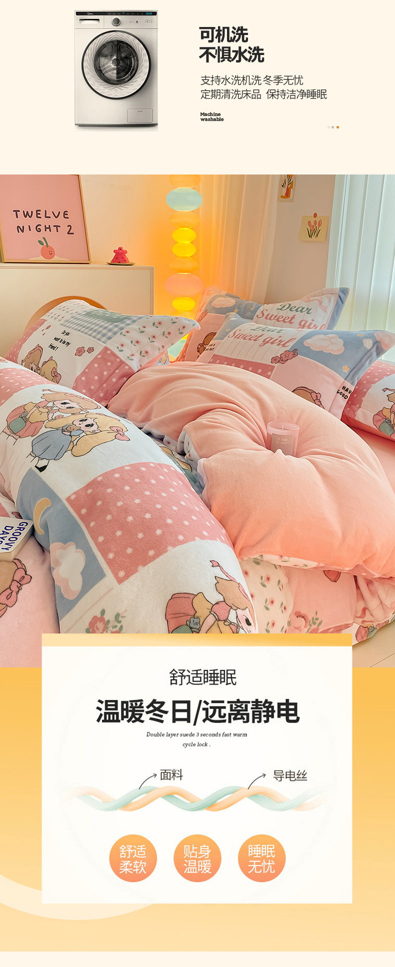 商品名称:呗旺鹿 2023新款加厚高克重印花牛奶绒四件套直播爆款 童话里