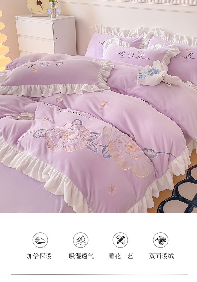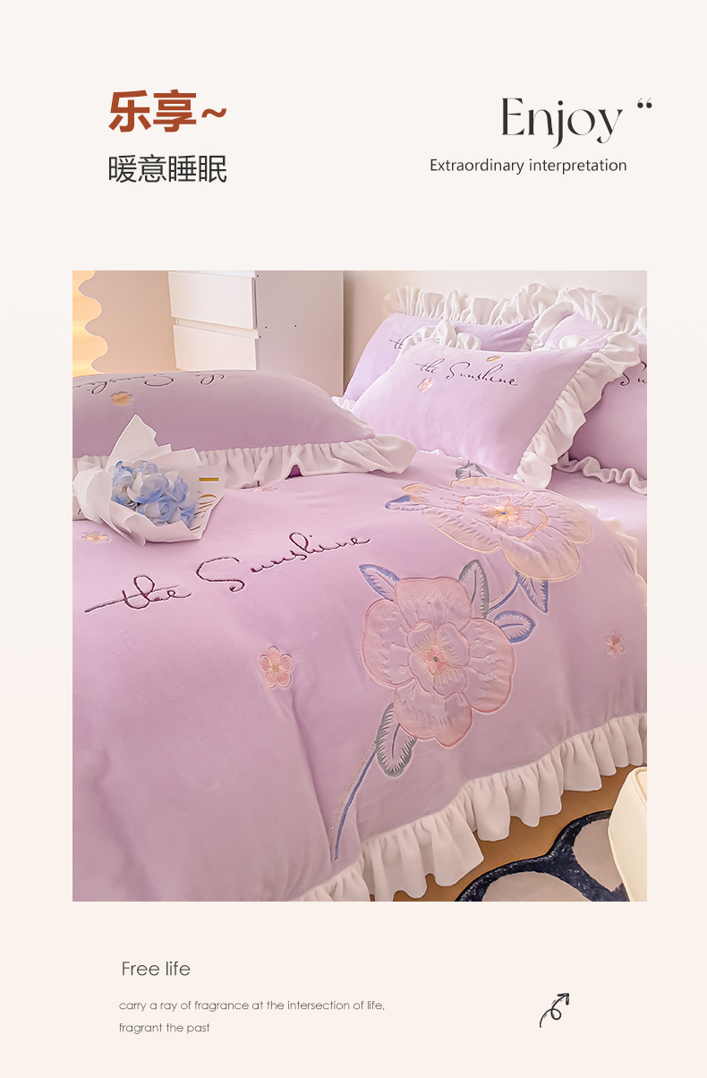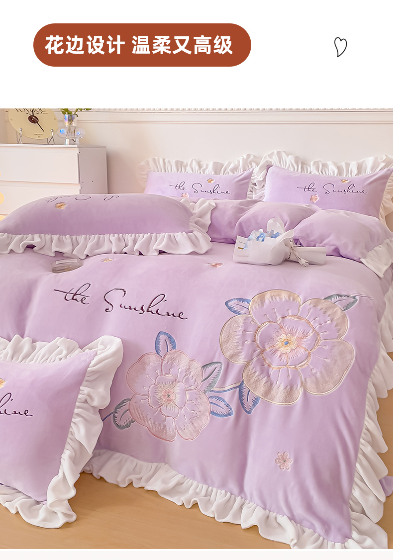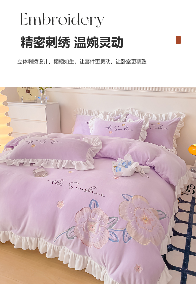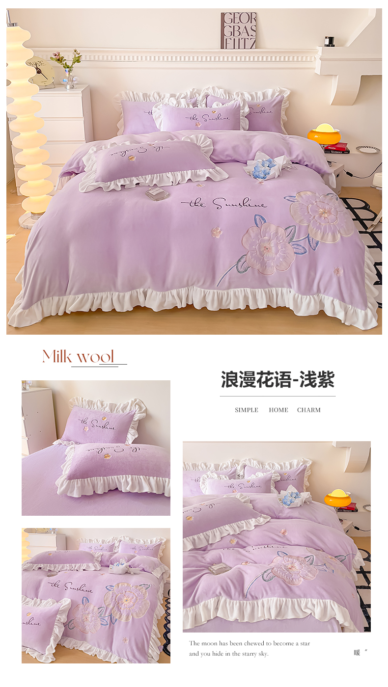 凯美家居 2023新款牛奶绒刺绣四件套 浪漫花语 浅紫