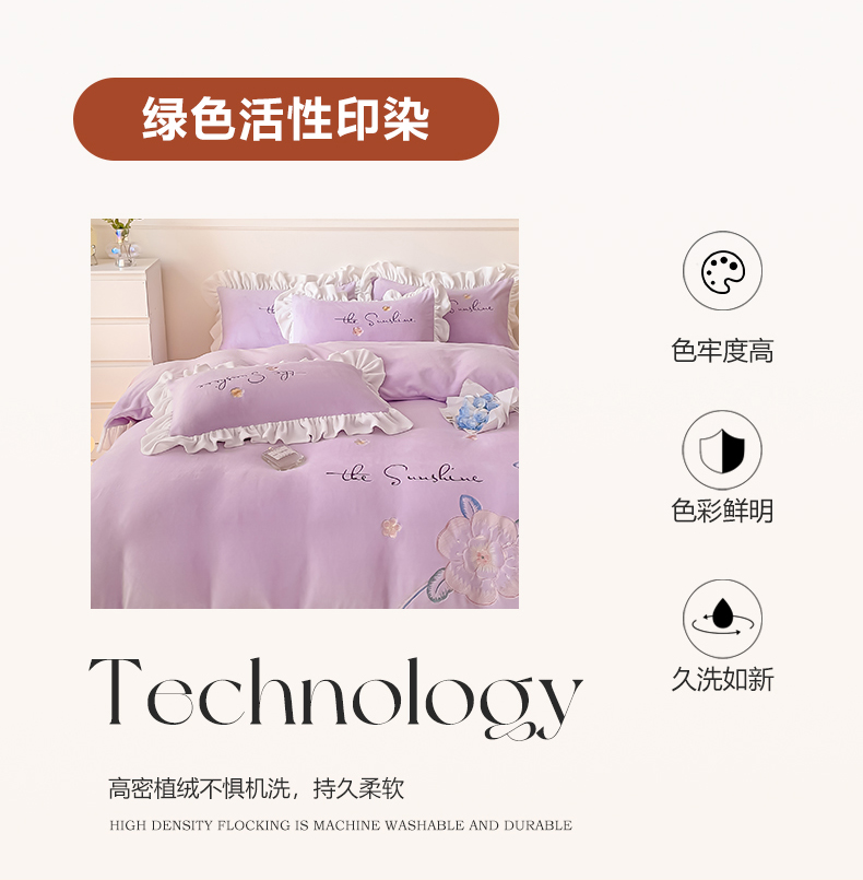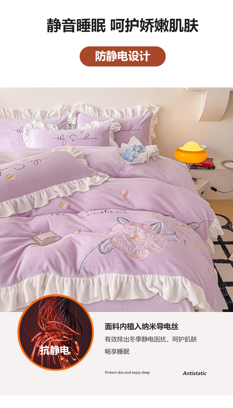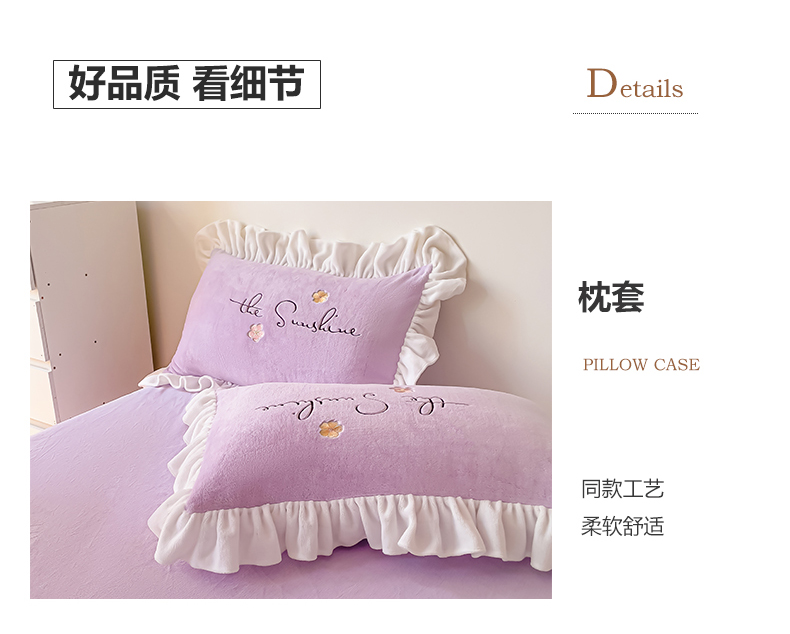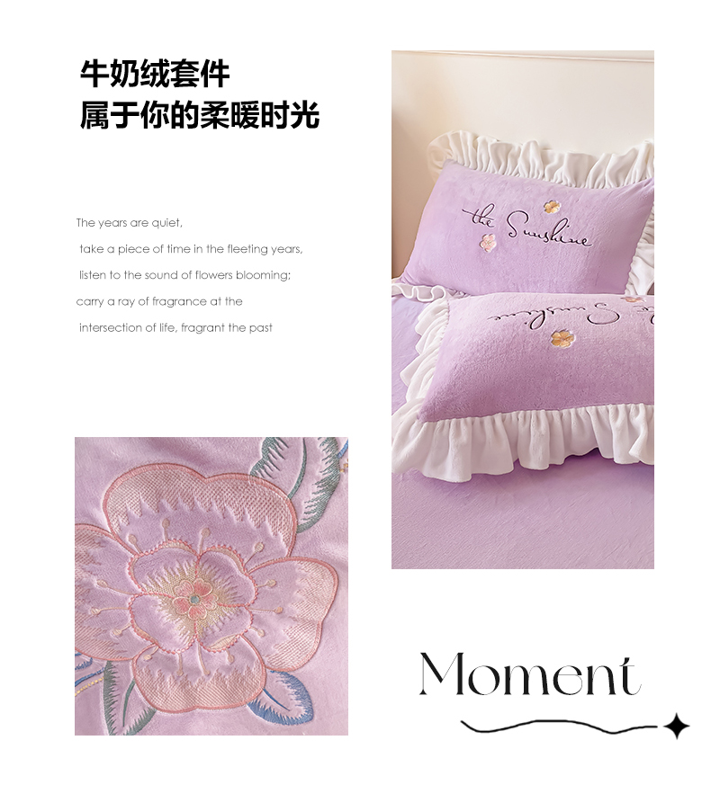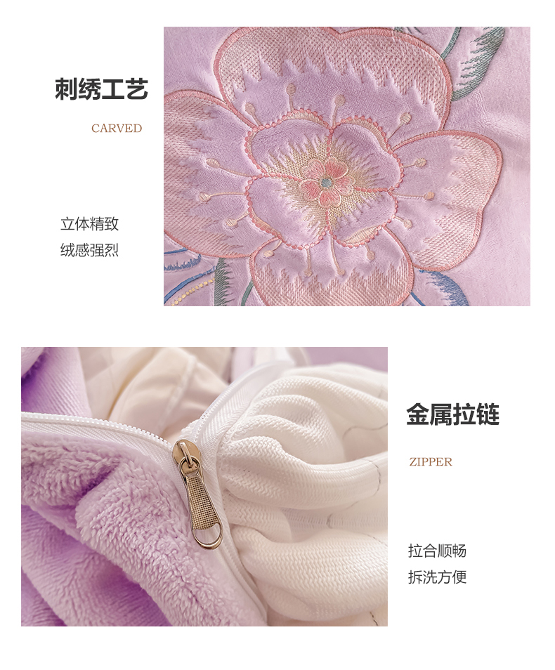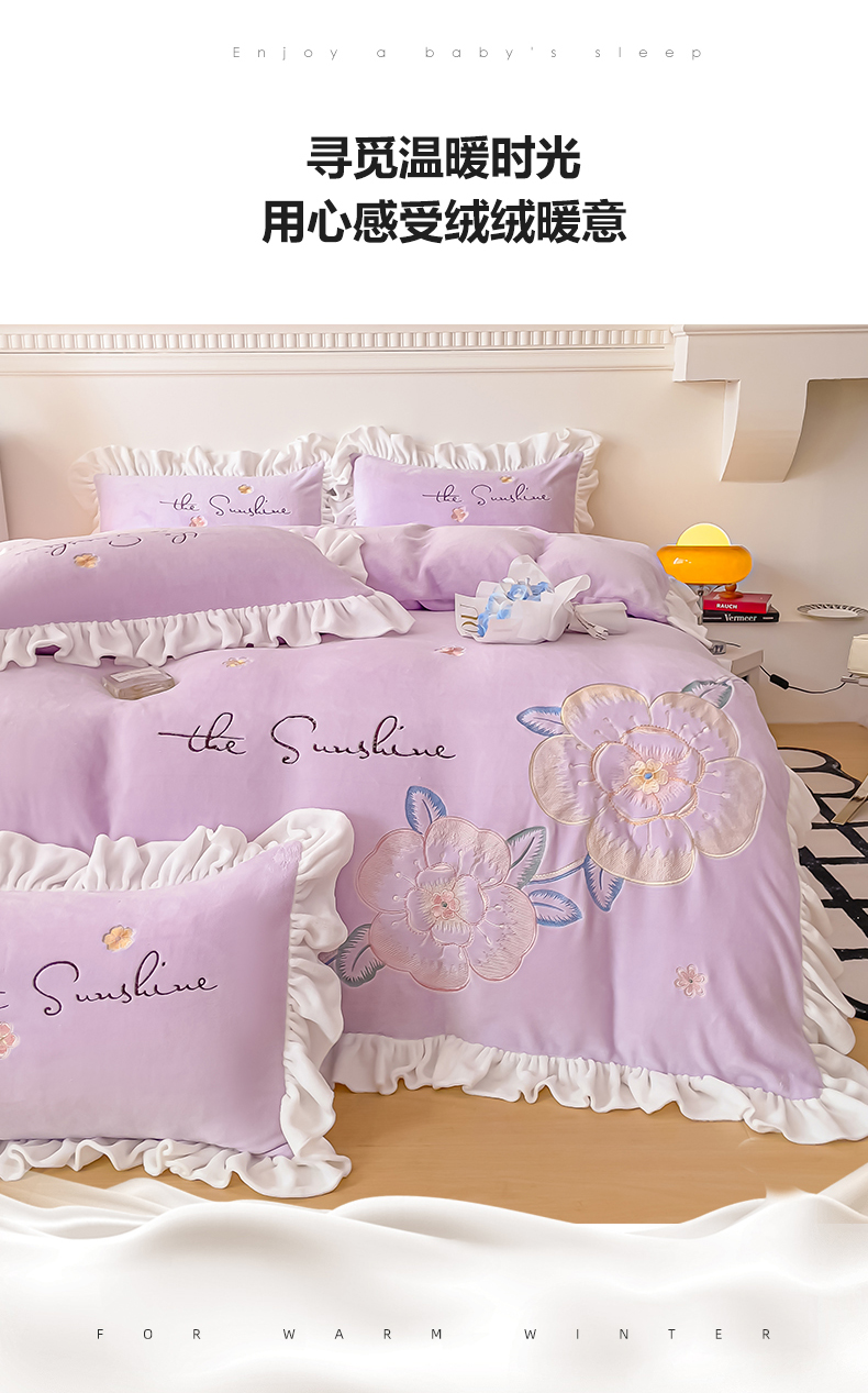 凯美家居 2023新款牛奶绒刺绣四件套 浪漫花语 浅紫