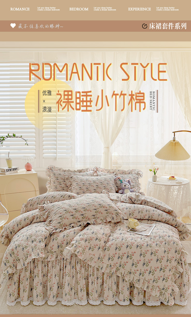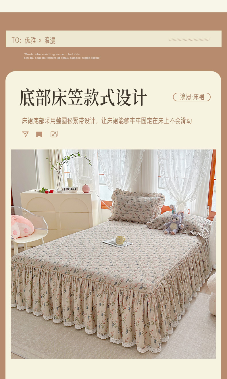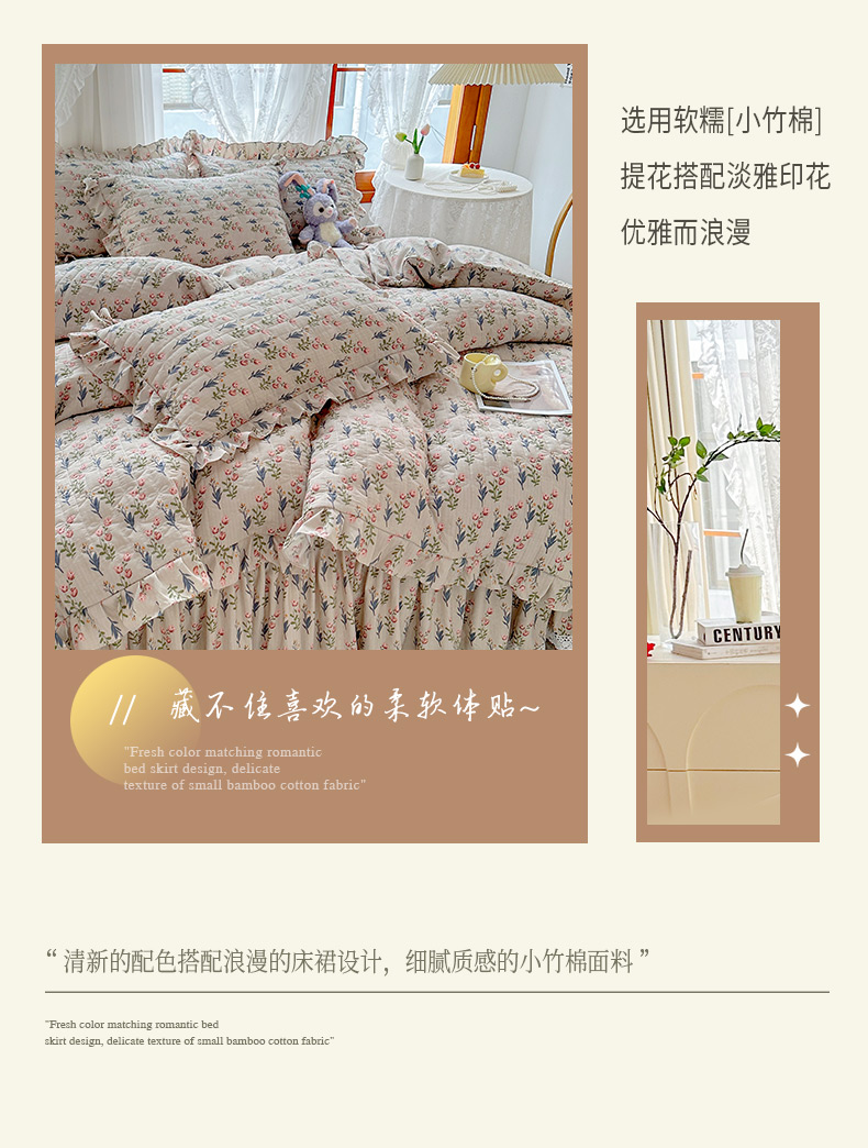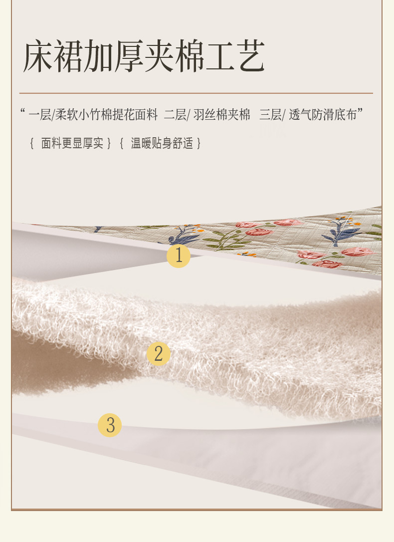 当前位置: 91家纺网 > 商品网购 > 床品套件 > 四件套 > 提花四件套 > 恋尚 2023新款小竹棉提花床笠式床裙夹棉四件套 郁香