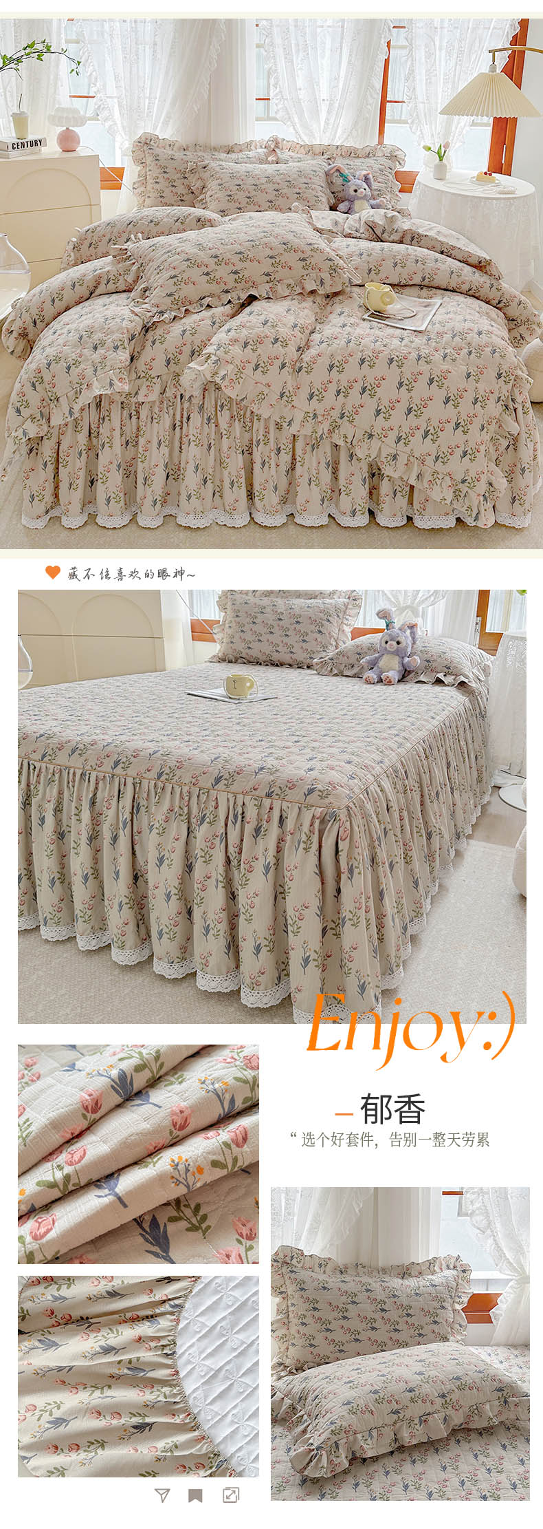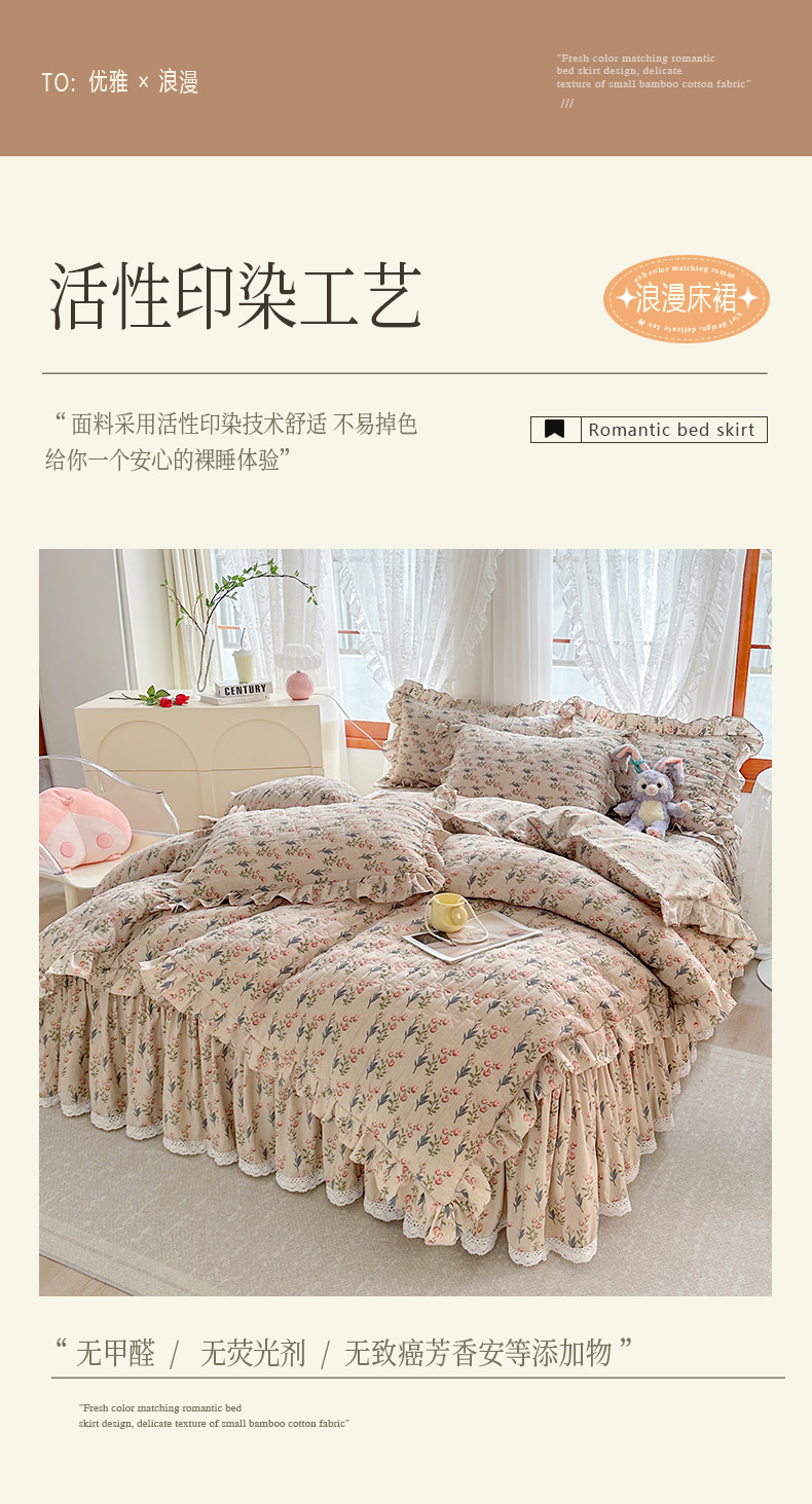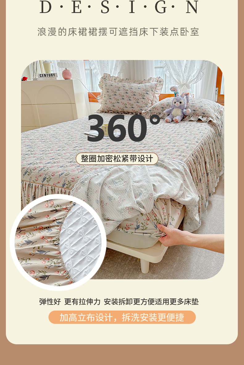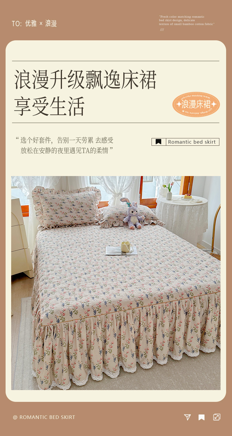 当前位置: 91家纺网 > 商品网购 > 床品套件 > 四件套 > 提花四件套 > 恋尚 2023新款小竹棉提花床笠式床裙夹棉四件套 郁香