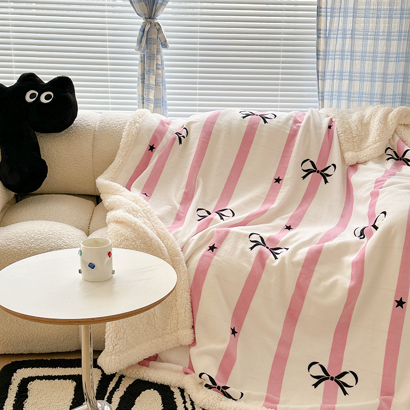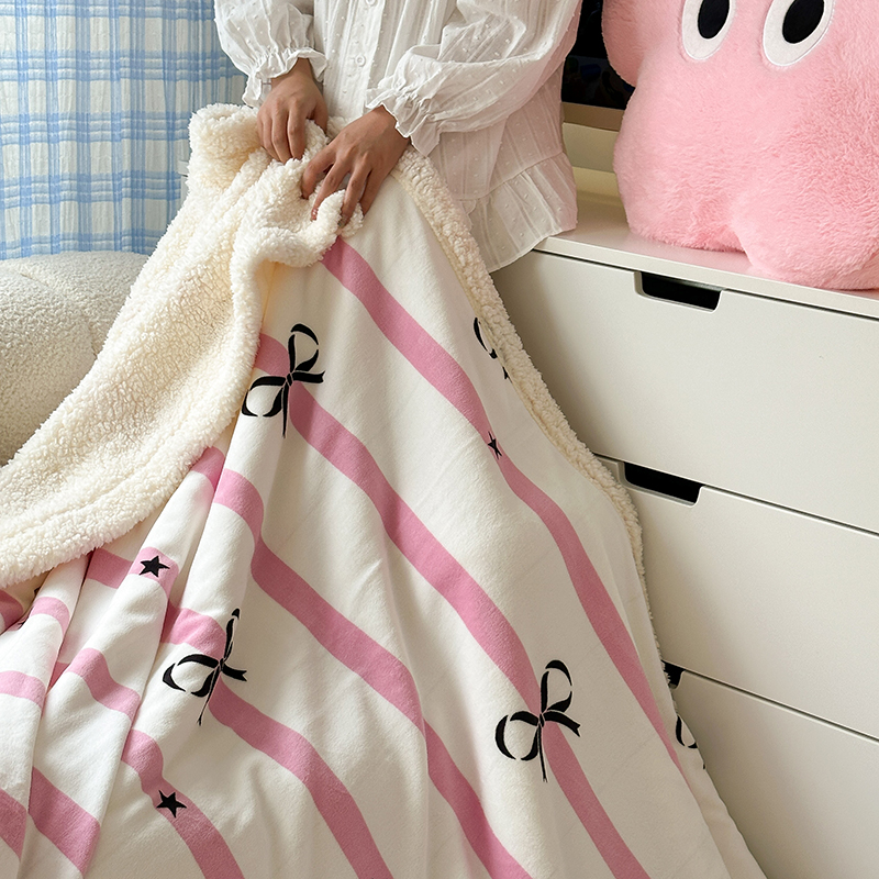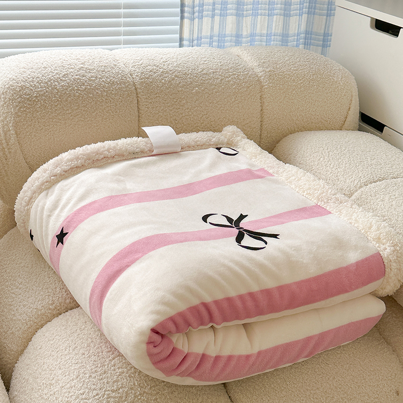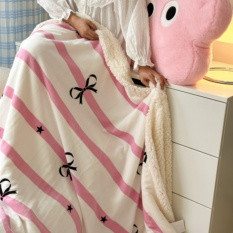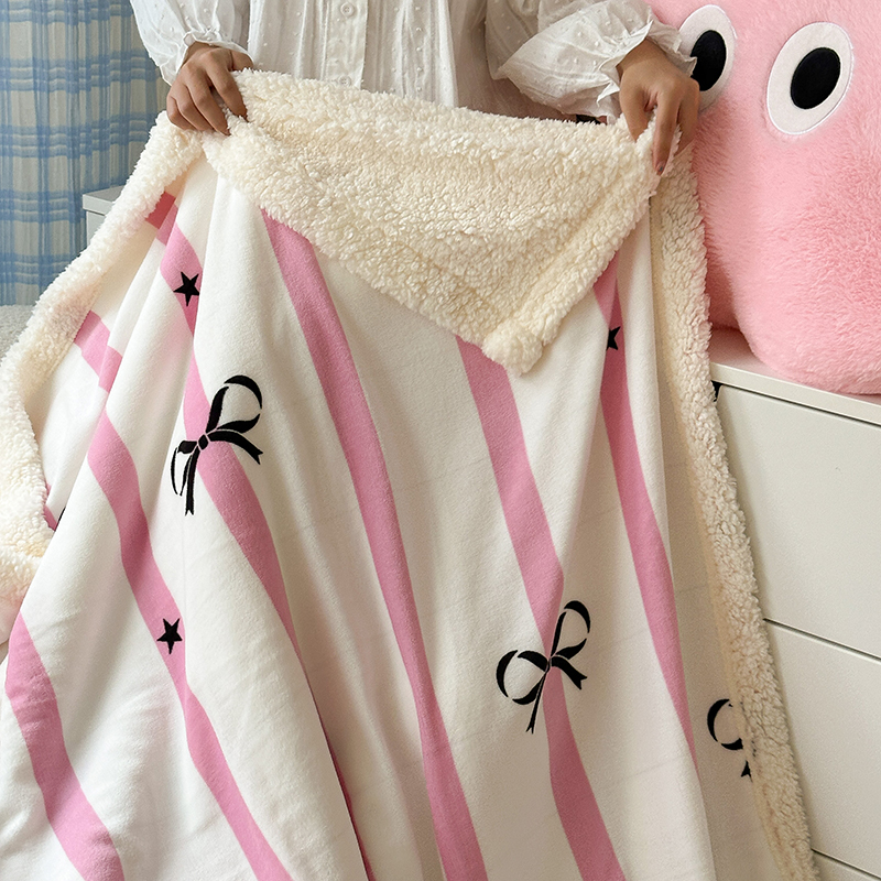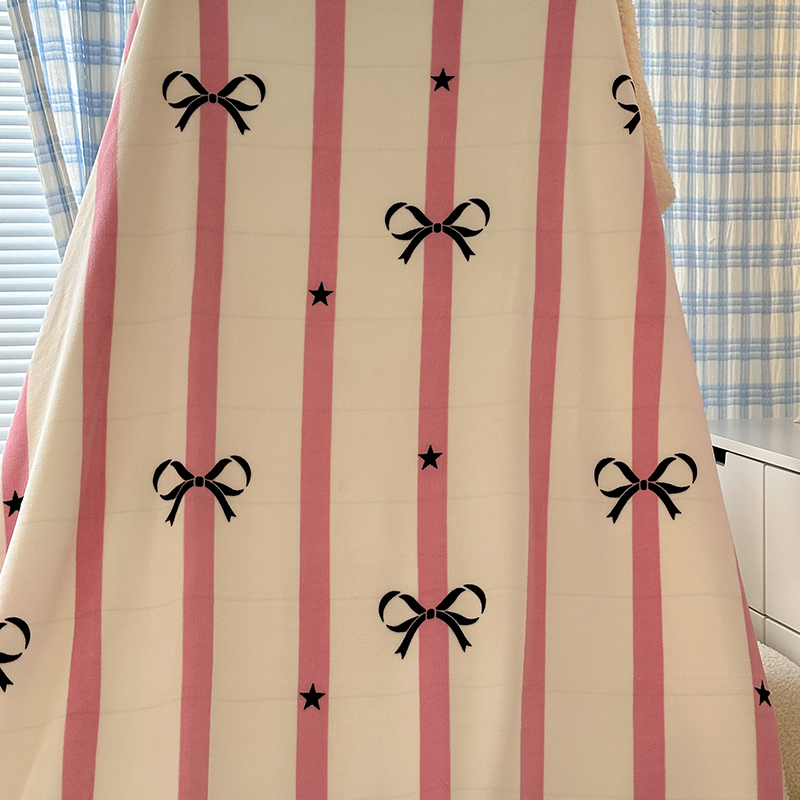 昔可家纺 2023新款ins风牛奶绒羊羔绒印花毛毯(风格二) 星星竖条蝴蝶结