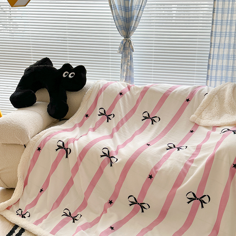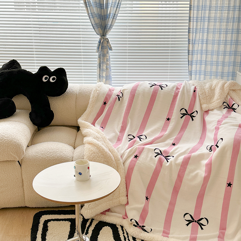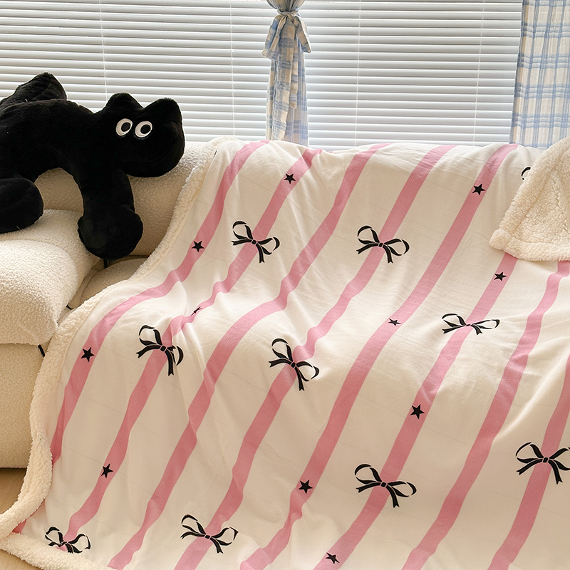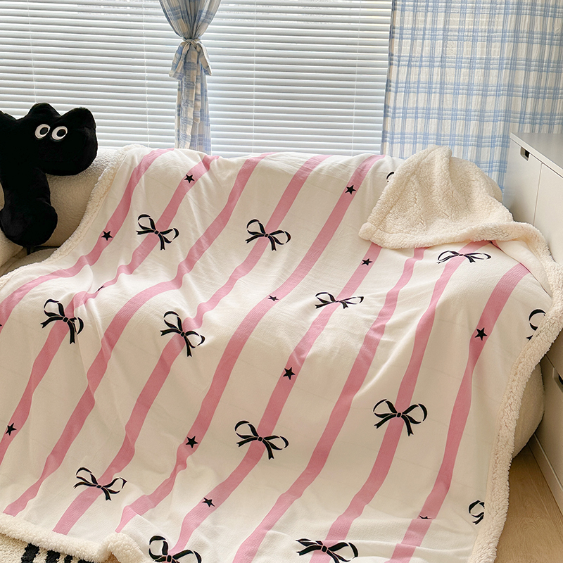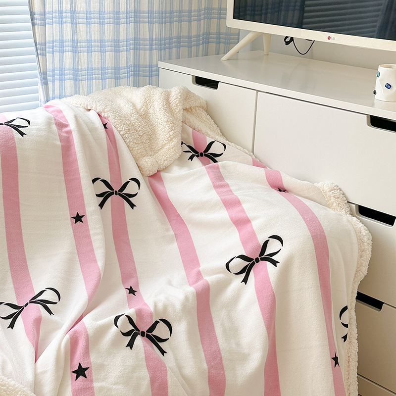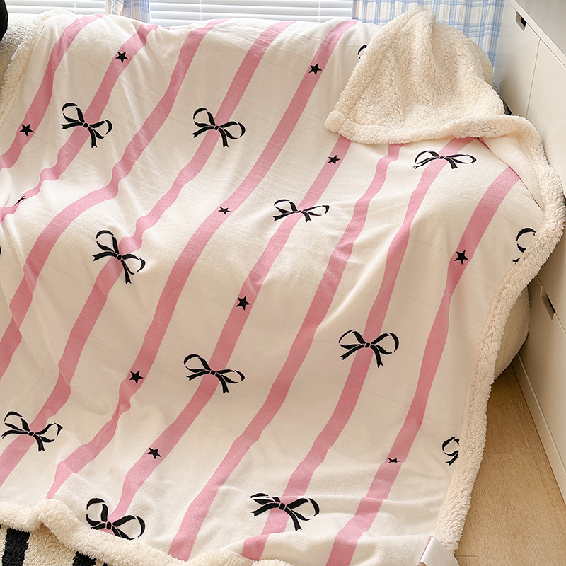 昔可家纺 2023新款ins风牛奶绒羊羔绒印花毛毯(风格二) 星星竖条蝴蝶结