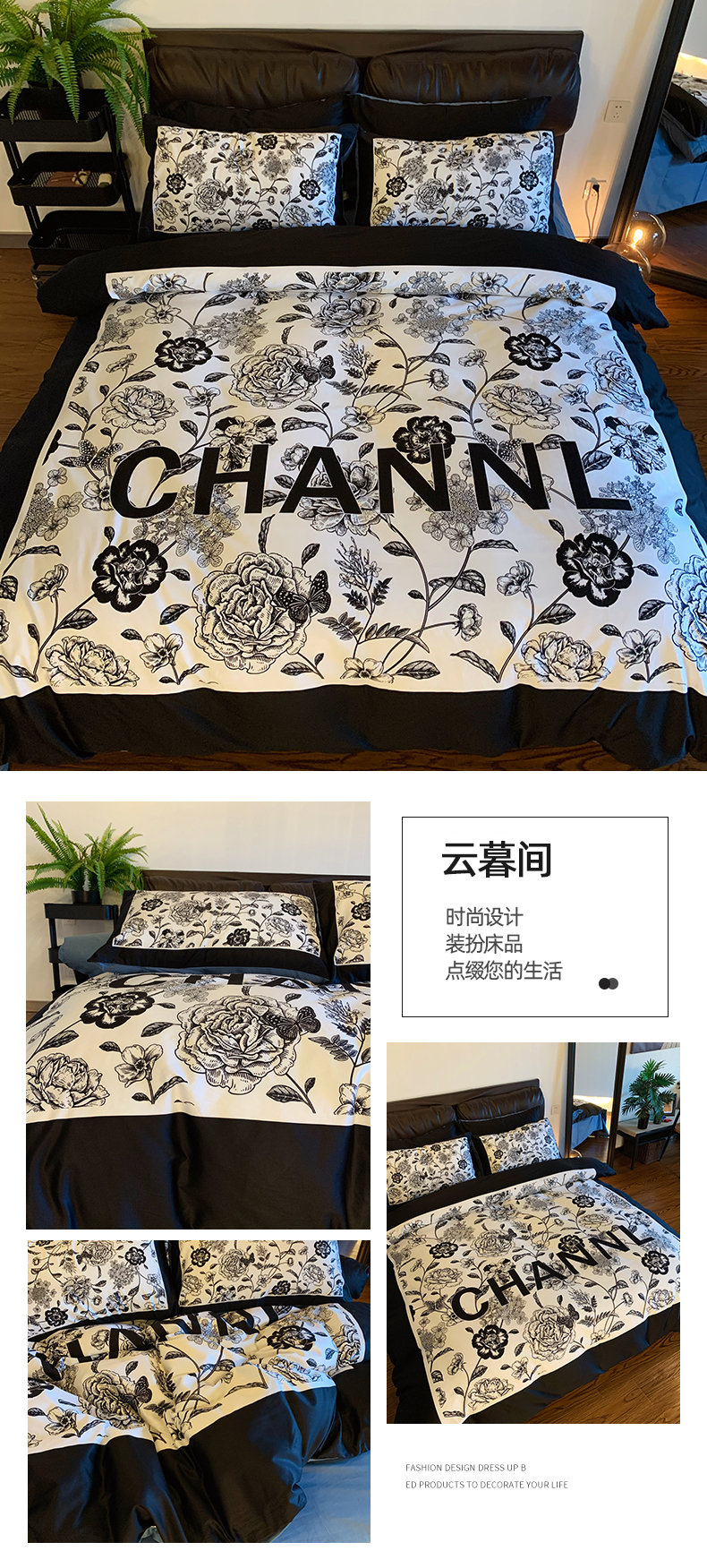 (总)色鬼布艺高端家居主号 2025新款轻奢亲肤纯棉数码印花网红热款四件套,豹纹香,白金V,白香花,大H,黑白迪,黑白V,灰迪,咖古,克莱因,慕斯小姐,山茶花,星空