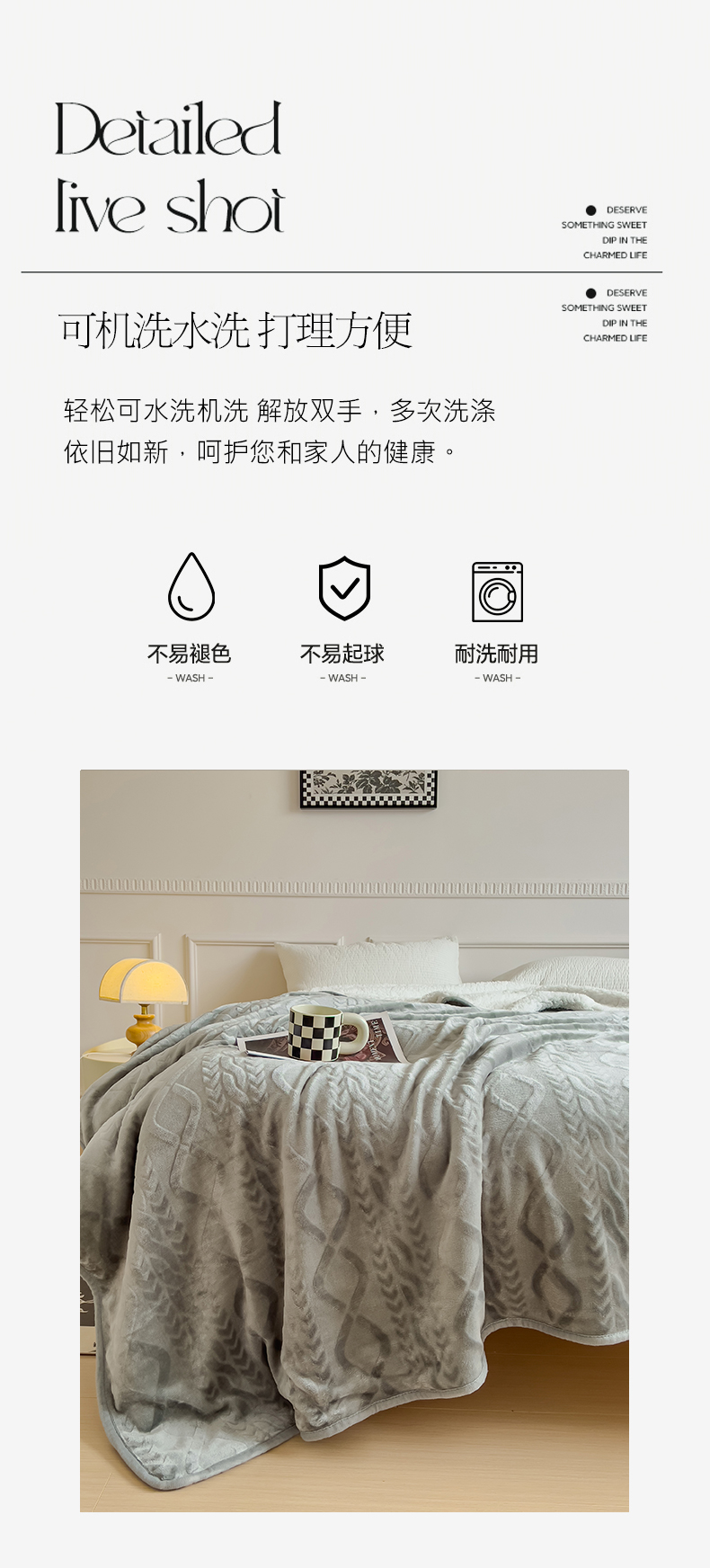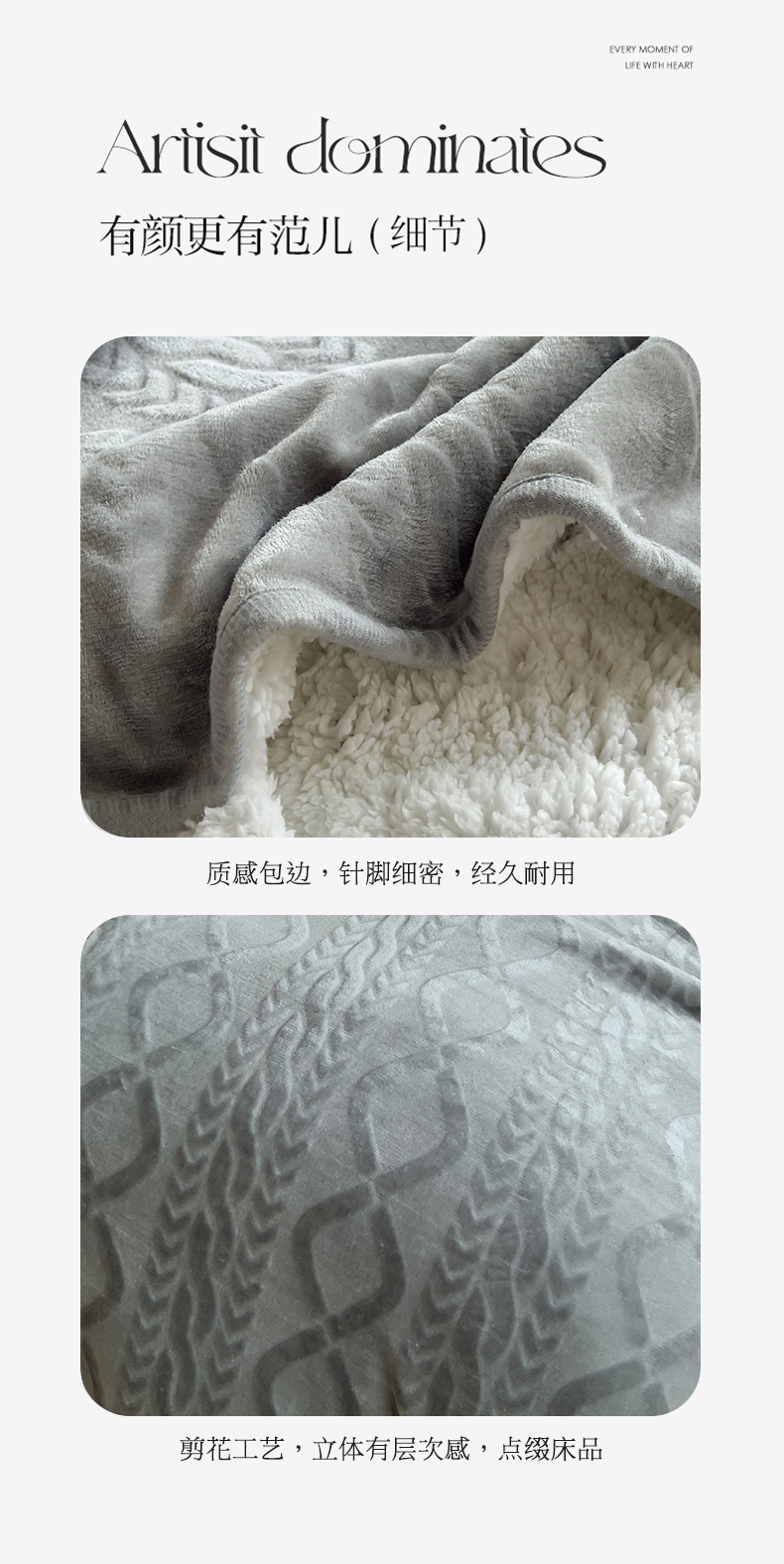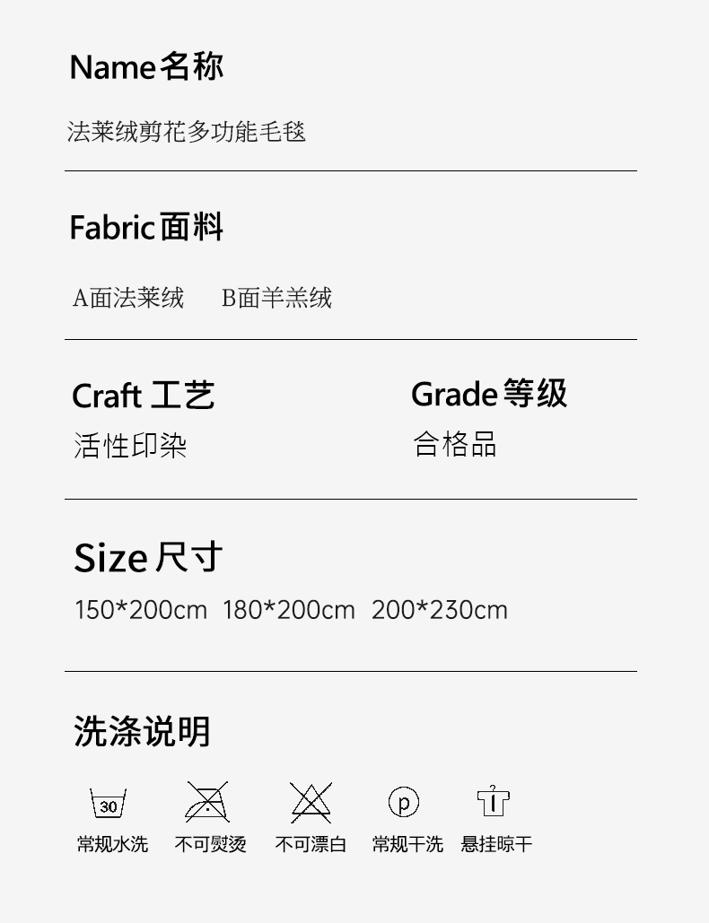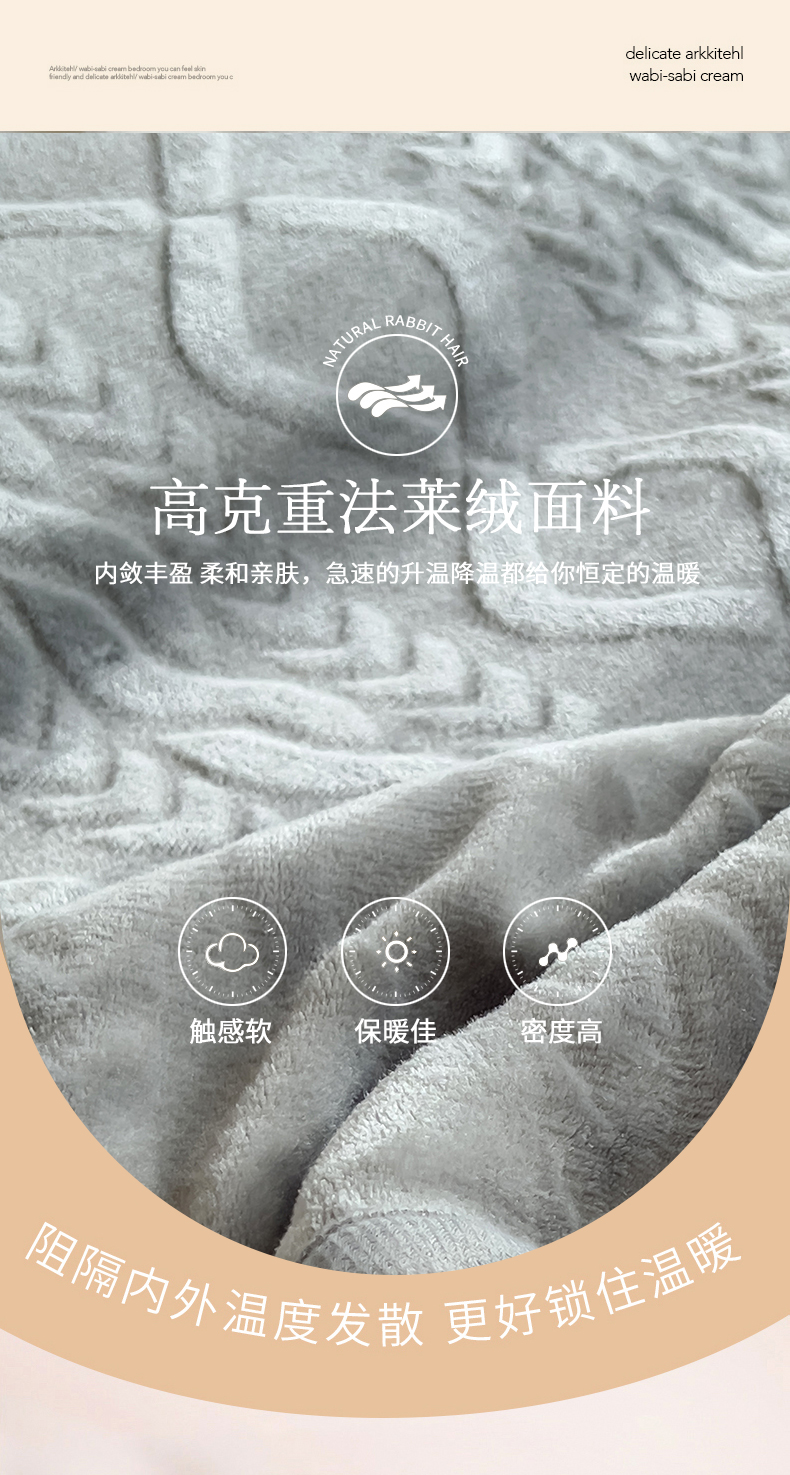 商品名称:宜家坊新款秋冬高克重法莱绒羊羔绒立体剪花纯色多功能毛毯 绅士灰