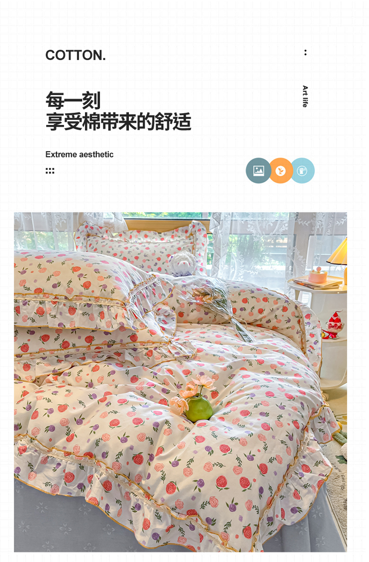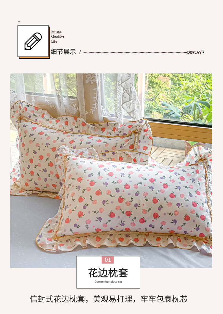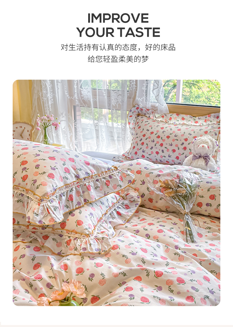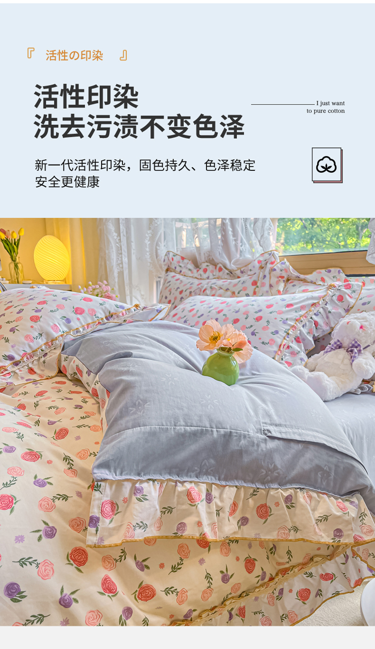商品名称:艾唯希家纺 2024新款全棉韩式花边四件套纯棉公主风田园系列 绽颜