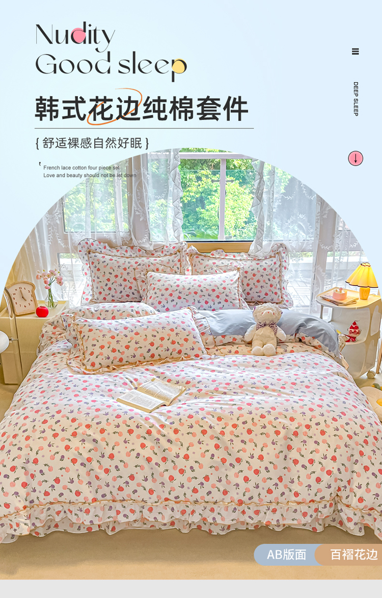 艾唯希家纺 2024新款全棉韩式花边四件套纯棉公主风田园系列 绽颜