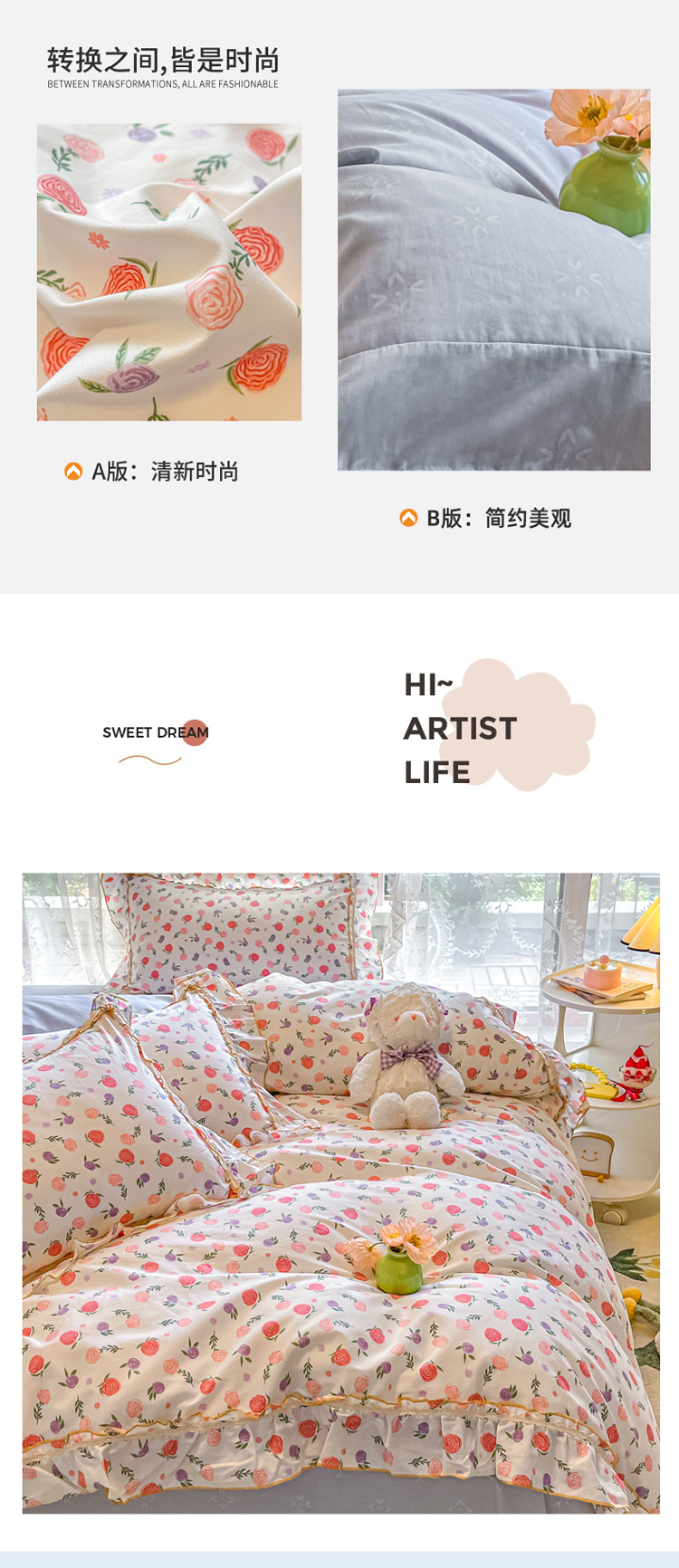 (总)艾唯希家纺 2025新款全棉双层花边四件套纯棉小碎花10个花型-花边系列,春意萌,恋之晴空,奶芙蓉-绿,奶芙蓉-粉,林间物语-绿,林间物语-紫,花冉,花艺漫漫,梳璃,雾里花