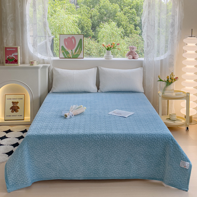 商品名称:雅眠居 2023秋冬新款纯色牛奶绒床盖保暖素色婴儿绒床盖盖毯 浅蓝