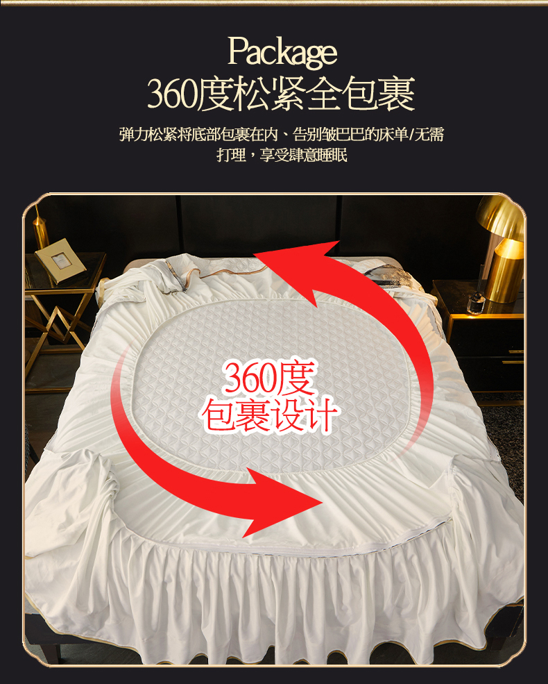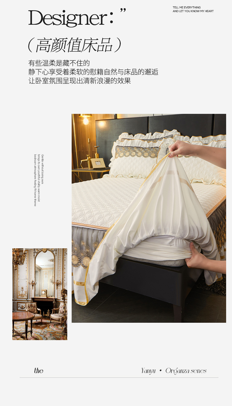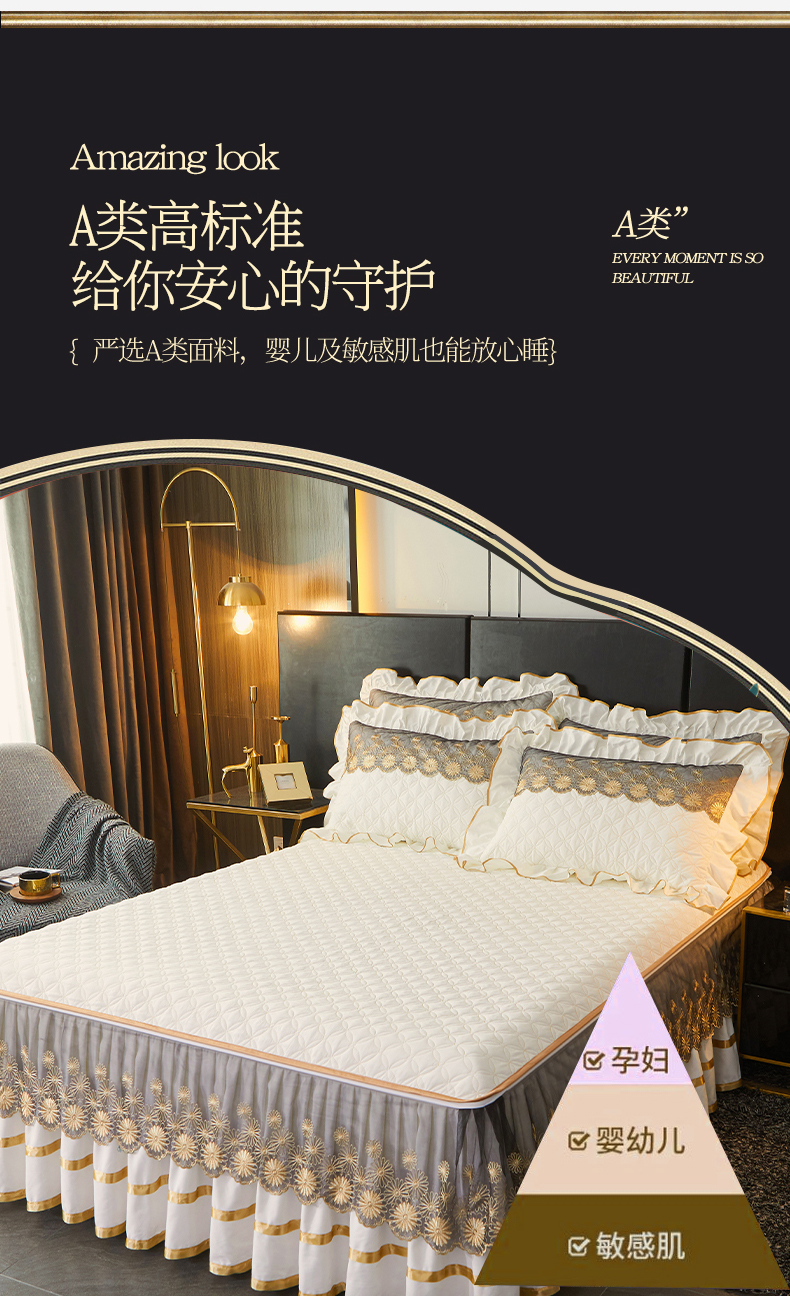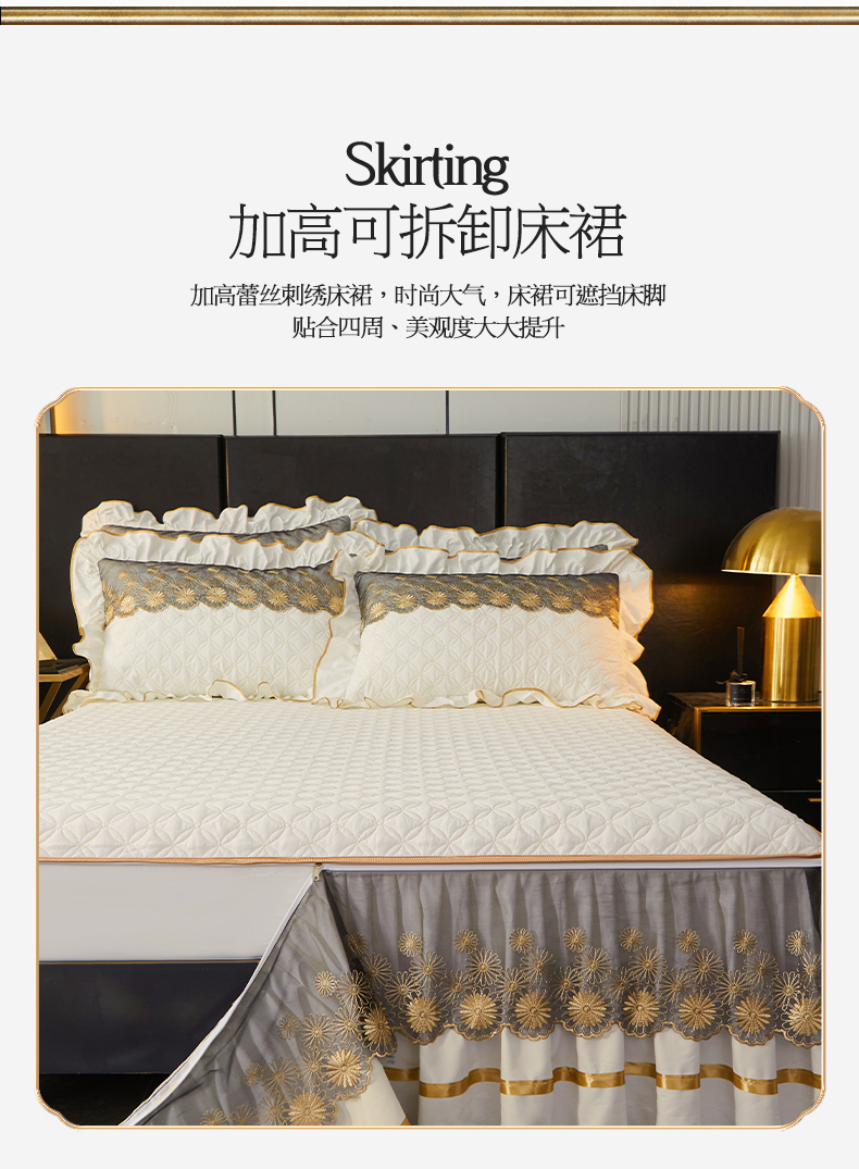 罗艺轩 2024新款A类蛋白棉夹棉床裙-品味人生 品味人生-珍珠白