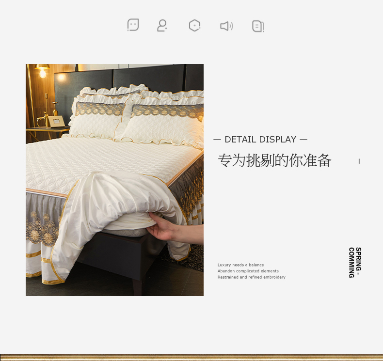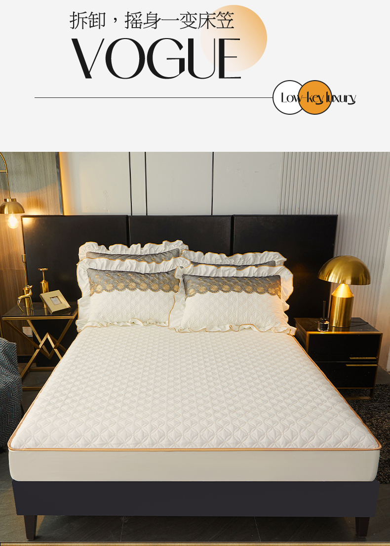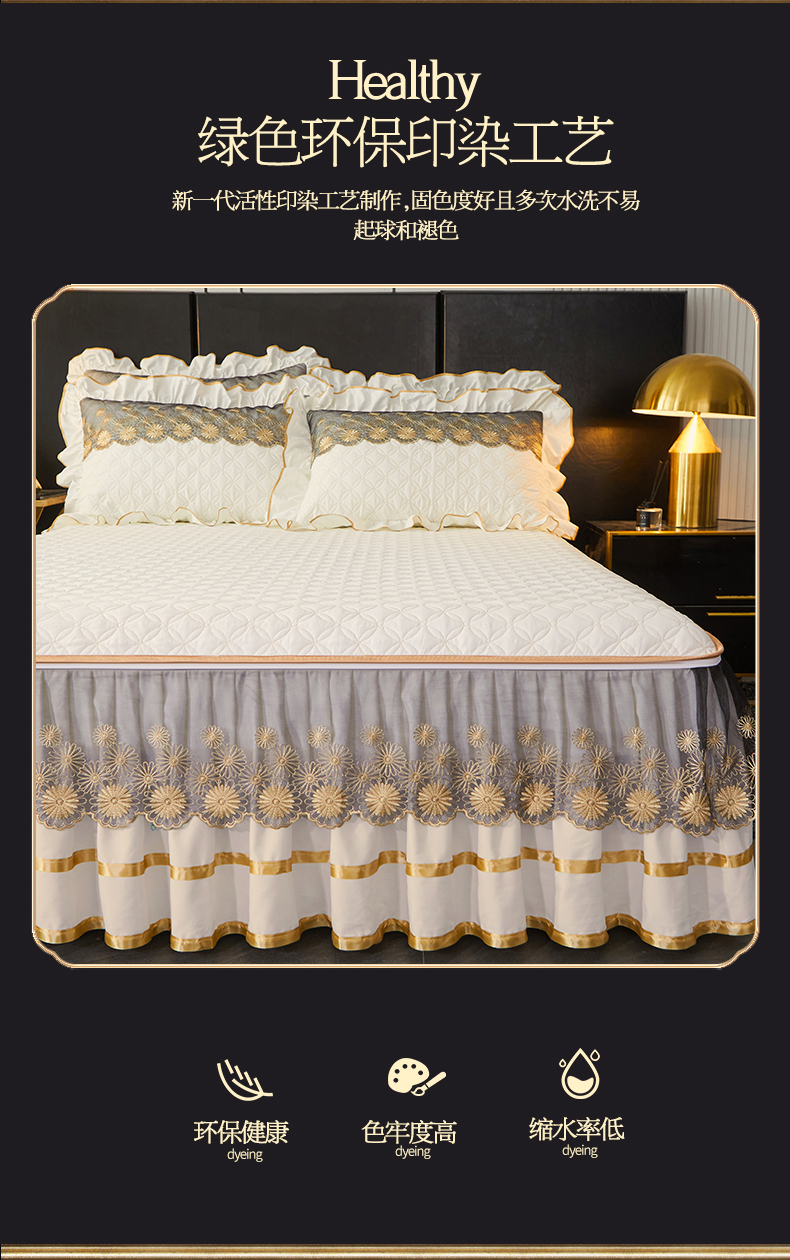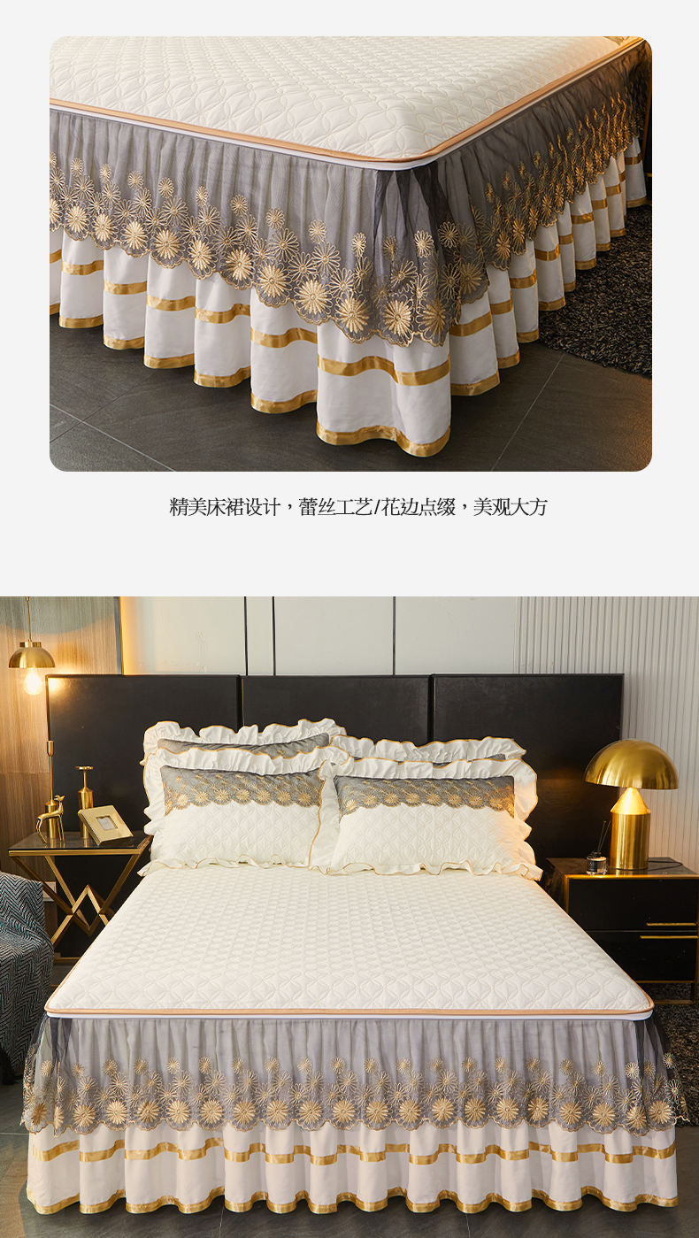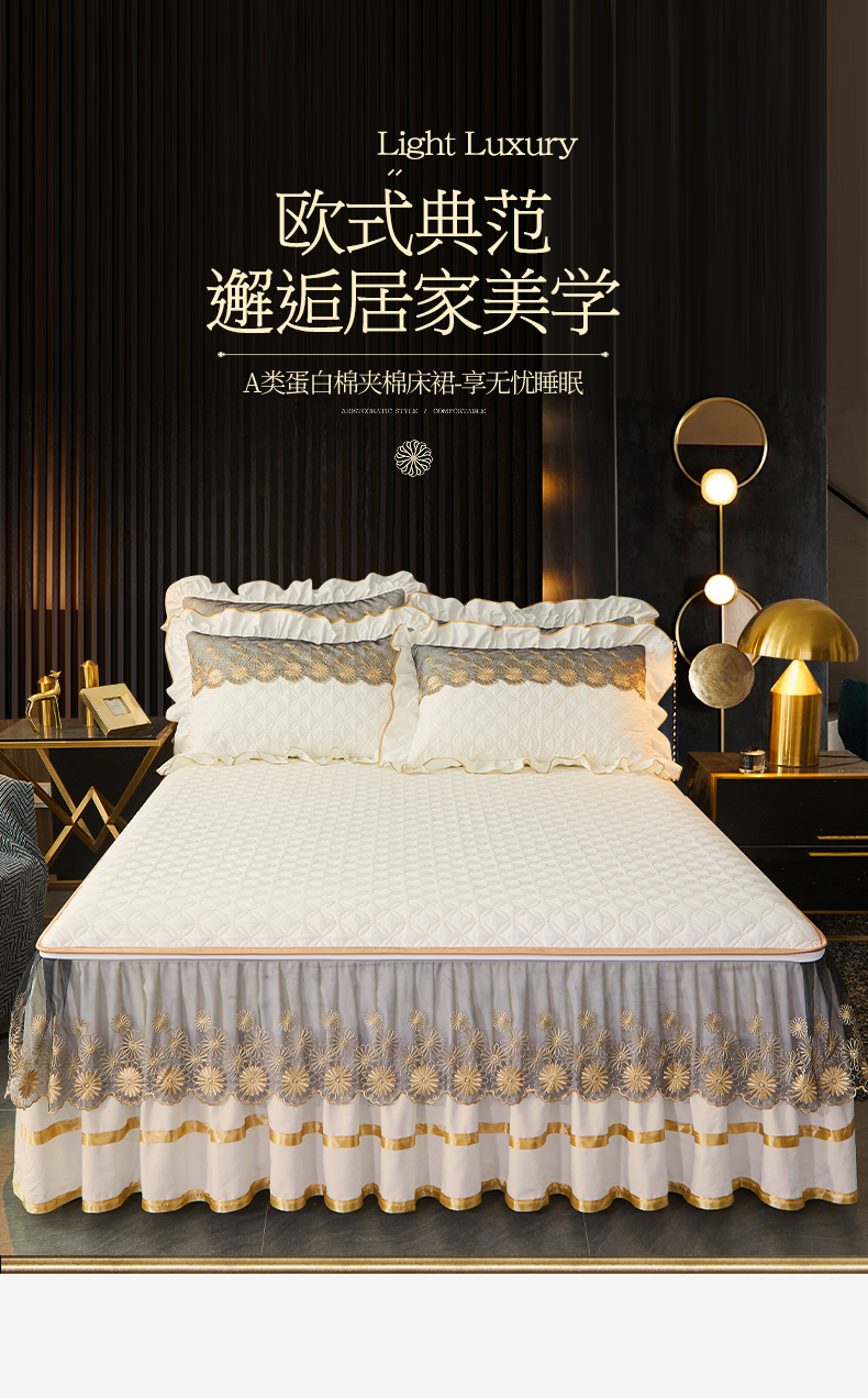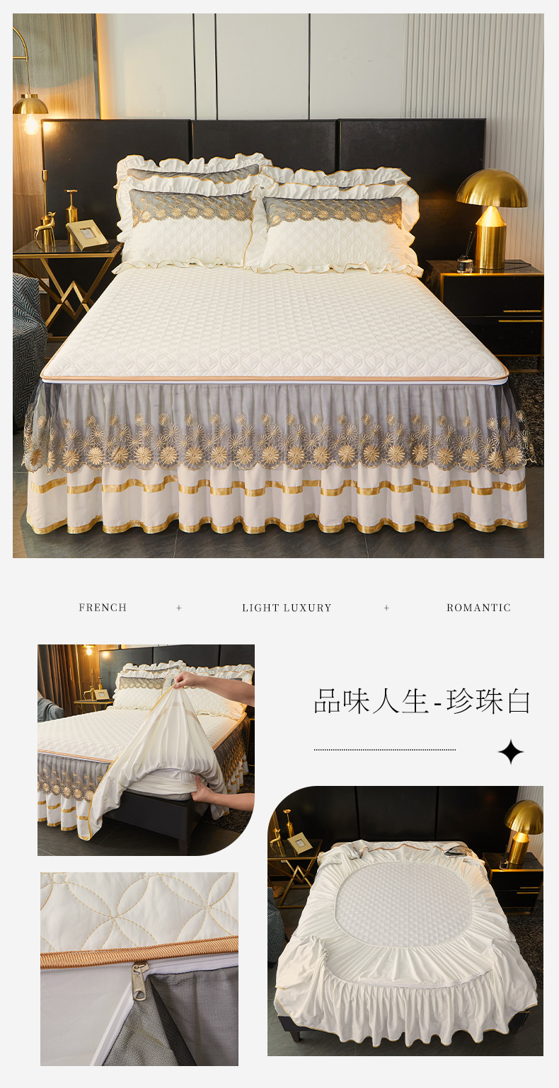 商品名称:罗艺轩 2024新款A类蛋白棉夹棉床裙-品味人生 品味人生-珍珠白