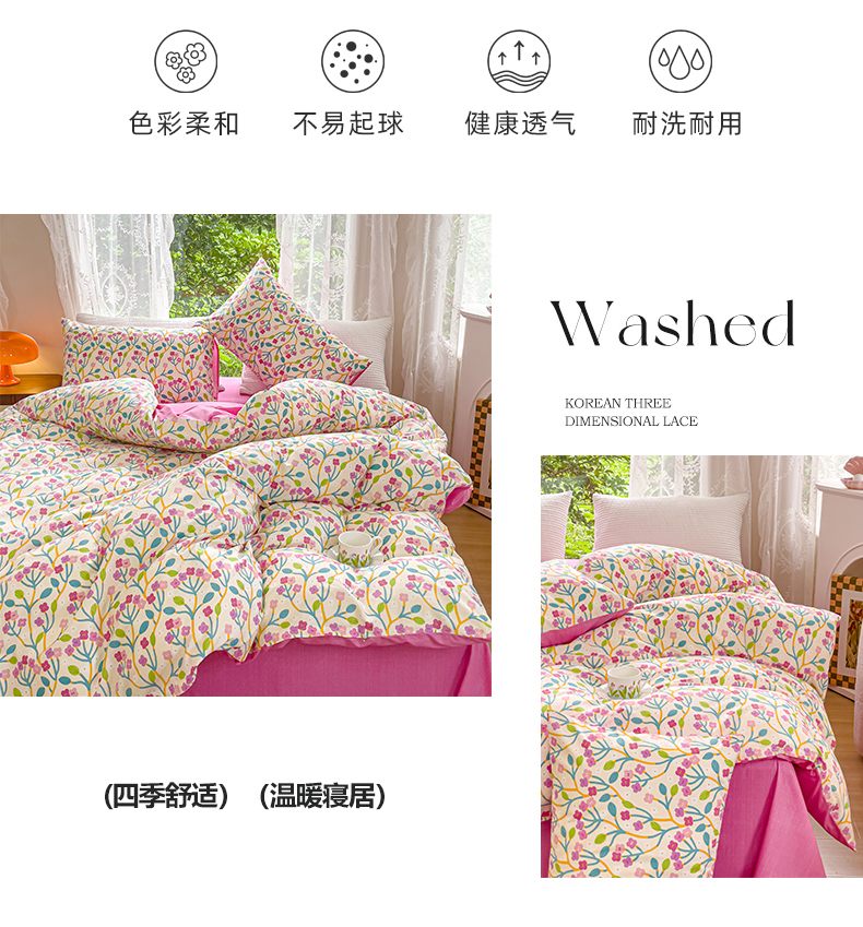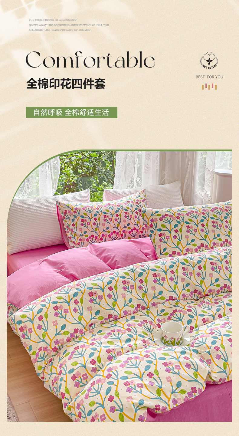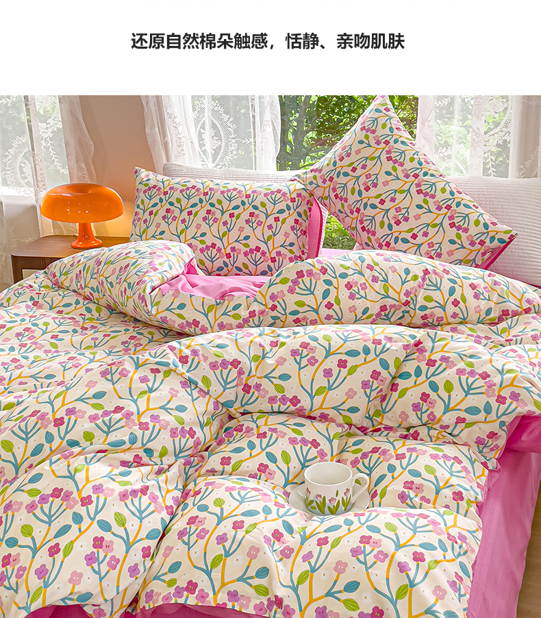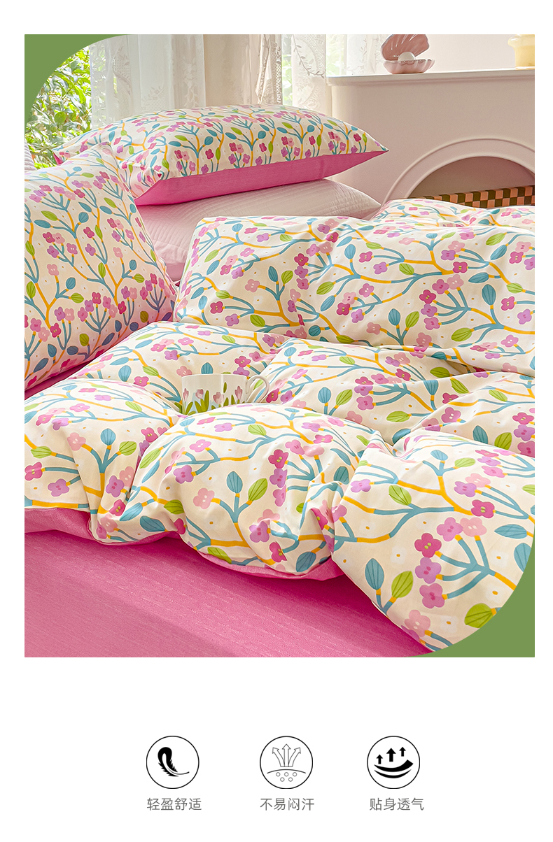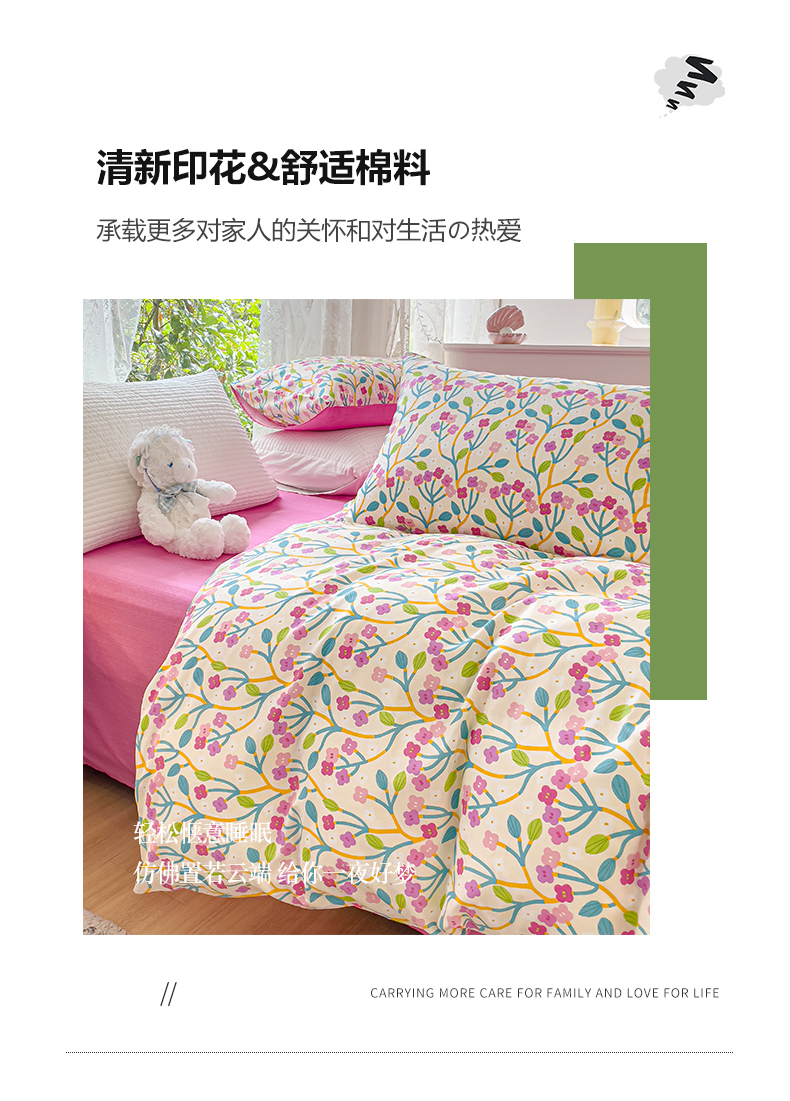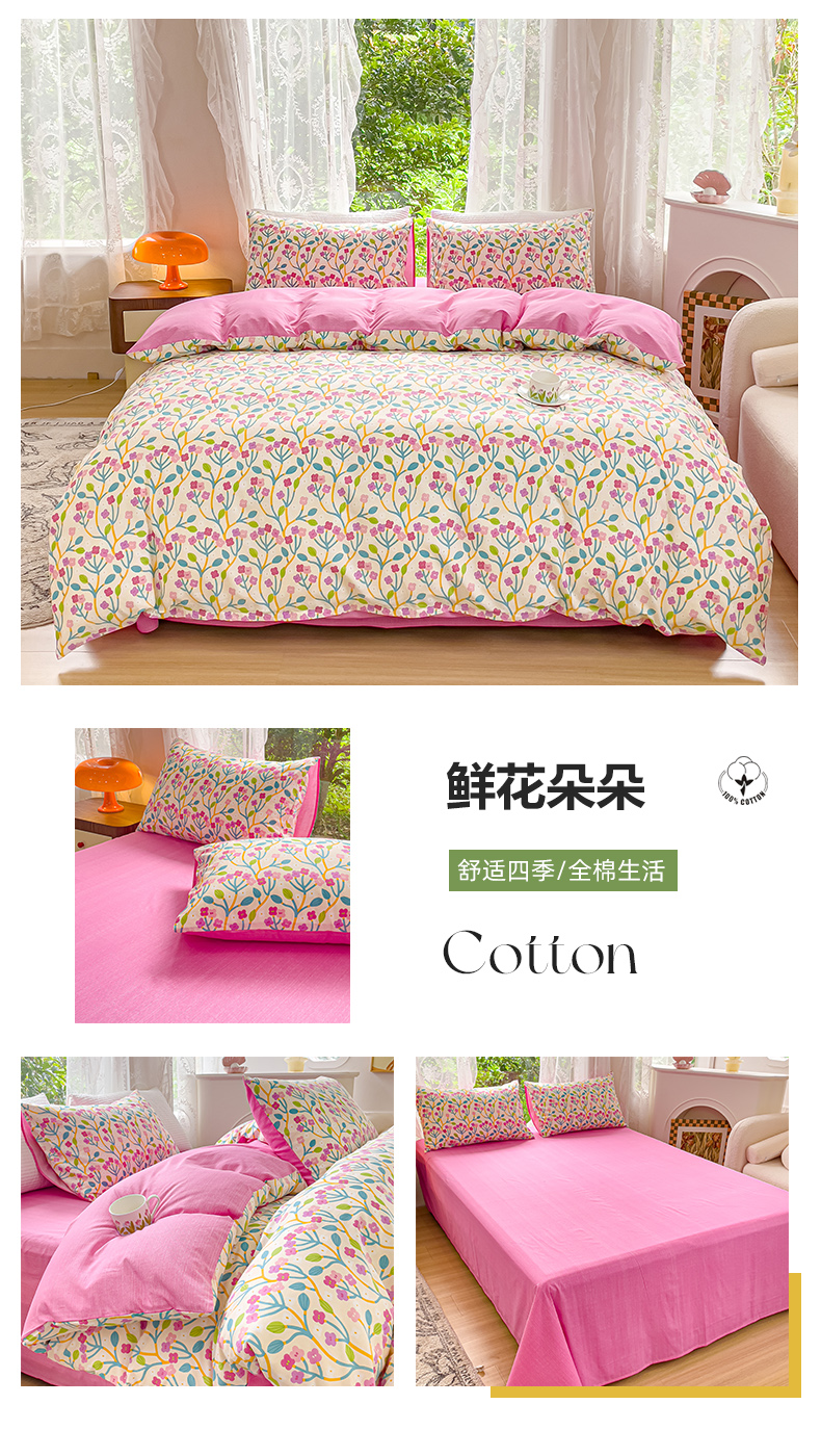 商品名称:感遇家纺 2023新款全棉印花四件套 鲜花朵朵