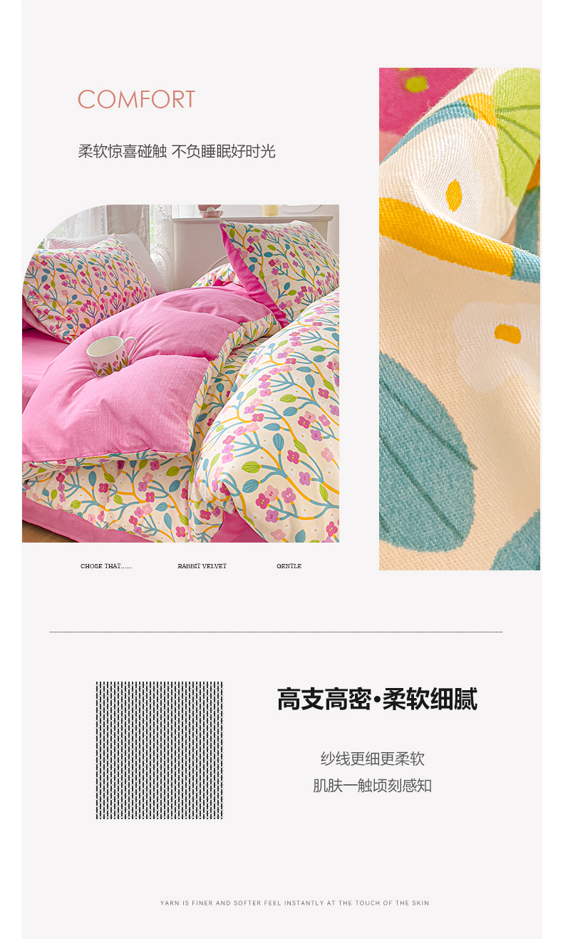 (总)感遇家纺 2025新款小清新甜系全棉四件套,百丽兔,波点小女孩,点点小狗,复古樱桃,格子草莓,格子樱桃,花间牧歌,灰条猫咪,奶绿,宁夏,森林小熊猫,甜心波点
