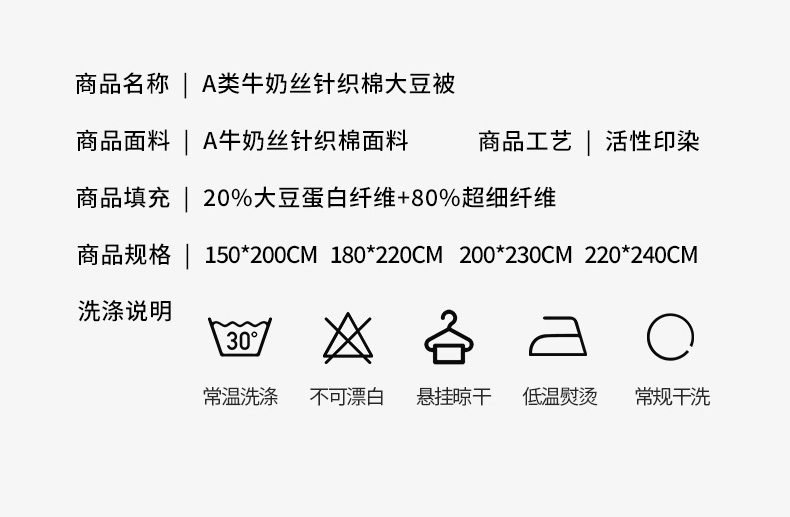 • 填充纤维种类: 大豆蛋白改性聚酯纤维