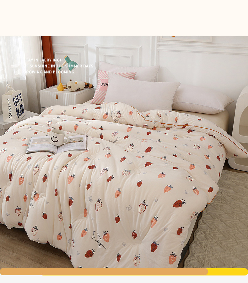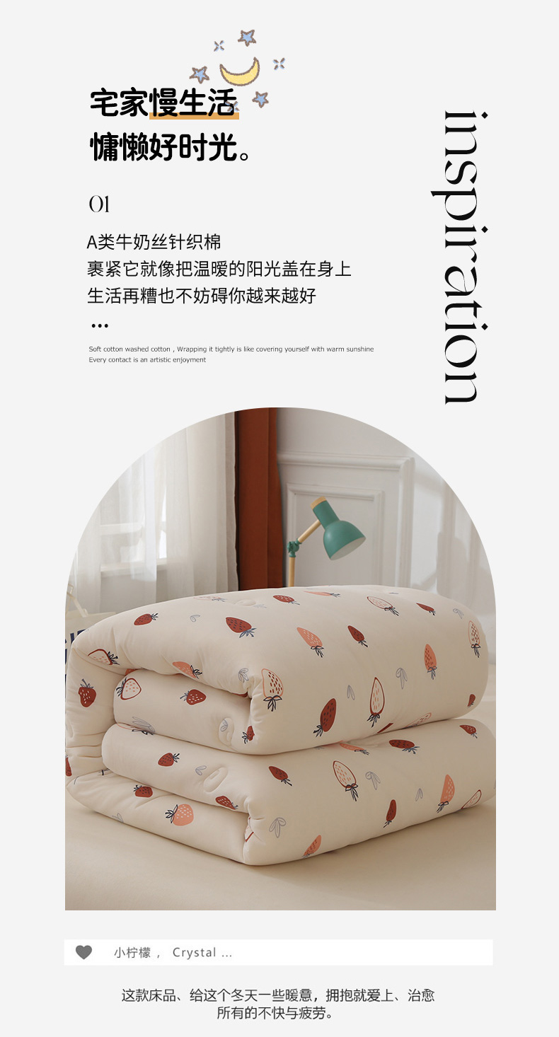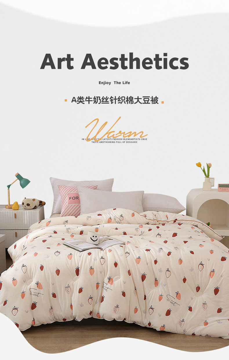 • 91家纺网 家纺一手货源 找家纺 薇玛仕 2025新款A类牛奶丝针织棉印花大豆被 白草莓