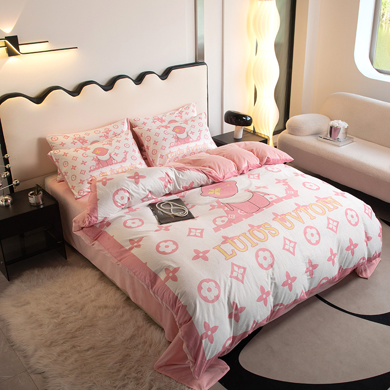 当前位置: 91家纺网 > 商品网购 > 床品套件 > 四件套 > 宝宝绒四件套 > 色鬼 2023新款网红款潮牌婴儿绒宝宝绒印花牛奶绒四件套 太阳花粉