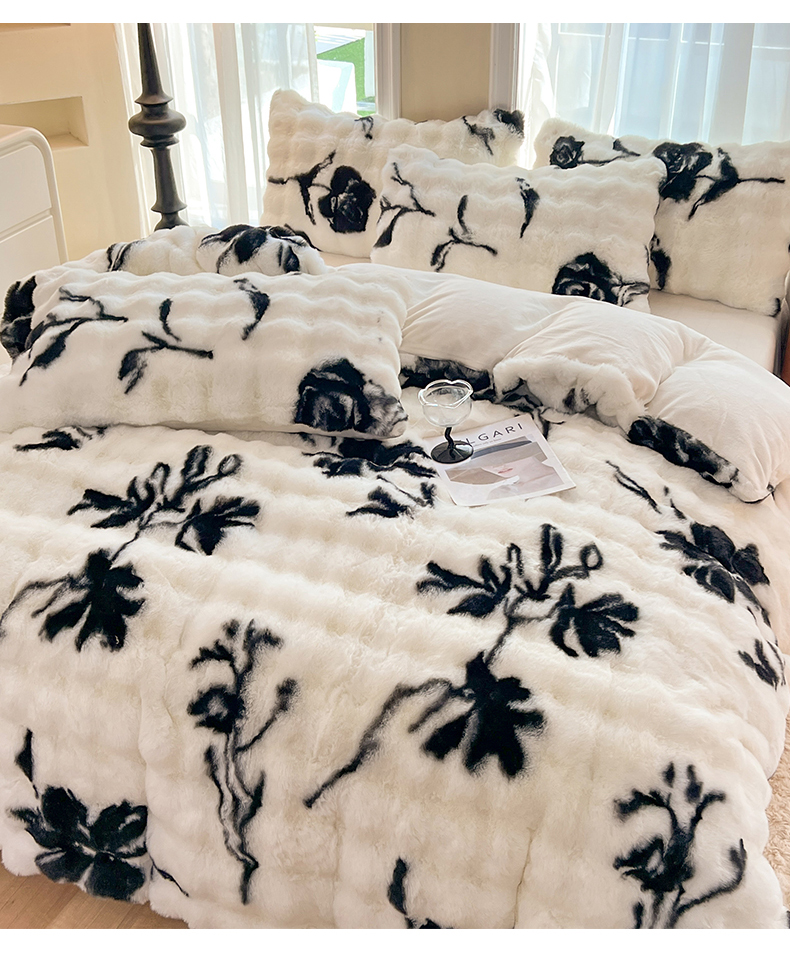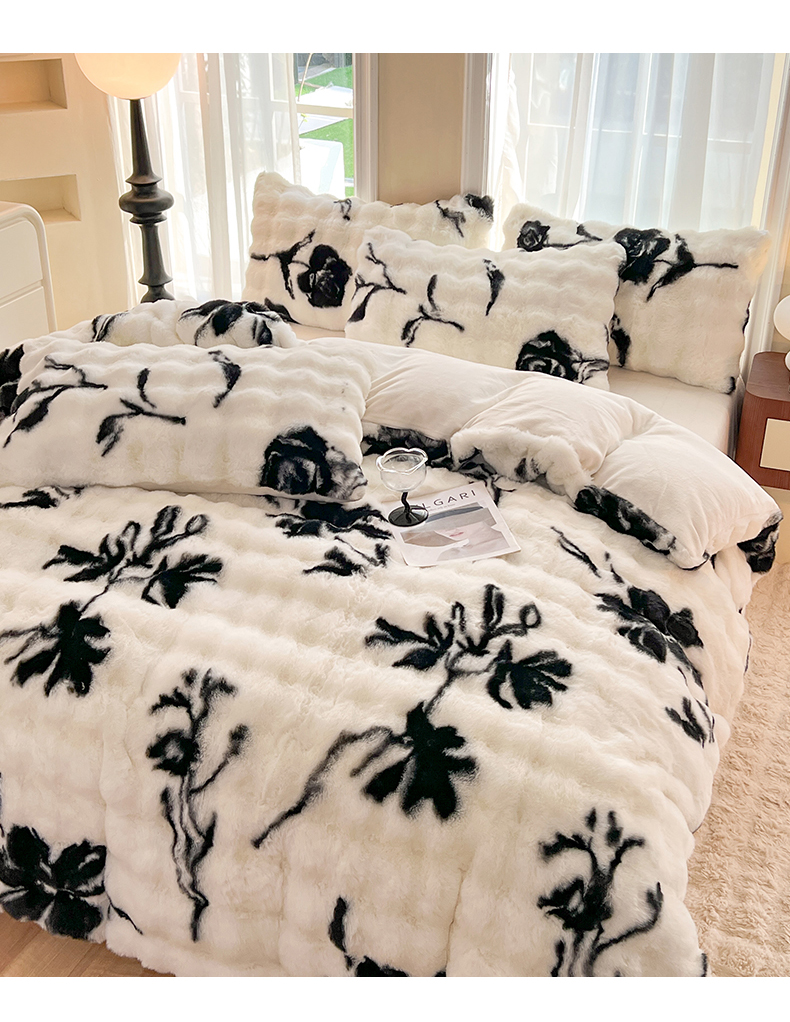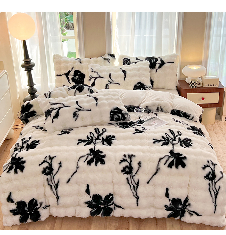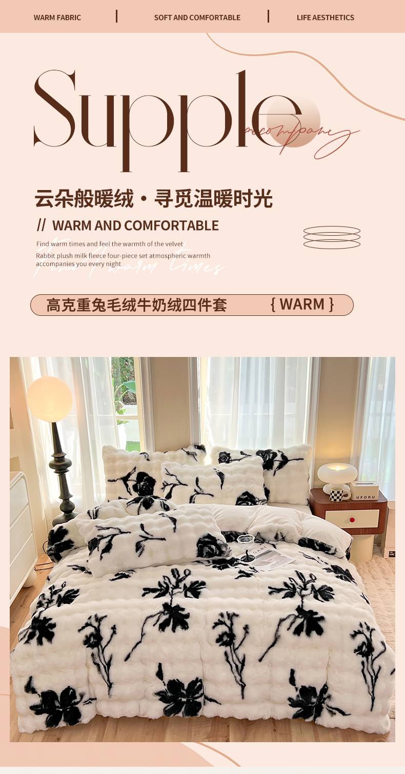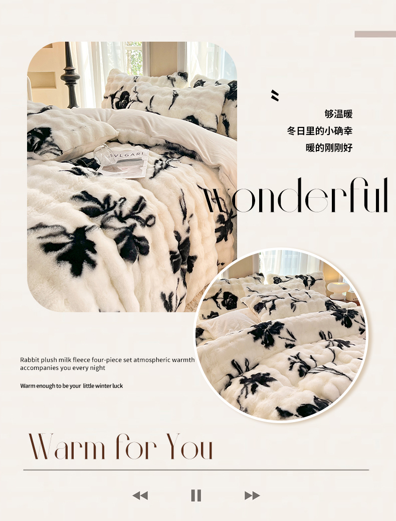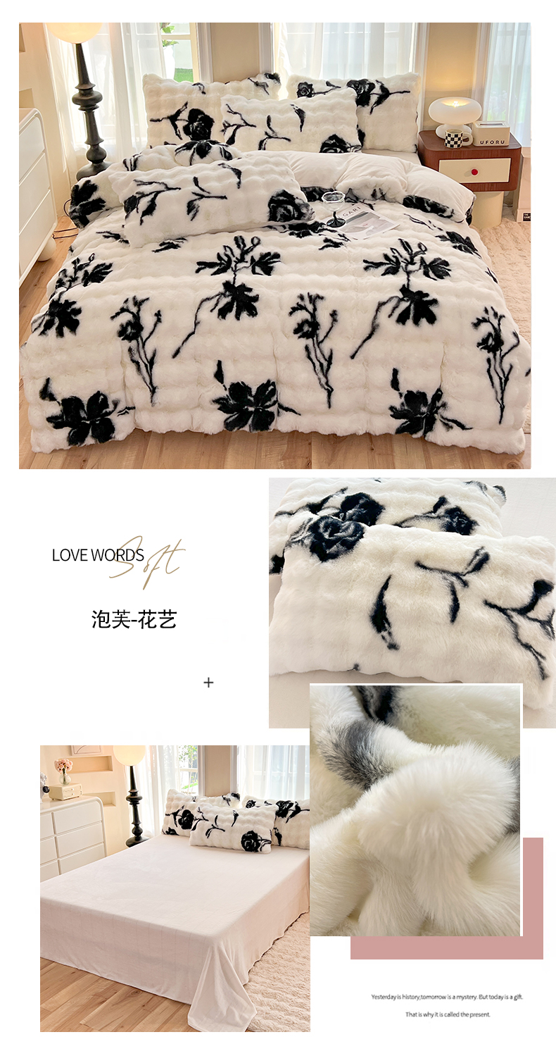 妖妖 2023新款兔毛牛奶绒四件套-泡芙 泡芙-花艺