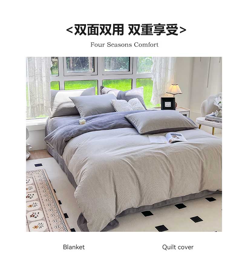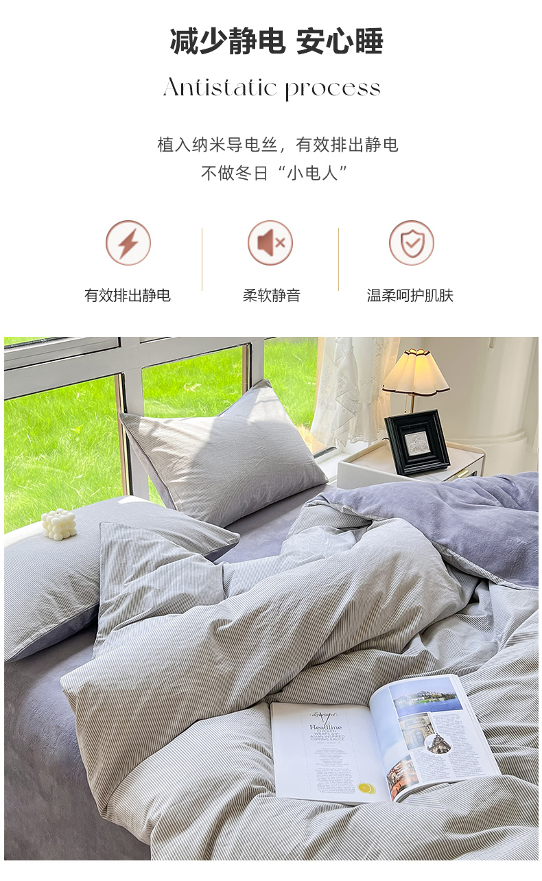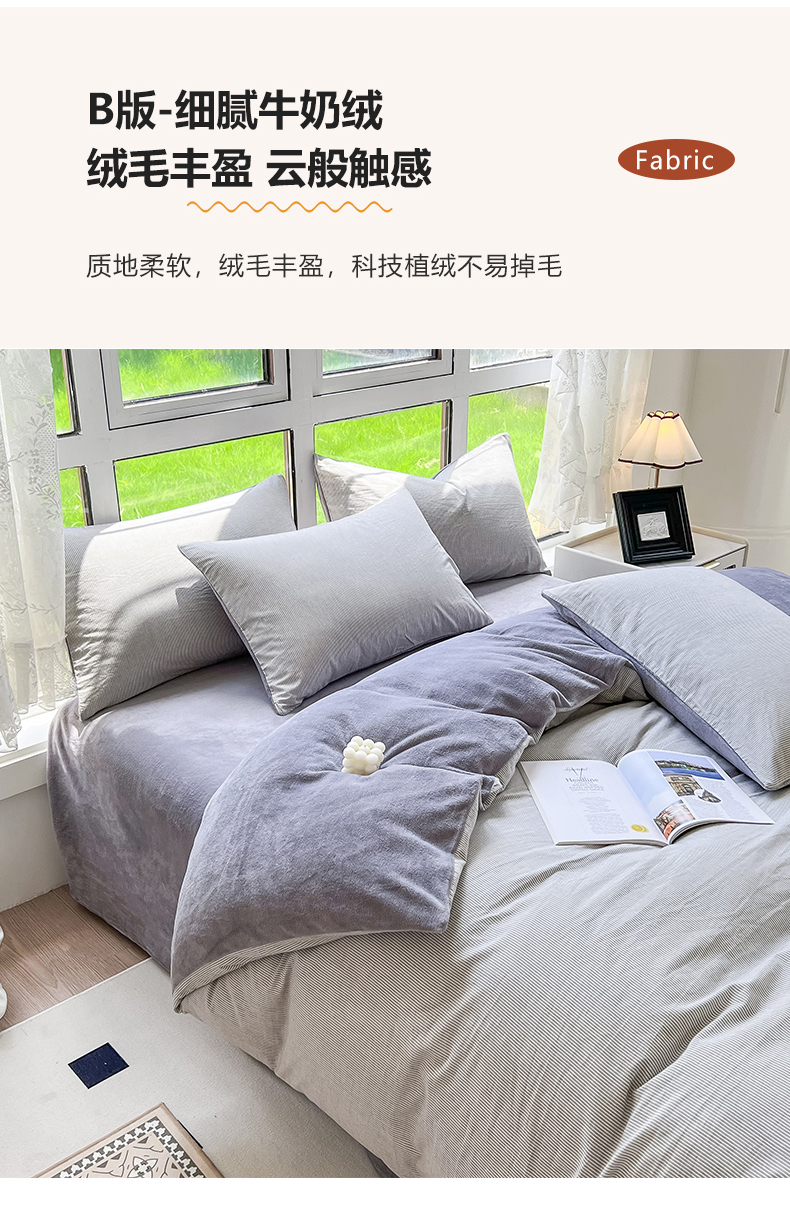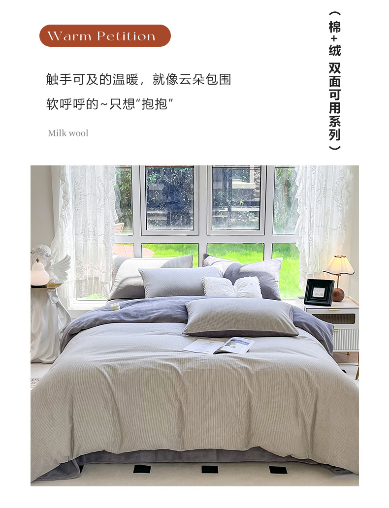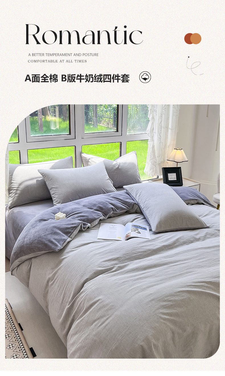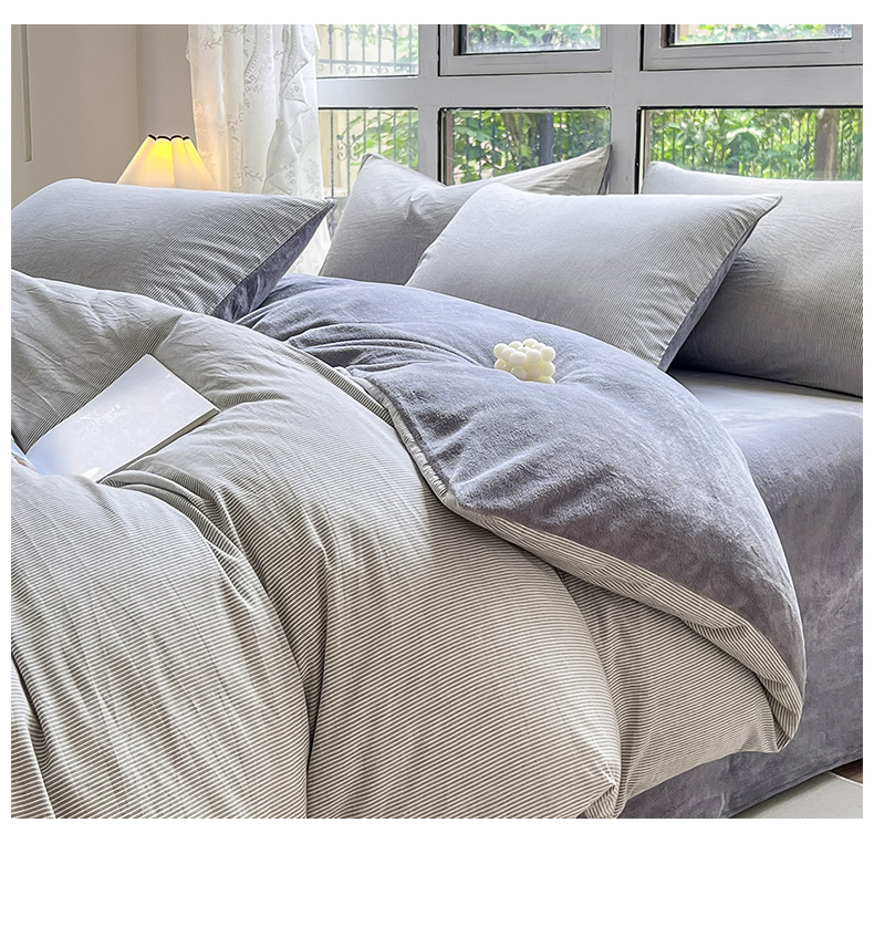 当前位置: 91家纺网 > 商品网购 > 床品套件 > 四件套 > 牛奶绒四件套 > 柠萌家居 2023新款全棉色织水洗棉加牛奶绒四件套全棉拼牛奶绒 棉+绒-灰极细条