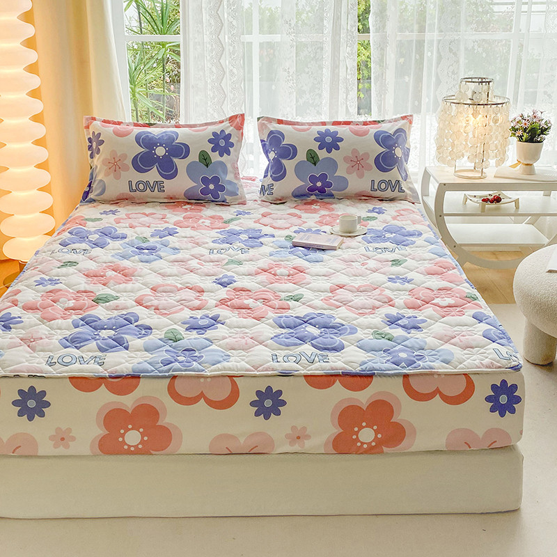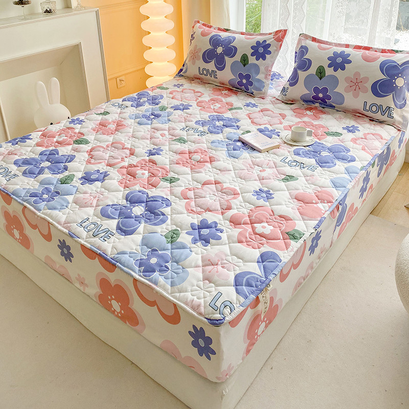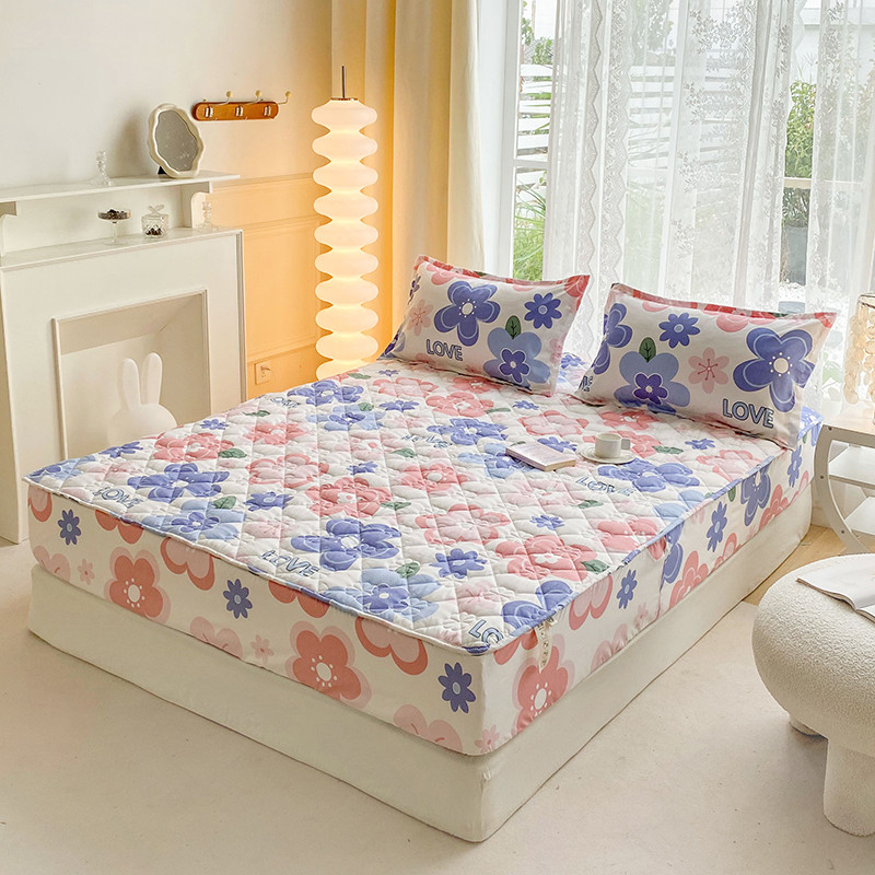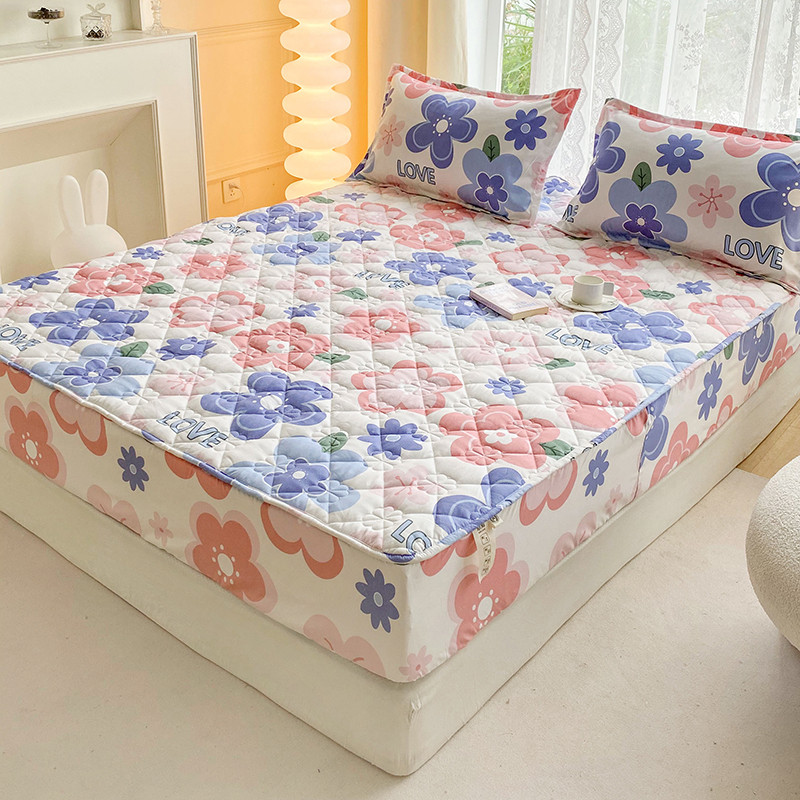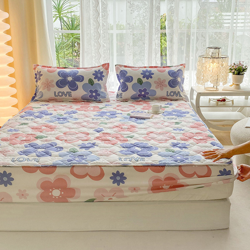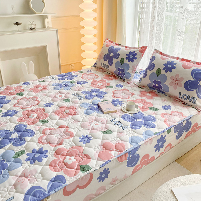 米柳 2024新款亲肤夹棉印花床笠 花蕾