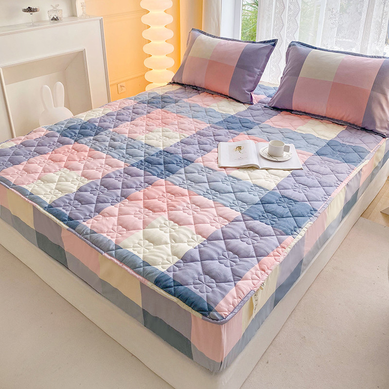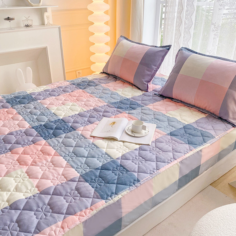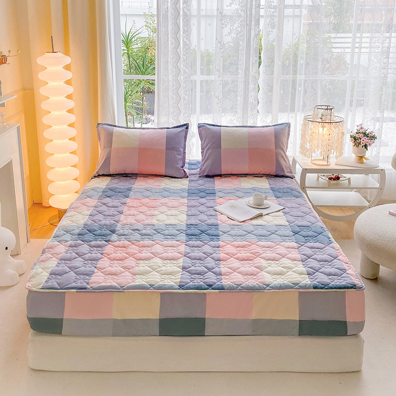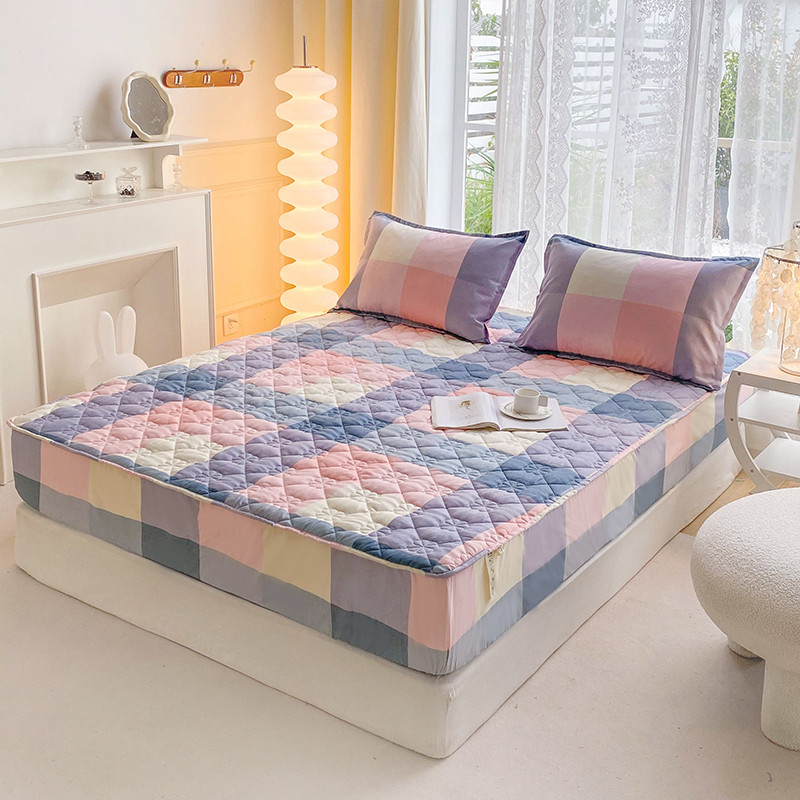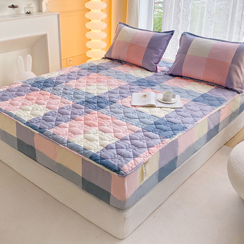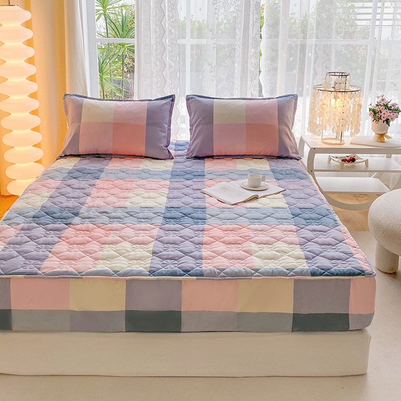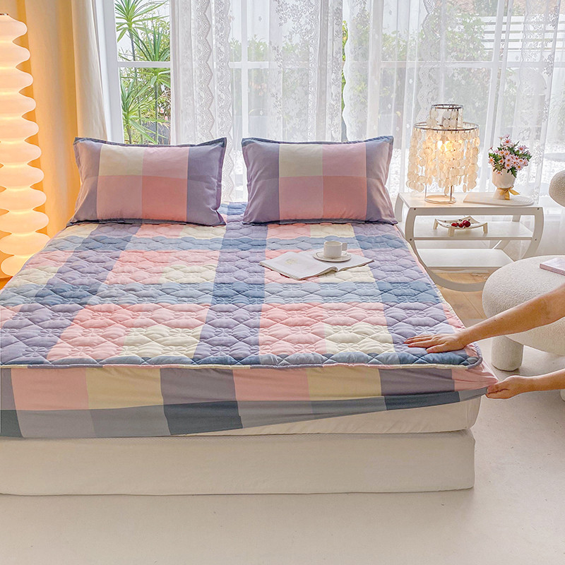 米柳 2024新款亲肤夹棉印花床笠 嫣红品格