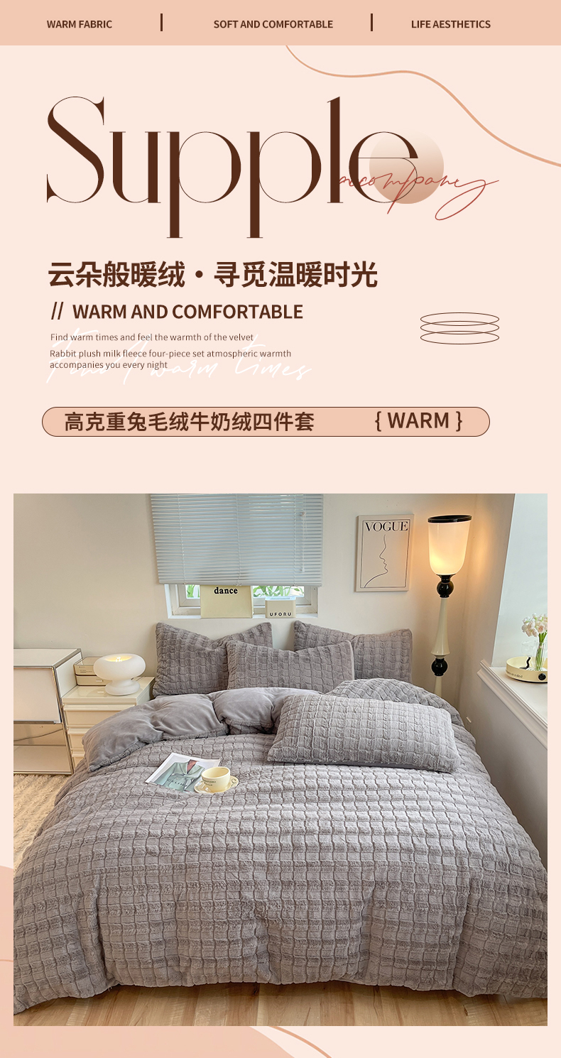 (总)妖妖 2023新款兔毛牛奶绒四件套-泡芙,泡芙-薄荷绿,泡芙-花艺,泡芙-灰紫,泡芙-橘红,泡芙-米白,泡芙-浅灰,泡芙-浅卡其,泡芙-浅紫,泡芙-山茶,泡芙-珊瑚粉,泡芙-深灰,泡芙-水绿,泡芙-字母