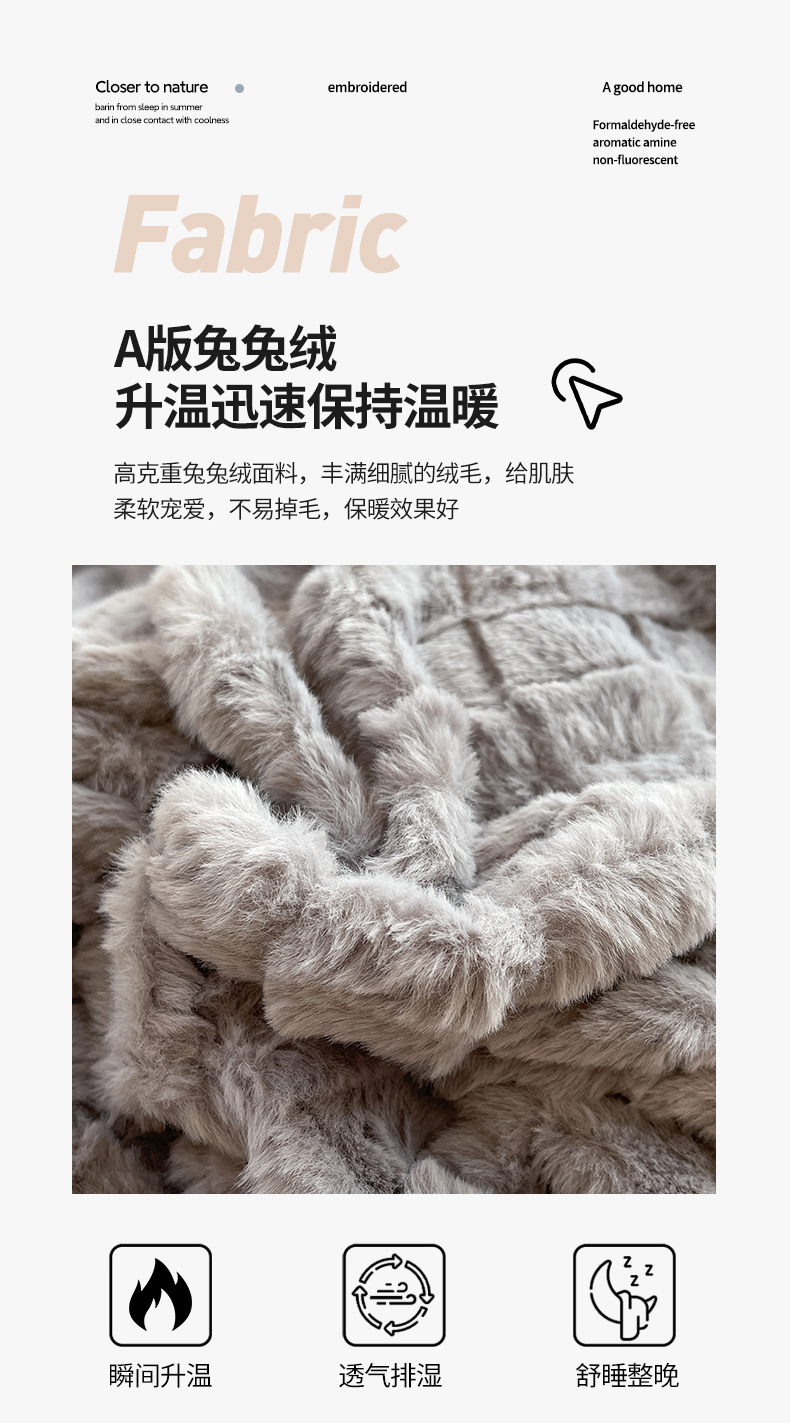 (总)妖妖家纺 2025新款600克双面大兔毛雕花纯色毛毯,浅影灰,黄阳绿,晶糖紫,蜜桃粉,奶芙咖,奶油白