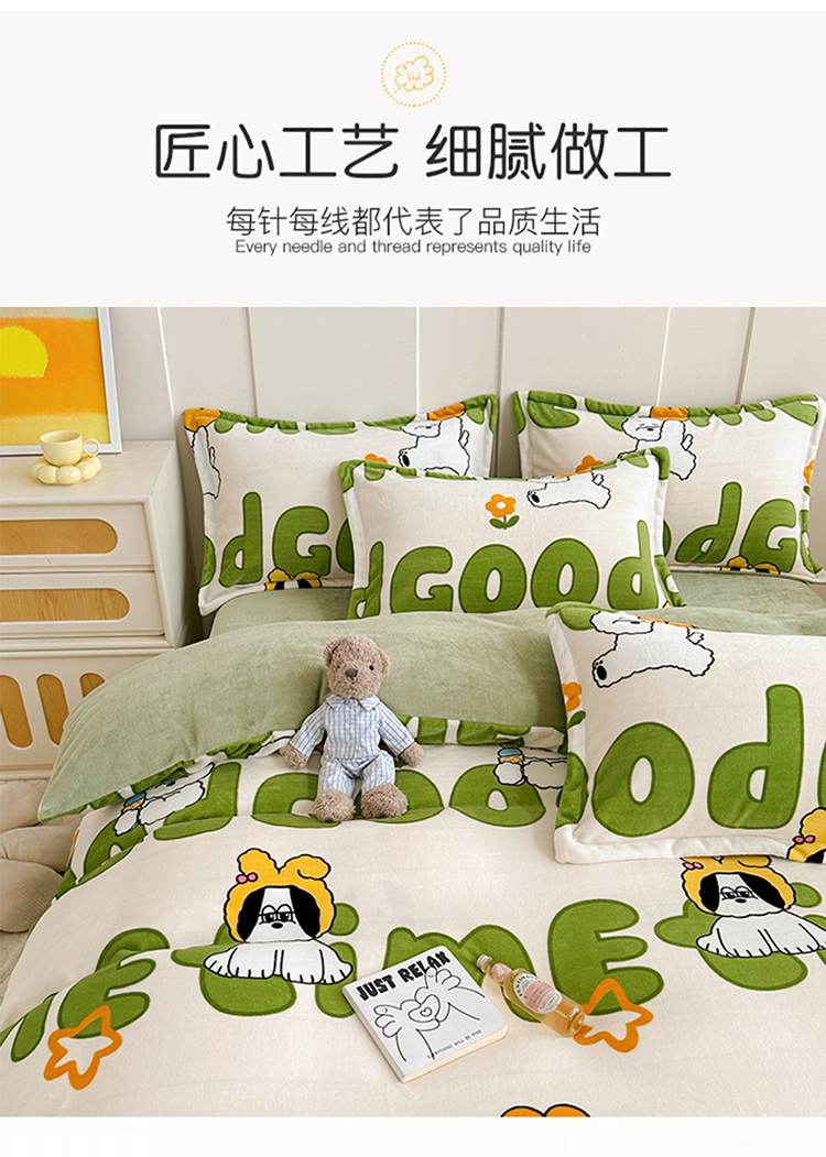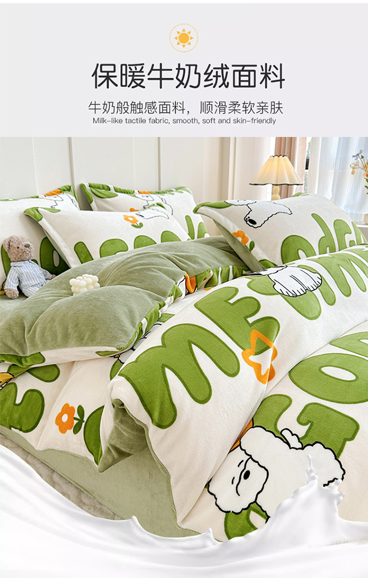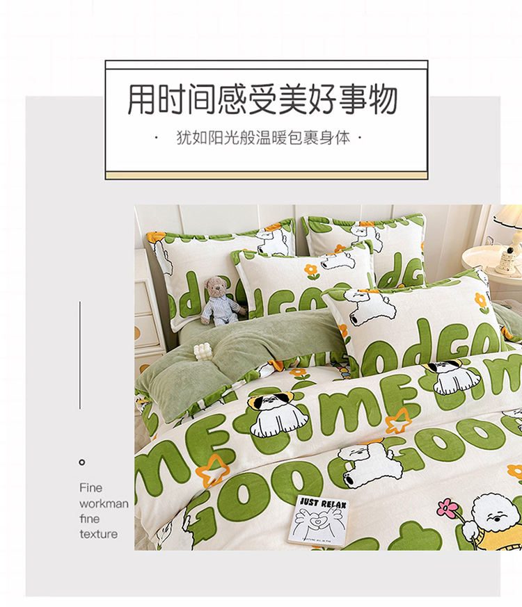 当前位置: 91家纺网 > 商品网购 > 床品套件 > 四件套 > 牛奶绒四件套 > 家贝爱 2023新款加厚牛奶绒四件套 嗨皮狗