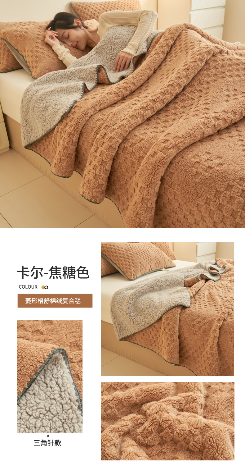 当前位置: 91家纺网 > 商品网购 > 毛毯休闲毯绒毯 > 毛毯 > 21度C 2023新款菱形格舒棉绒毛毯复合毯 卡尔-焦糖色
