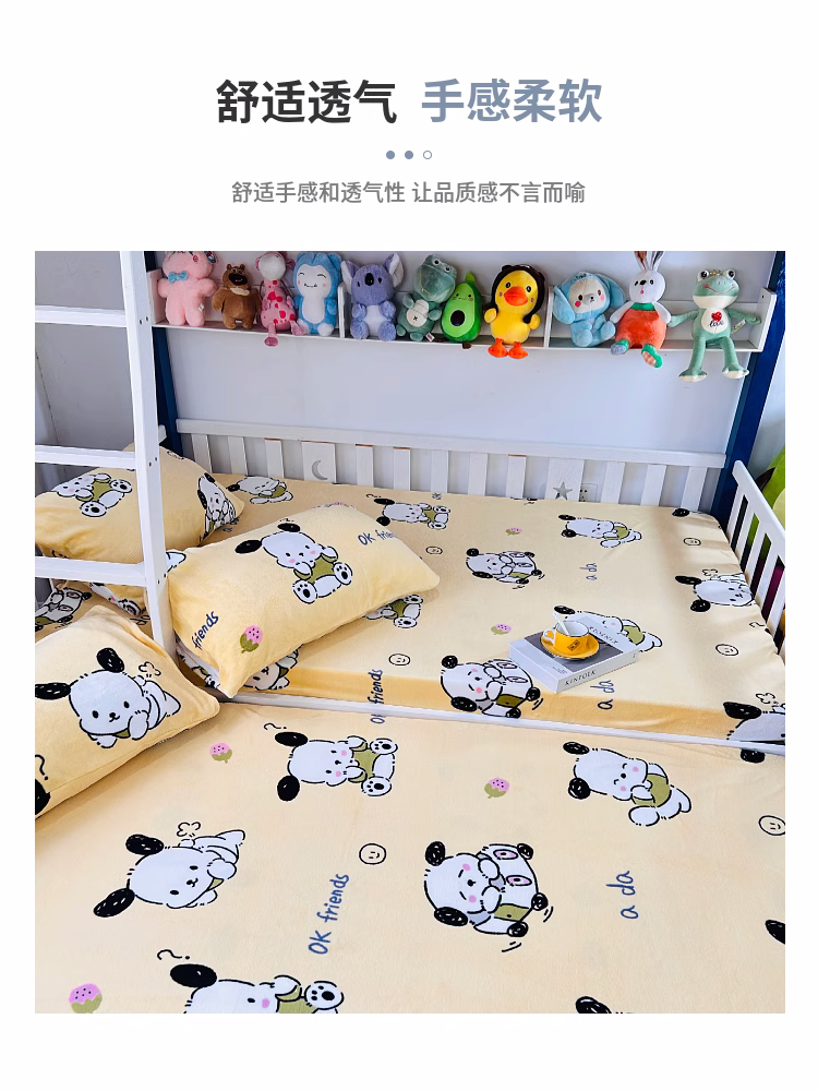 • 91家纺网 家纺一手货源 找家纺 小虾米 2023新款上下床加厚牛奶绒床笠 小奶狗