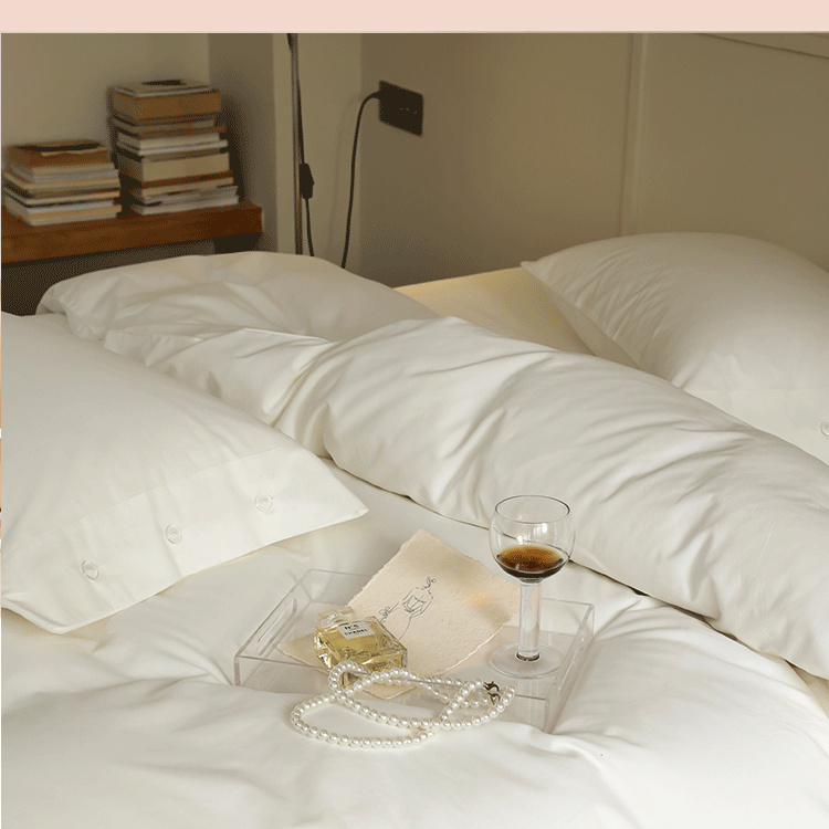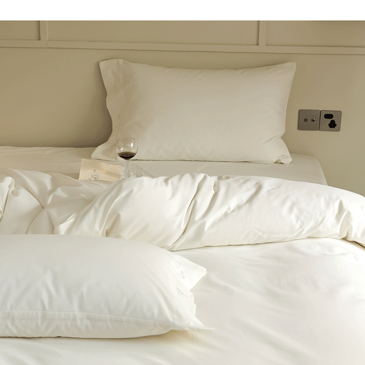 商品名称:庭彤 2023秋冬款纯棉磨毛纯色双拼四件套-桃粉系列 皓月白