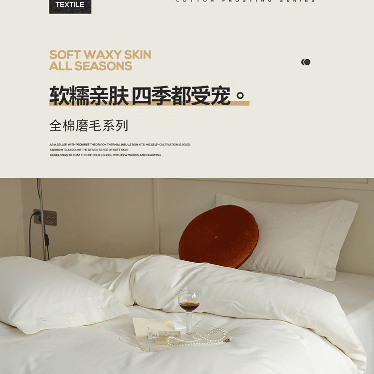 (总)庭彤 2023秋冬款纯棉磨毛纯色双拼四件套-桃粉系列,皓月白,琥珀银灰,桃粉,桃粉灰