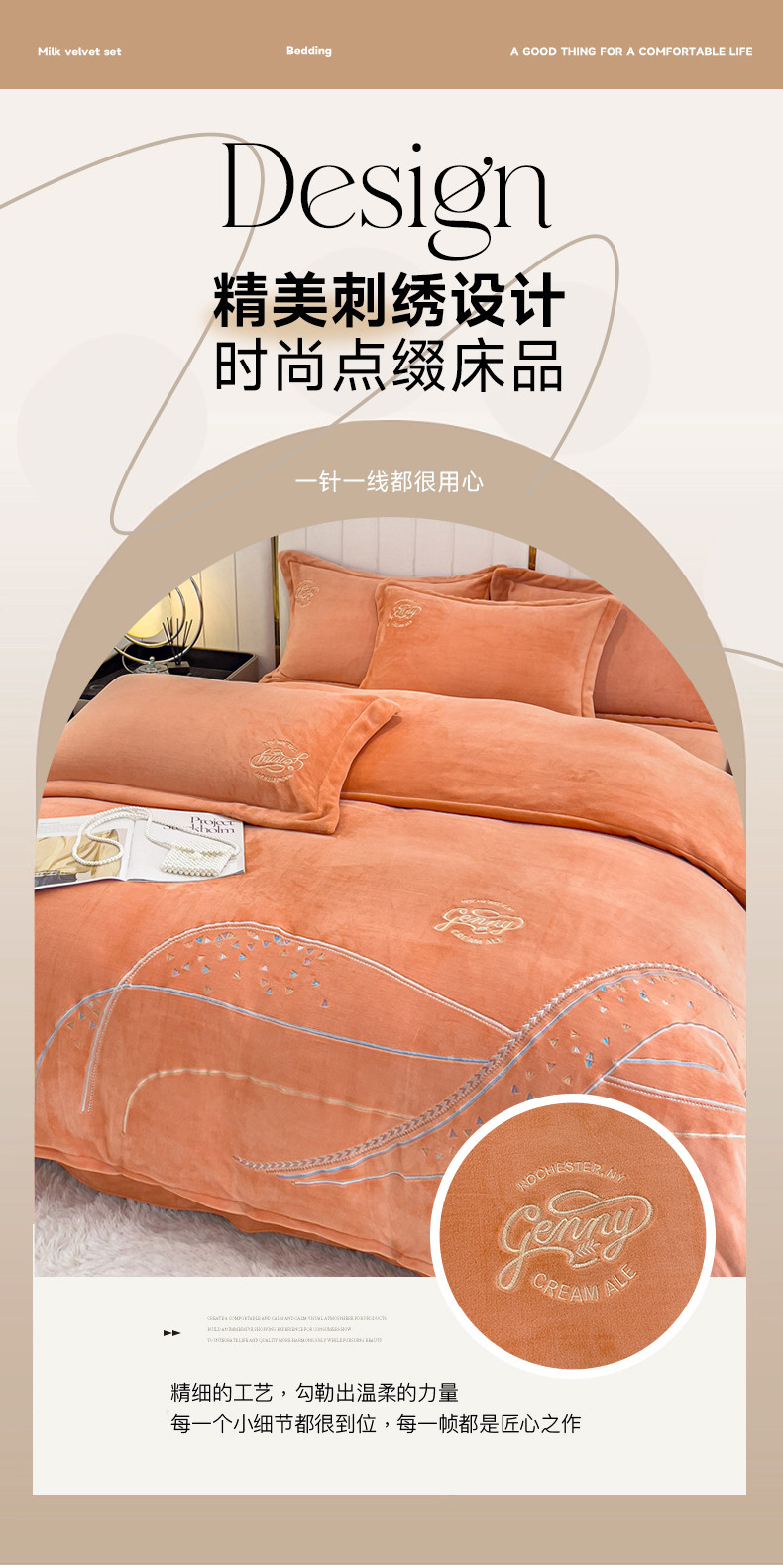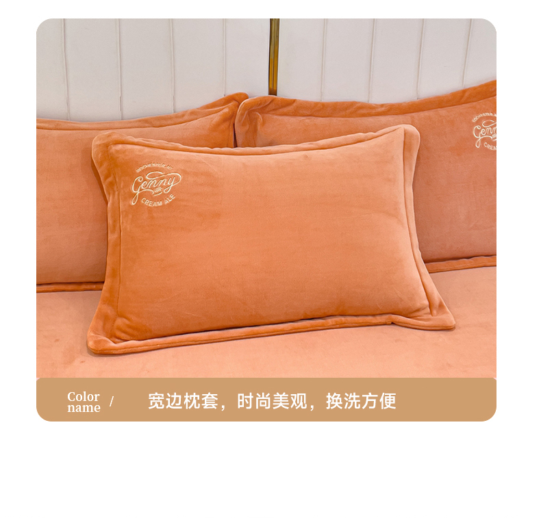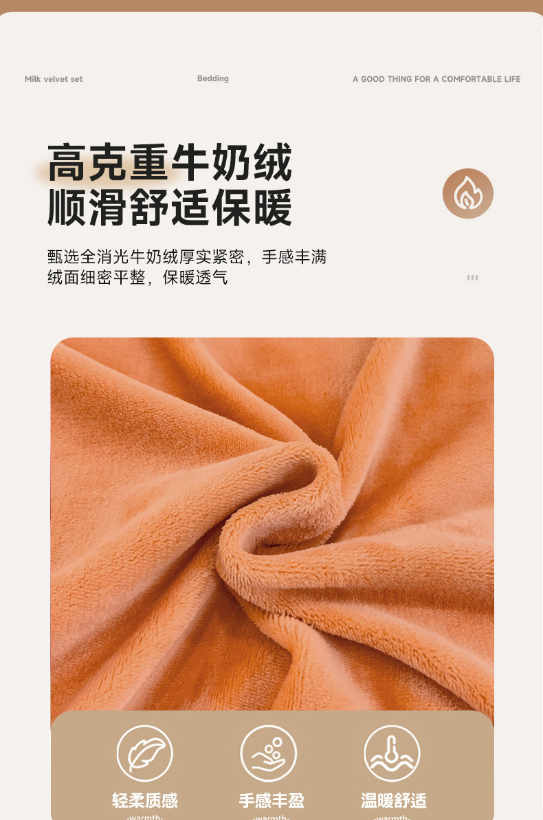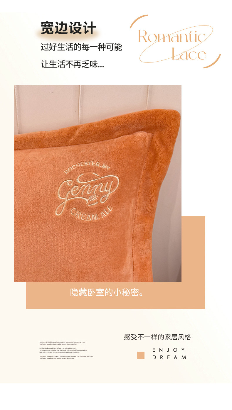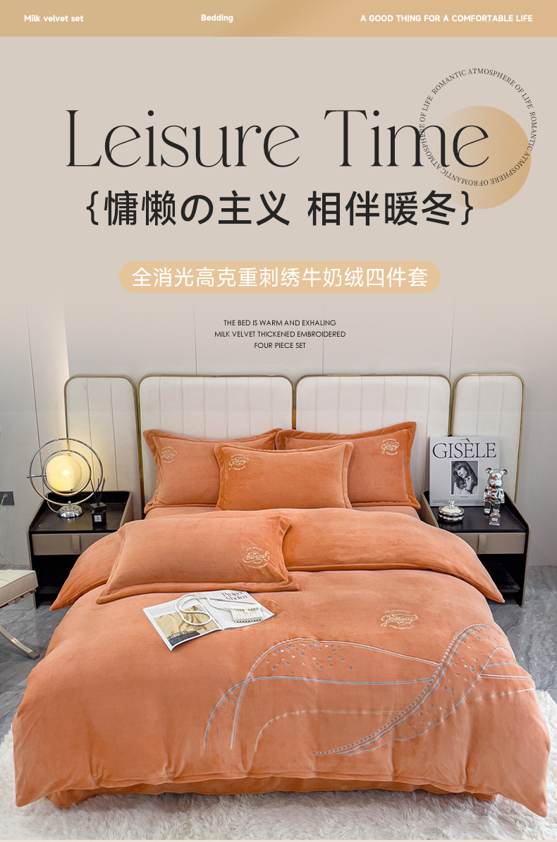 慕克斯 2025直播新款高克重8.5斤纯色刺绣牛奶绒四件套 朝花夕拾-浅橘,朝花夕拾-浅橘