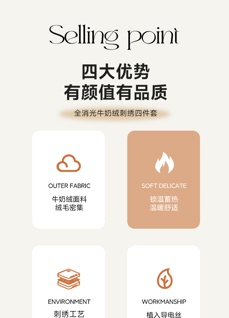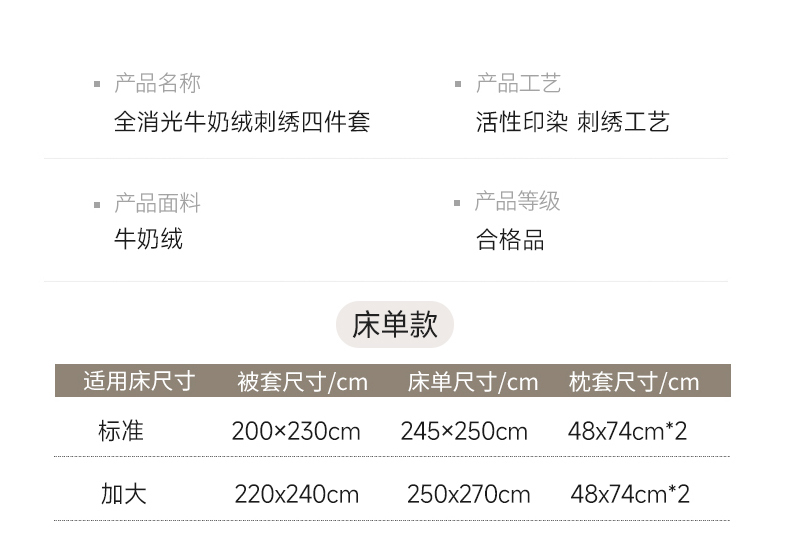 商品名称:慕克斯 2023新款全消光高克重刺绣牛奶绒四件套-奥丽莎 奥丽莎-香槟桔