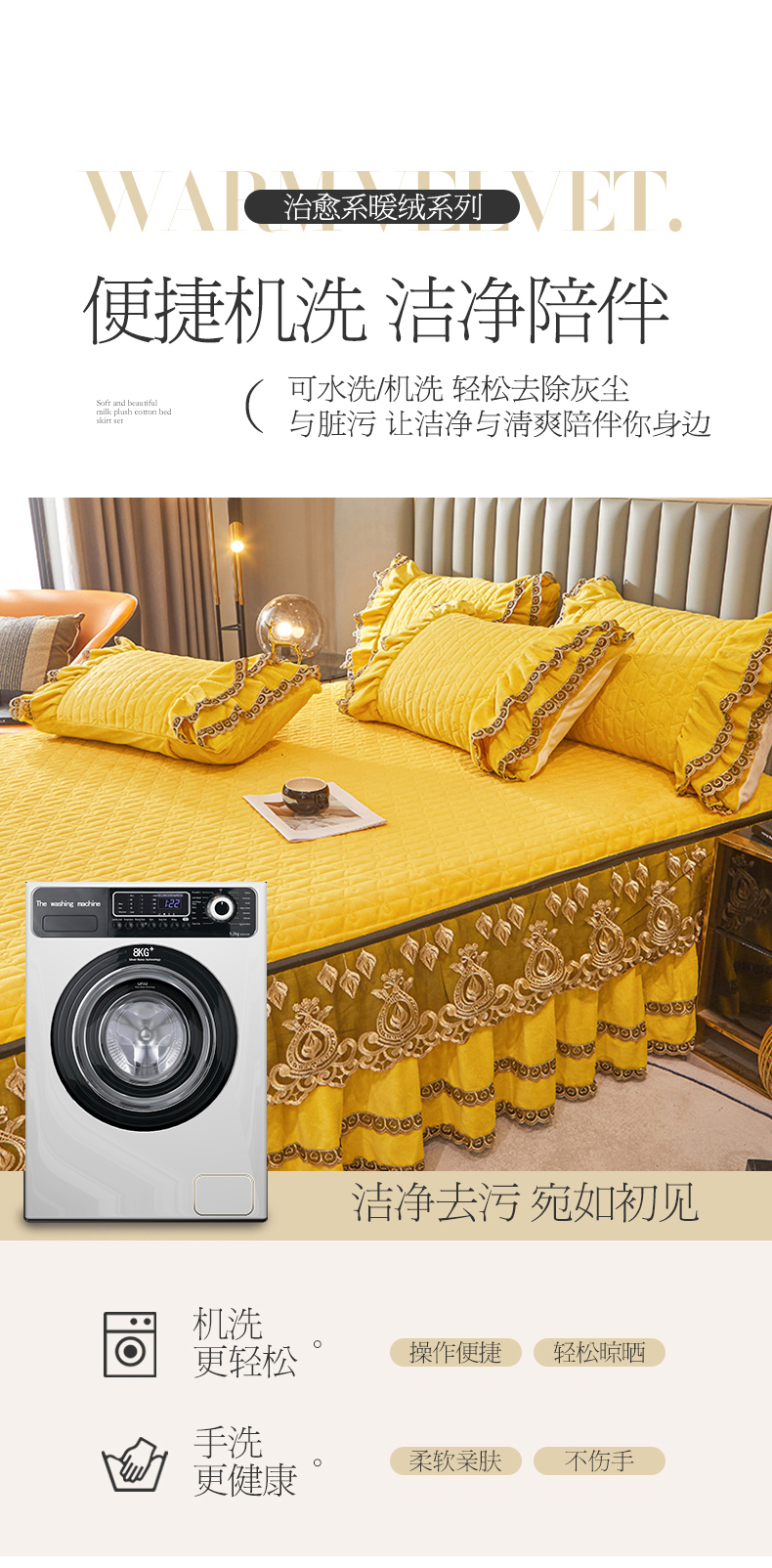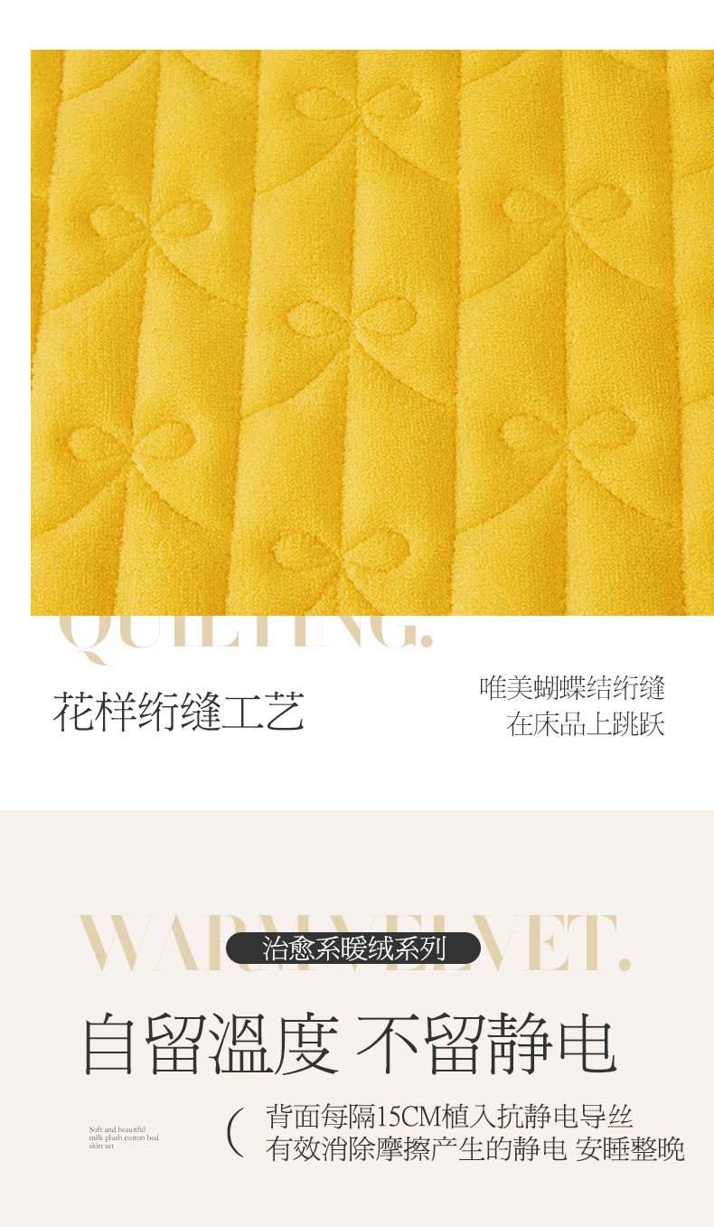 (总)虹星家纺 2025新款雕花牛奶绒床裙三件套-花溪系列,花溪-米黄,花溪-奶油黄