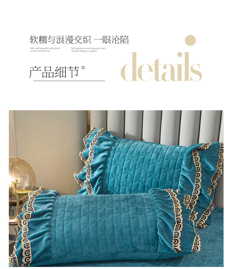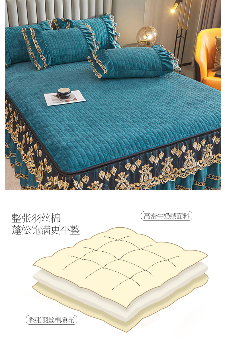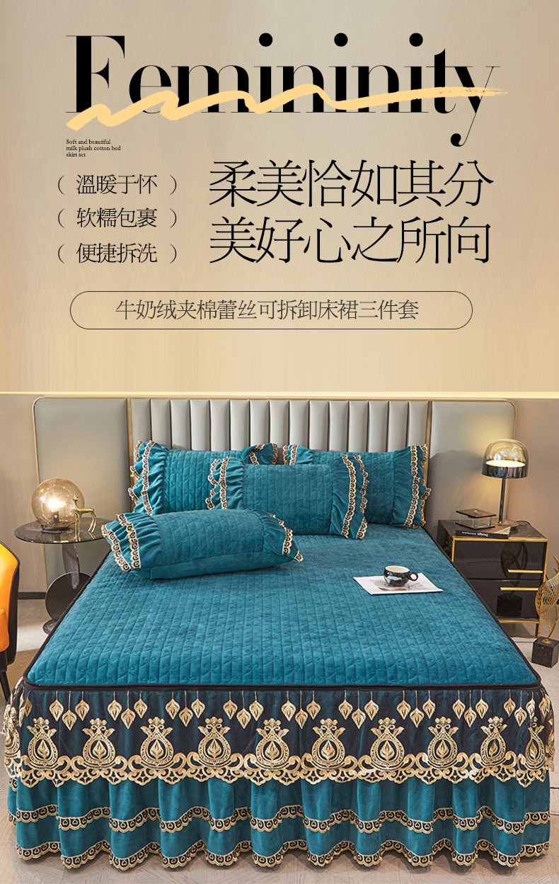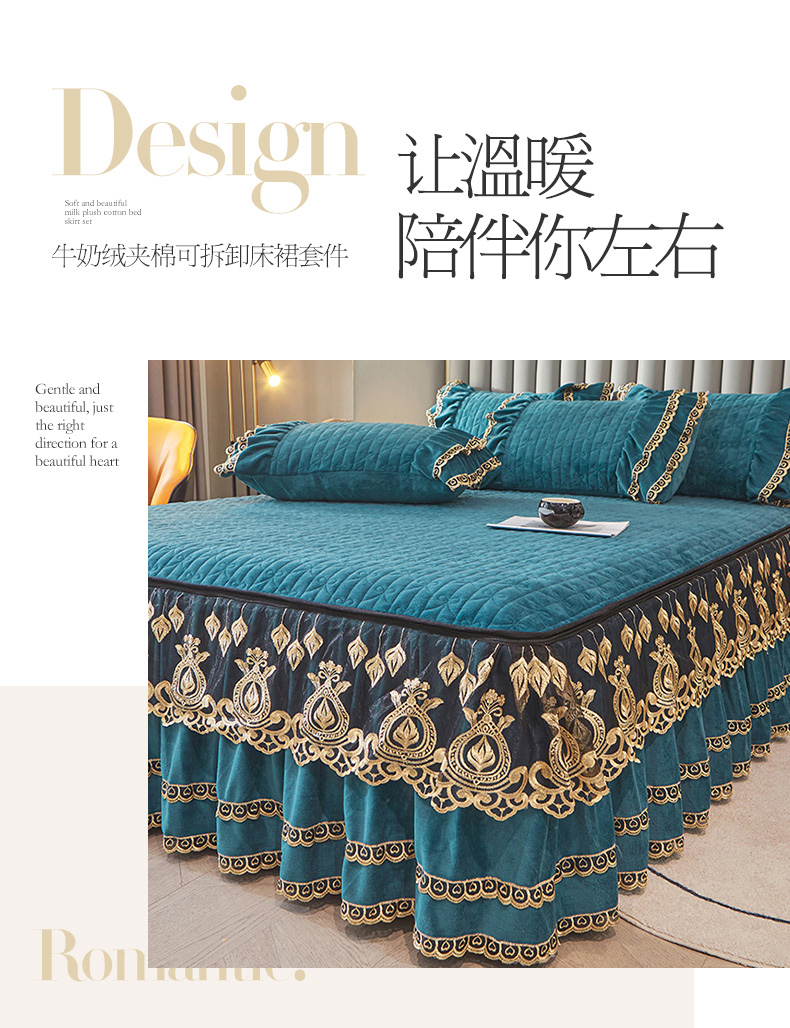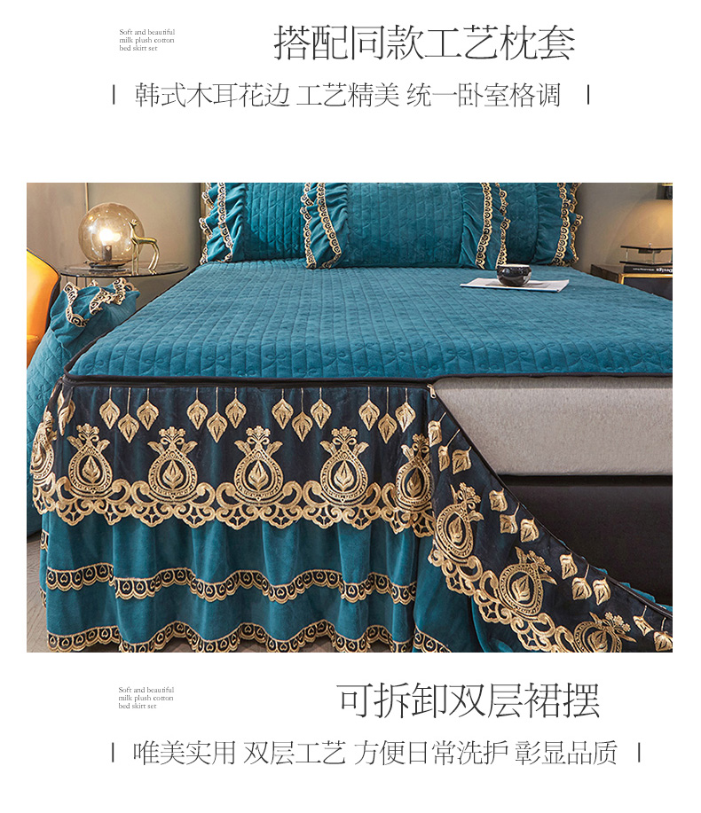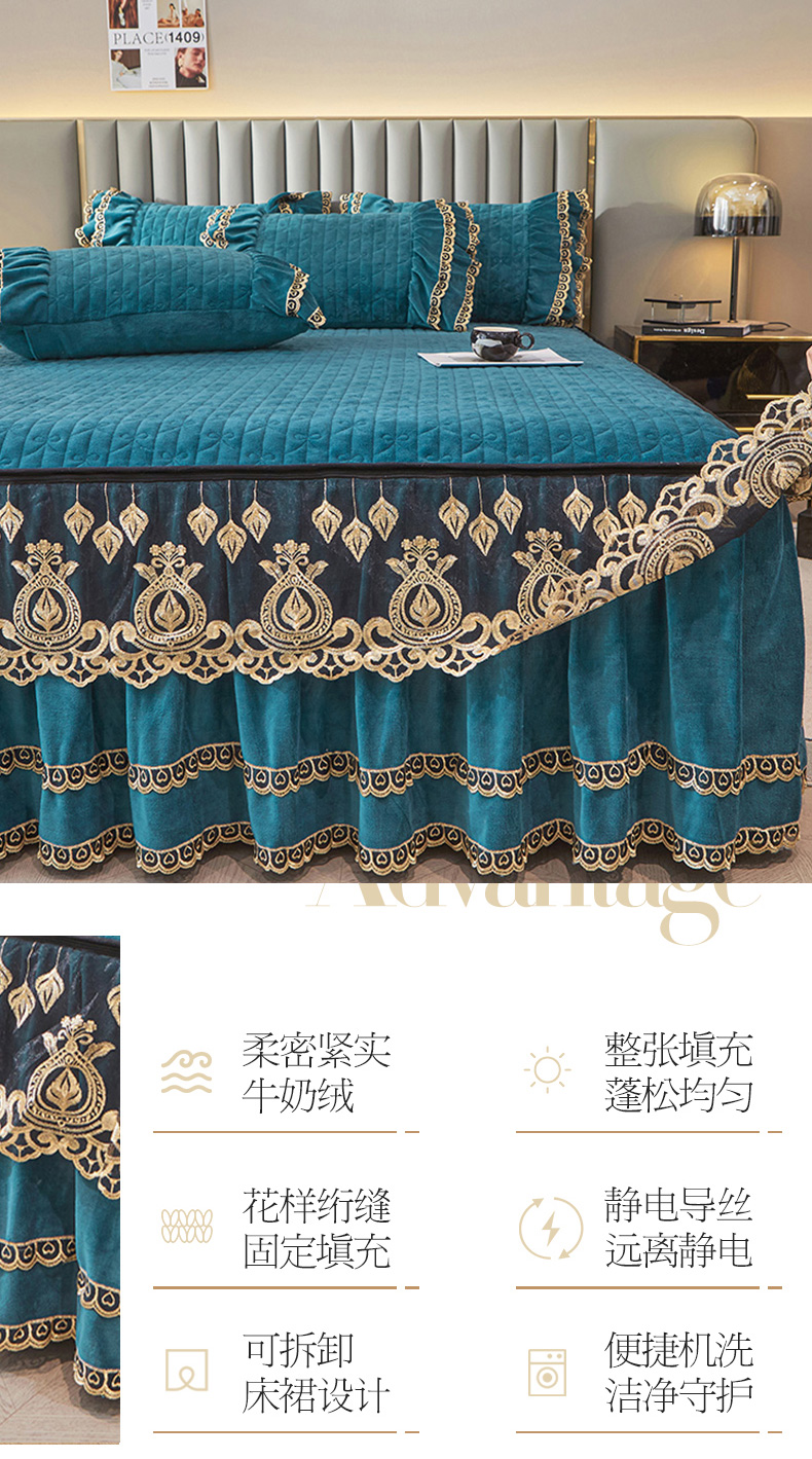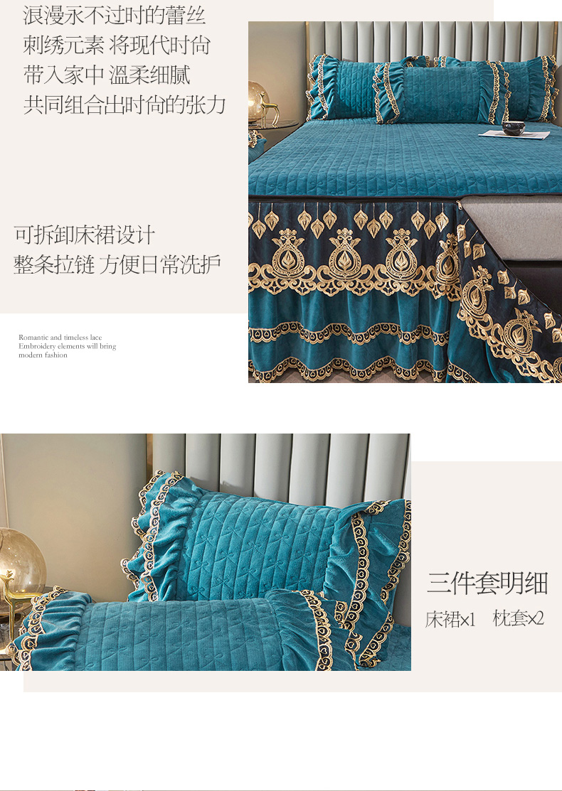 商品名称:虹星家纺 2023新款牛奶绒夹棉蕾丝可拆卸床裙系列单床裙 梦幻巴黎 海兰