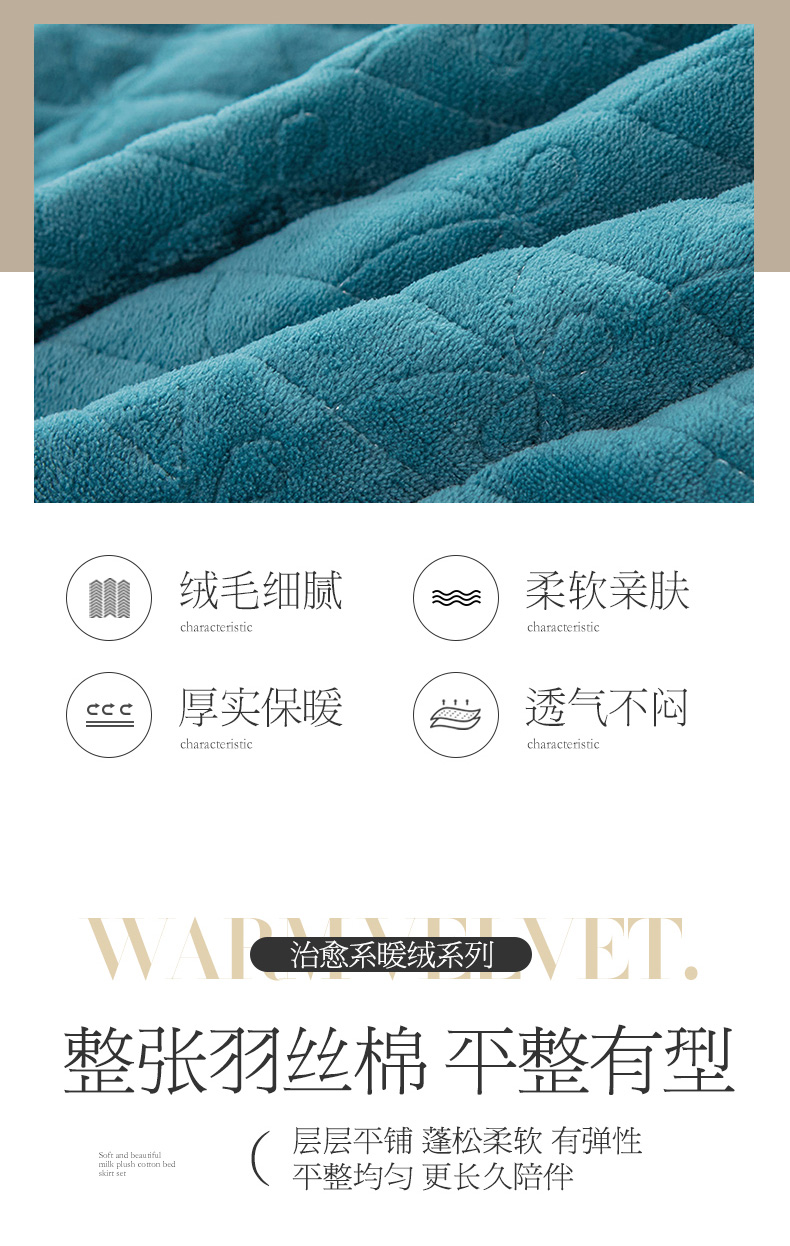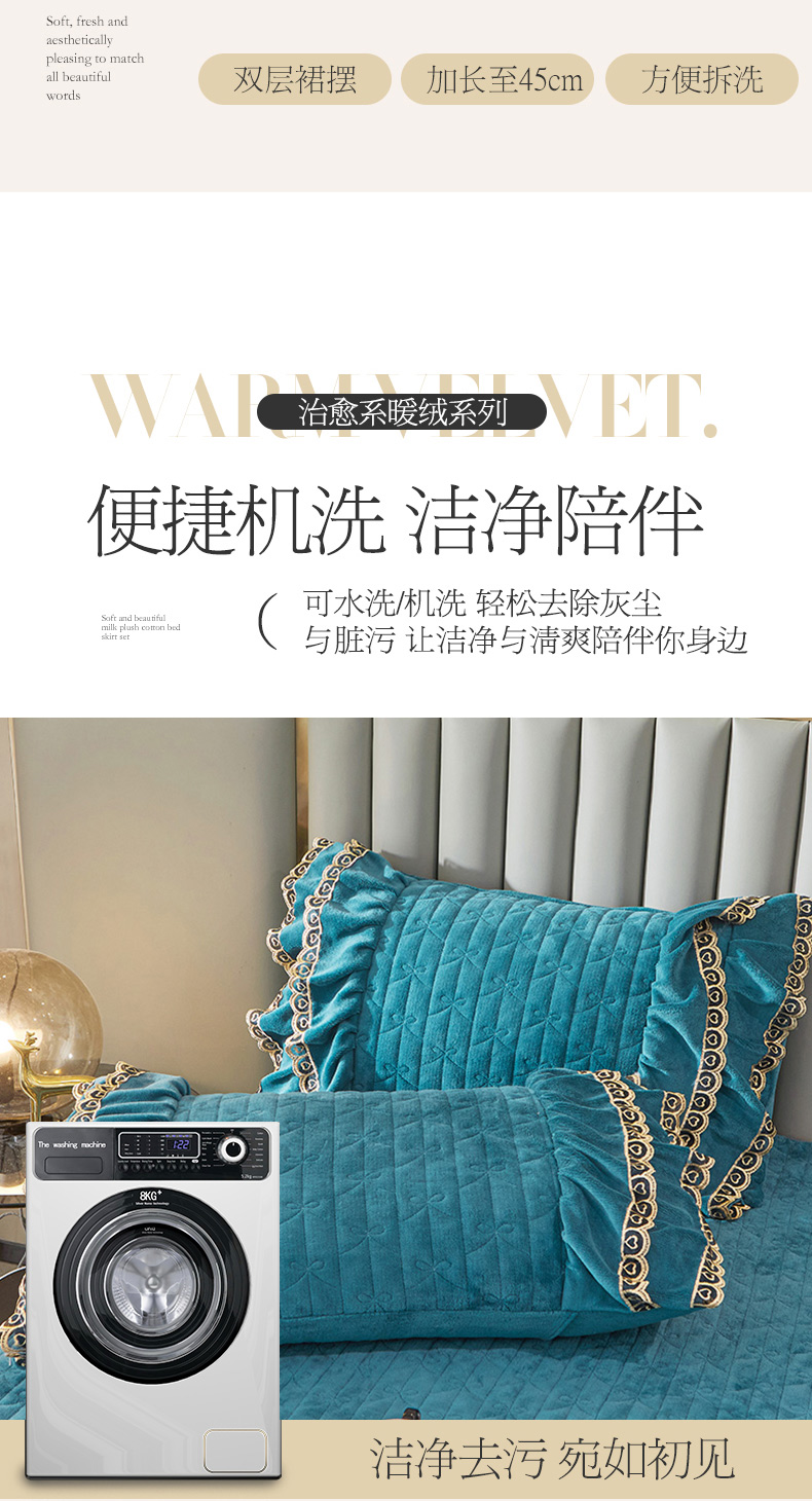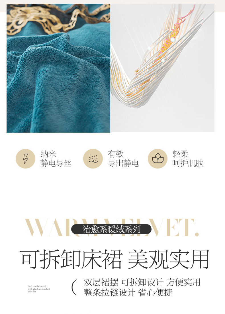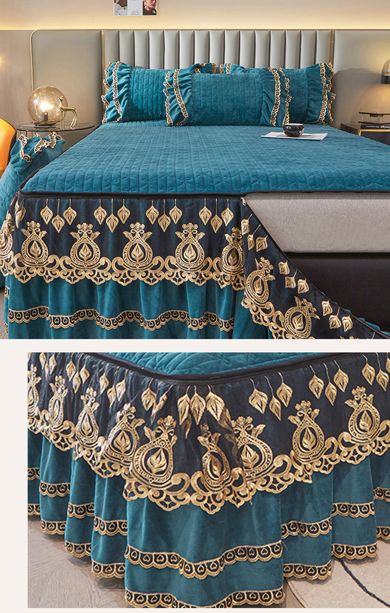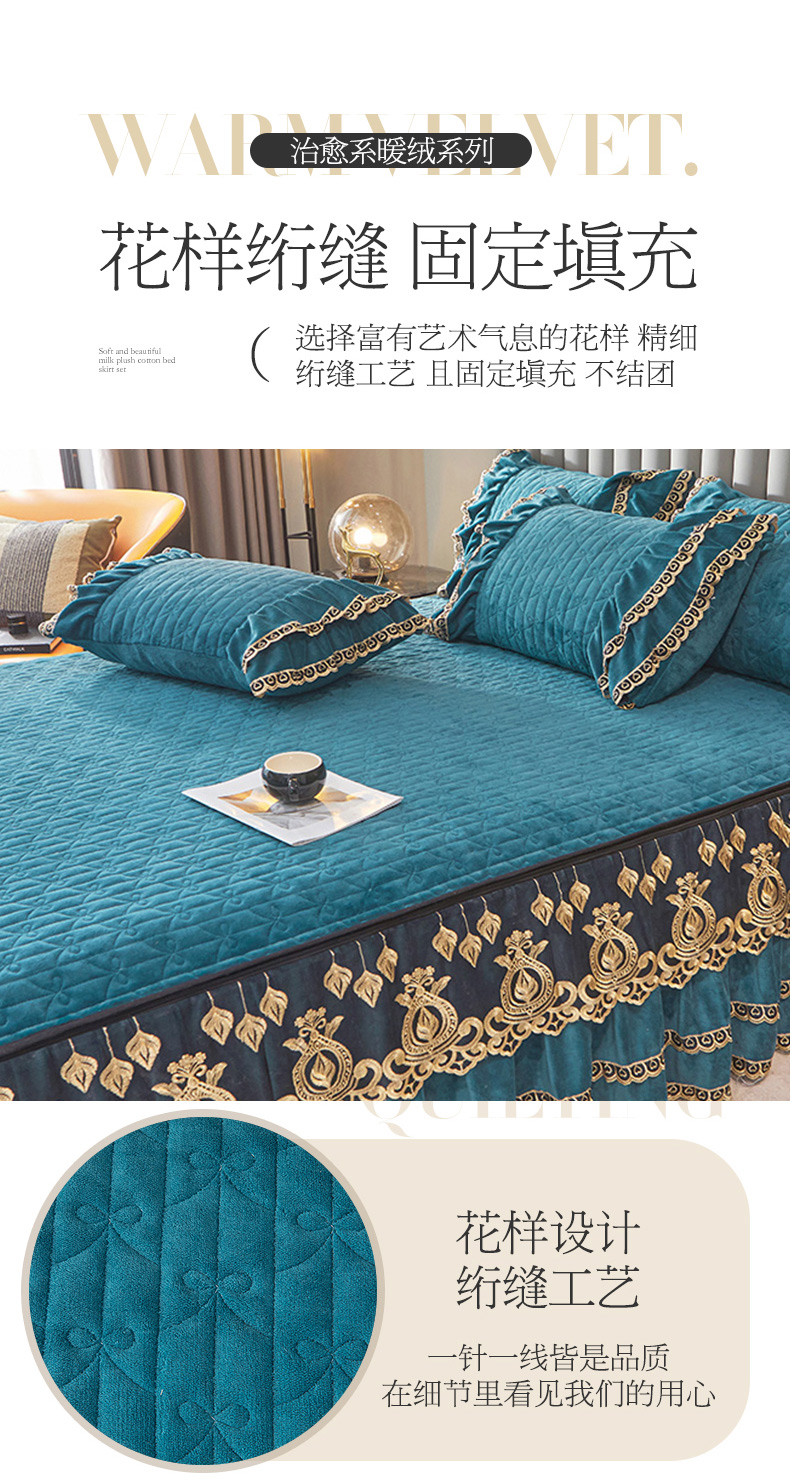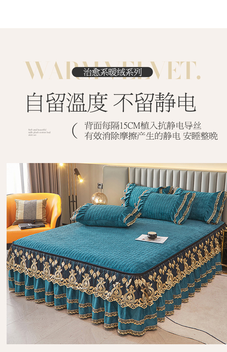 商品名称:虹星家纺 2023新款牛奶绒夹棉蕾丝可拆卸床裙系列单床裙 梦幻巴黎 海兰