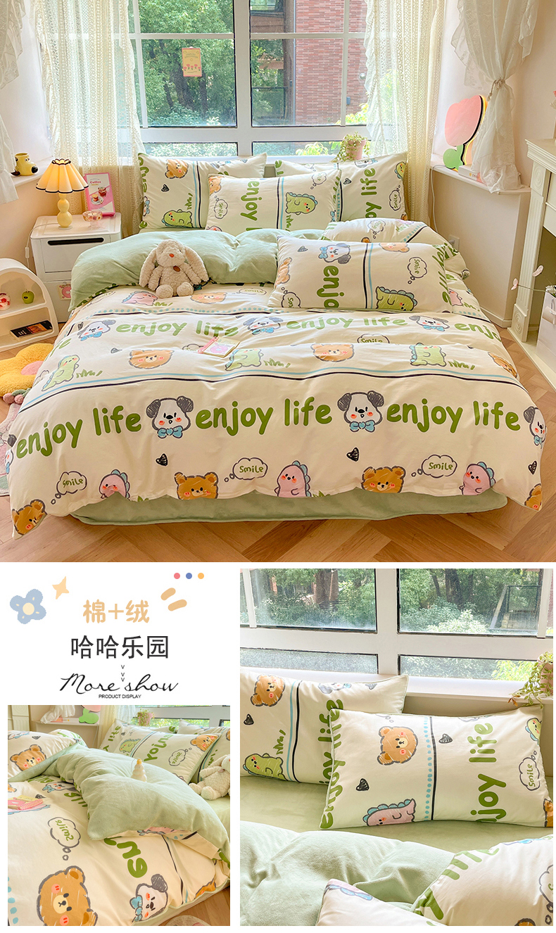 (总)麦伦家居 2025秋冬新品多功能床品全棉+豆豆绒四件套卡通小清新系列,迪迪龙,好友鸭,花韵抹茶,浣花,杰克熊,乐园小马,清茶小熊,童趣米,星星小象蓝,云朵腊肠狗,粉色玫瑰,可爱小兔-米黄,木马小熊蓝,拾趣爱宠,星星木马