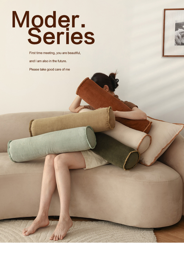 (总)美茉家居 2023新款灯芯绒贝壳边糖果枕