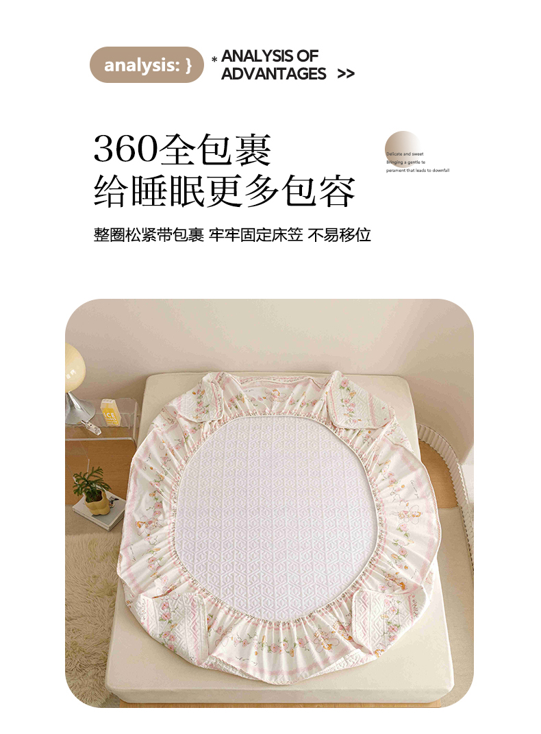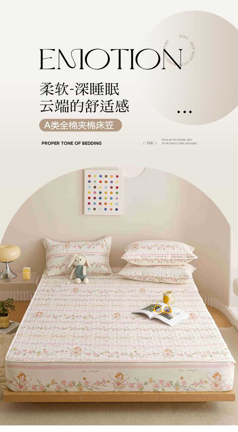 商品名称:忘忧草 2023新款A类全棉印花夹棉床笠 可韵