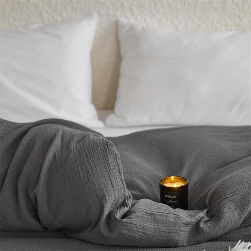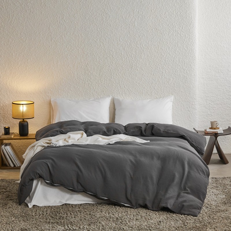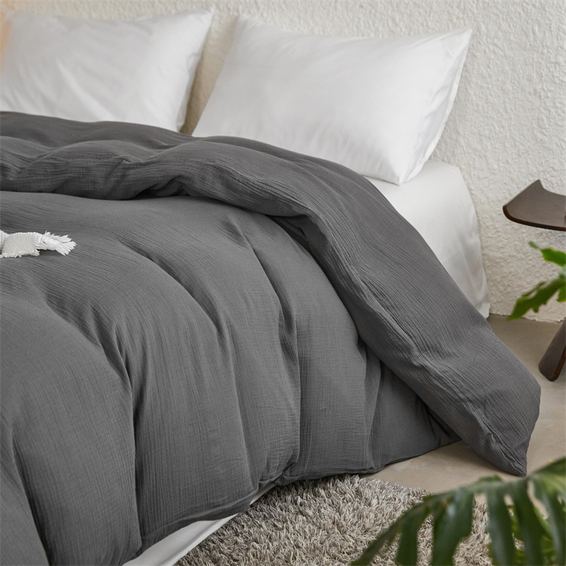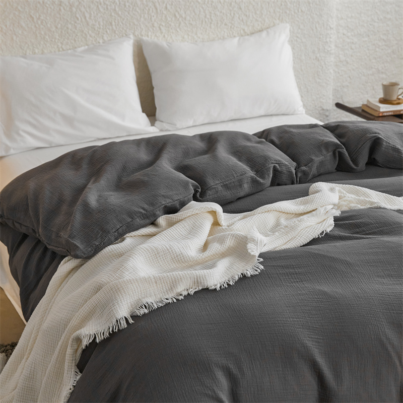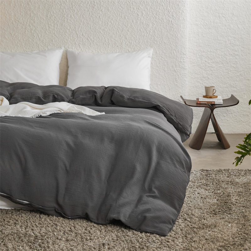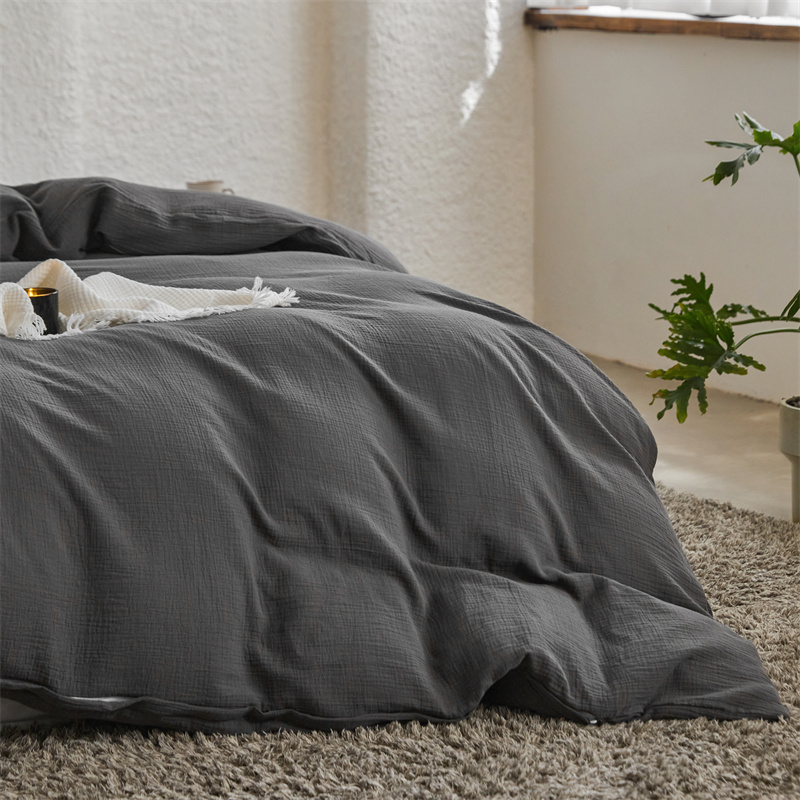 安莱生活2024新款绉纱美拉德色纯色单品被套 黑巧