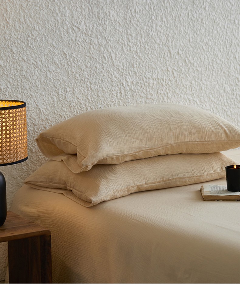 安莱生活2024新款绉纱美拉德色纯色单品枕套 曲奇