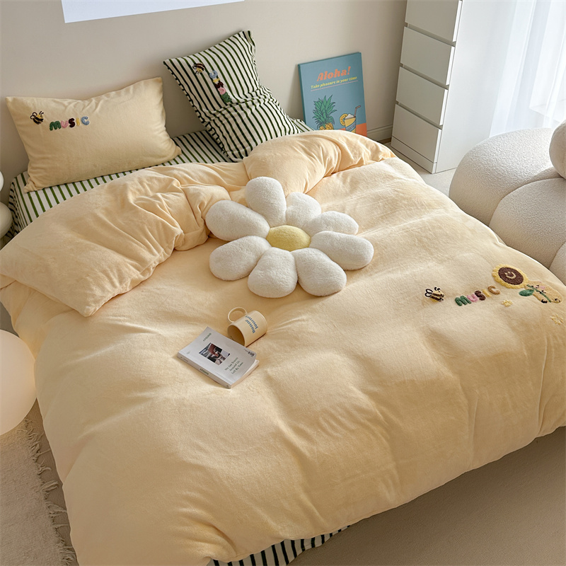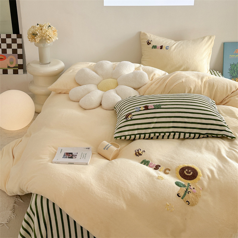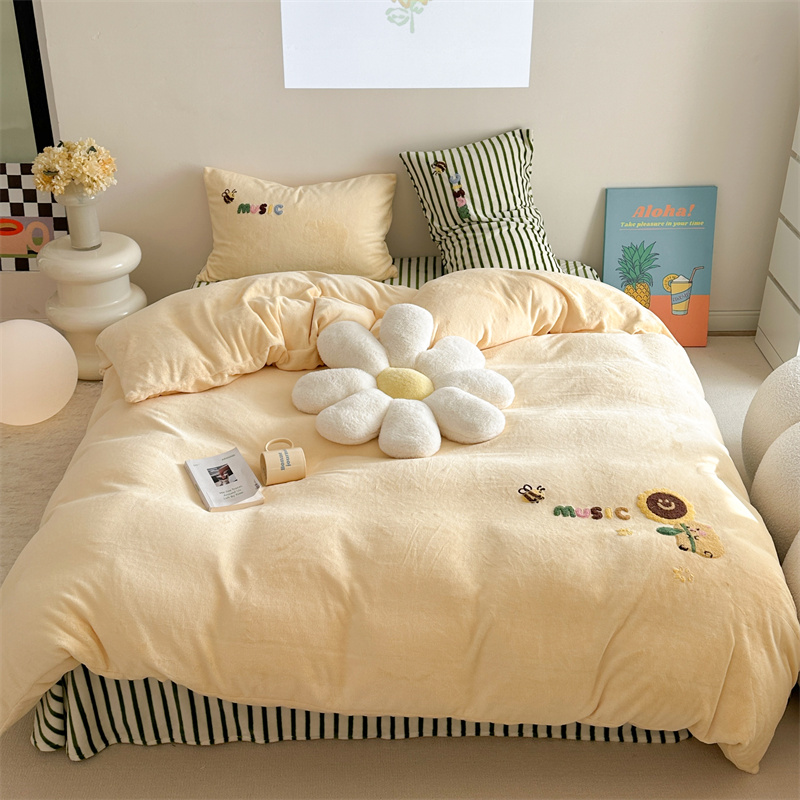 商品名称:柚子YOUTH 2023新款高克重牛奶绒毛巾绣四件套 向日葵