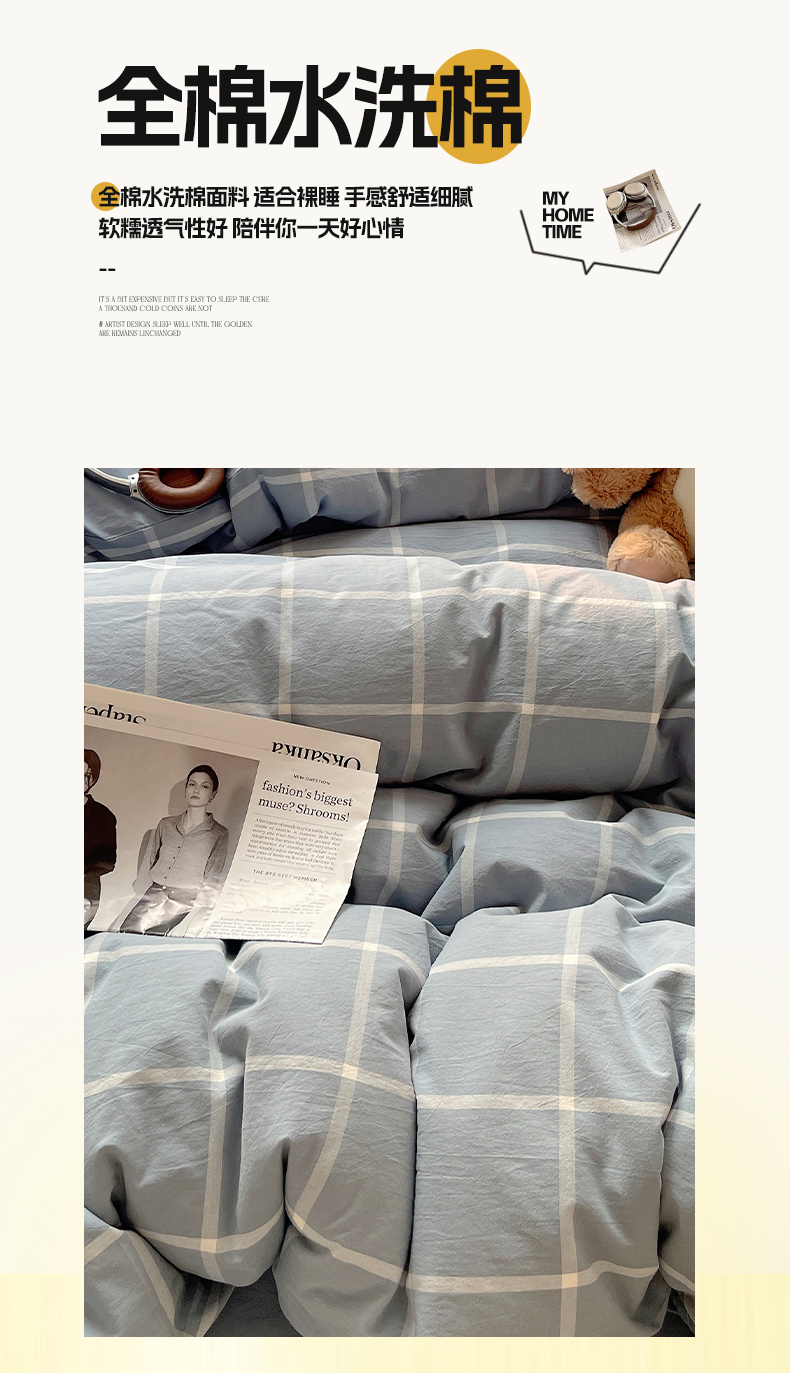 (总)雅居纺家纺 2022新款全棉水洗棉四件套,Ins粉蓝,ins浅蓝,白+墨子绿,白+绅士红,低调灰,低调灰绅士灰,豆绿+米黄,复古绿卡其,果绿绅士黄,焦糖咖啡,咖啡+卡其,米黄,米黄+明黄,米黄咖啡,米黄水绿,墨子绿,墨子绿卡其,墨子绿绅士黄,牛仔蓝低调灰,浅蓝深灰,清雅蓝绅士灰,绅士红卡其,绅士黄卡其,绅士灰,新蓝米黄